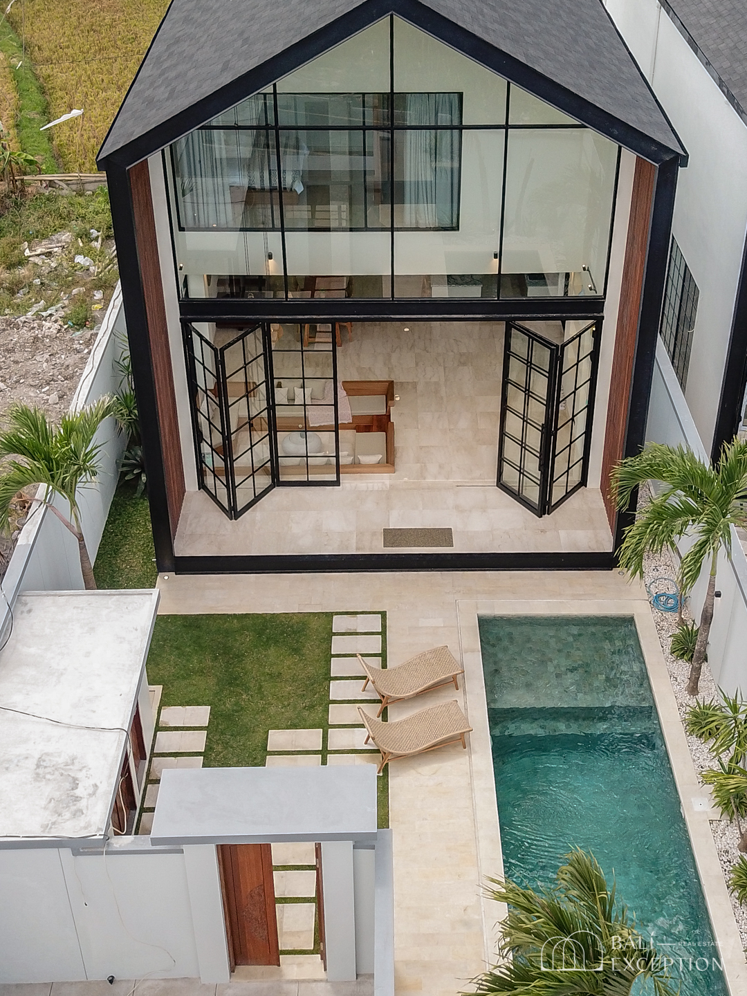 This villa showcases a modern-tropical architectural style, characterised by big glass accents that invite ample natural light into the living spaces. The usage of high-quality Marble Tiles adds to the overall refinement of the villa. Set on a generous 309 m2 plot of land, with a 250 m2 building, it offers three bedrooms and four bathrooms. The villa’s interior features a spacious living room and an open/closed kitchen that overlooks the captivating outdoor scenery. Notably, there is a splendid swimming pool alongside an outdoor shower, providing a delightful addition to the outdoor amenities.