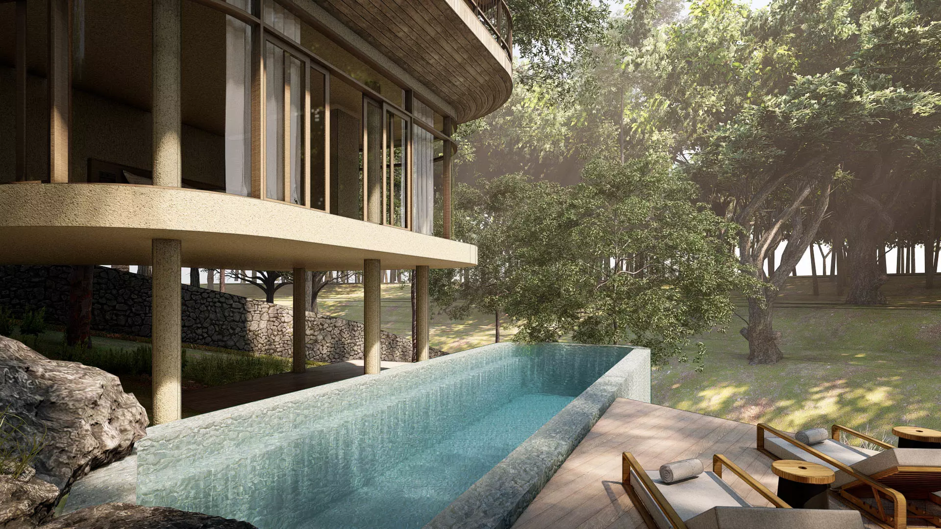 Villas are designed with modern elegance, featuring a fantastic riverfront views, car garage, and private swimming pool.