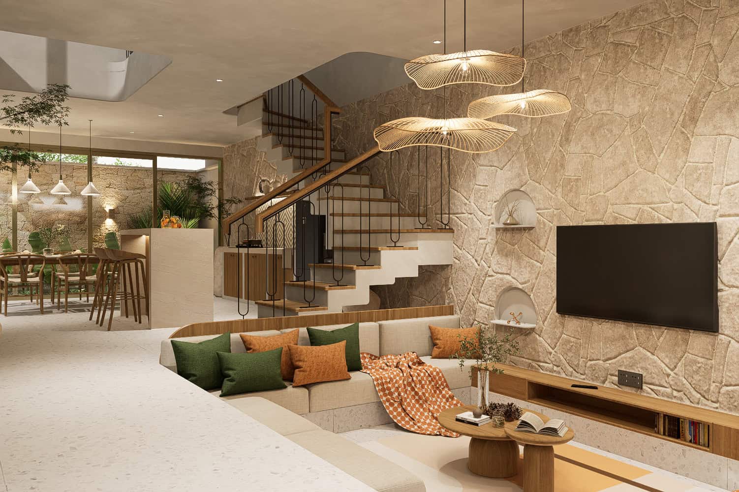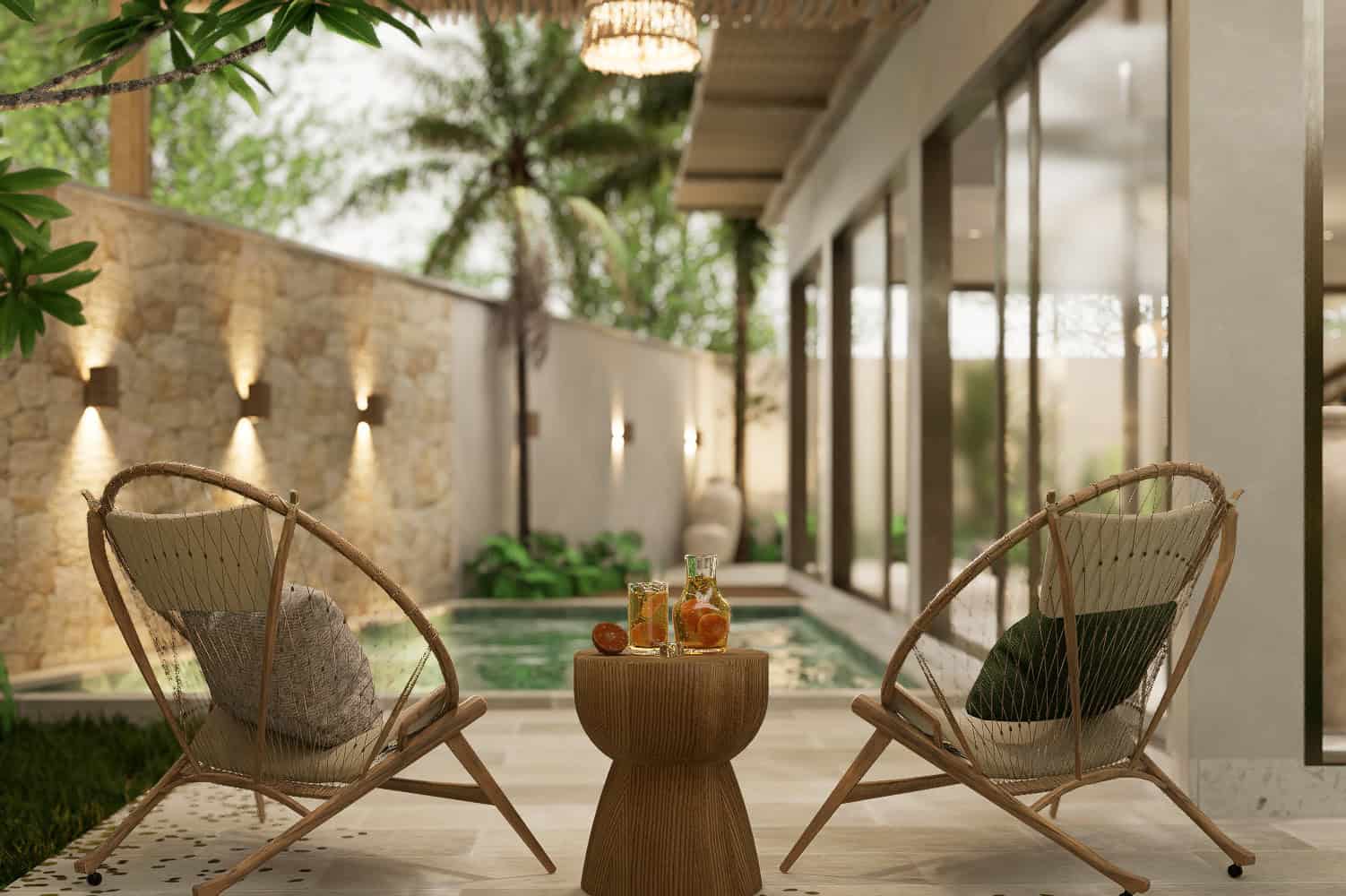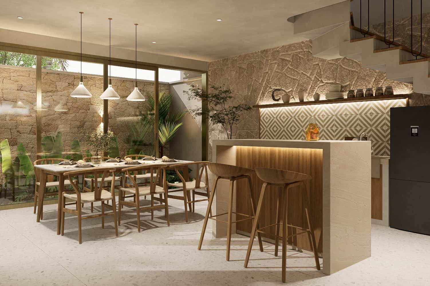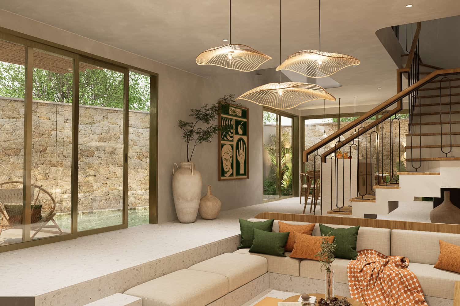 Entrez et découvrez une villa entièrement meublée avec une cuisine entièrement équipée et un salon en contrebas. Les hauts plafonds créent une atmosphère aérée et ouverte, rehaussée par des éléments de design tropical qui allient confort moderne et flair artistique. Entièrement gérée et prête pour Airbnb, elle comprend tous les éléments essentiels pour une utilisation immédiate. Le point fort est la piscine extérieure, un havre de relaxation et d’élégance.