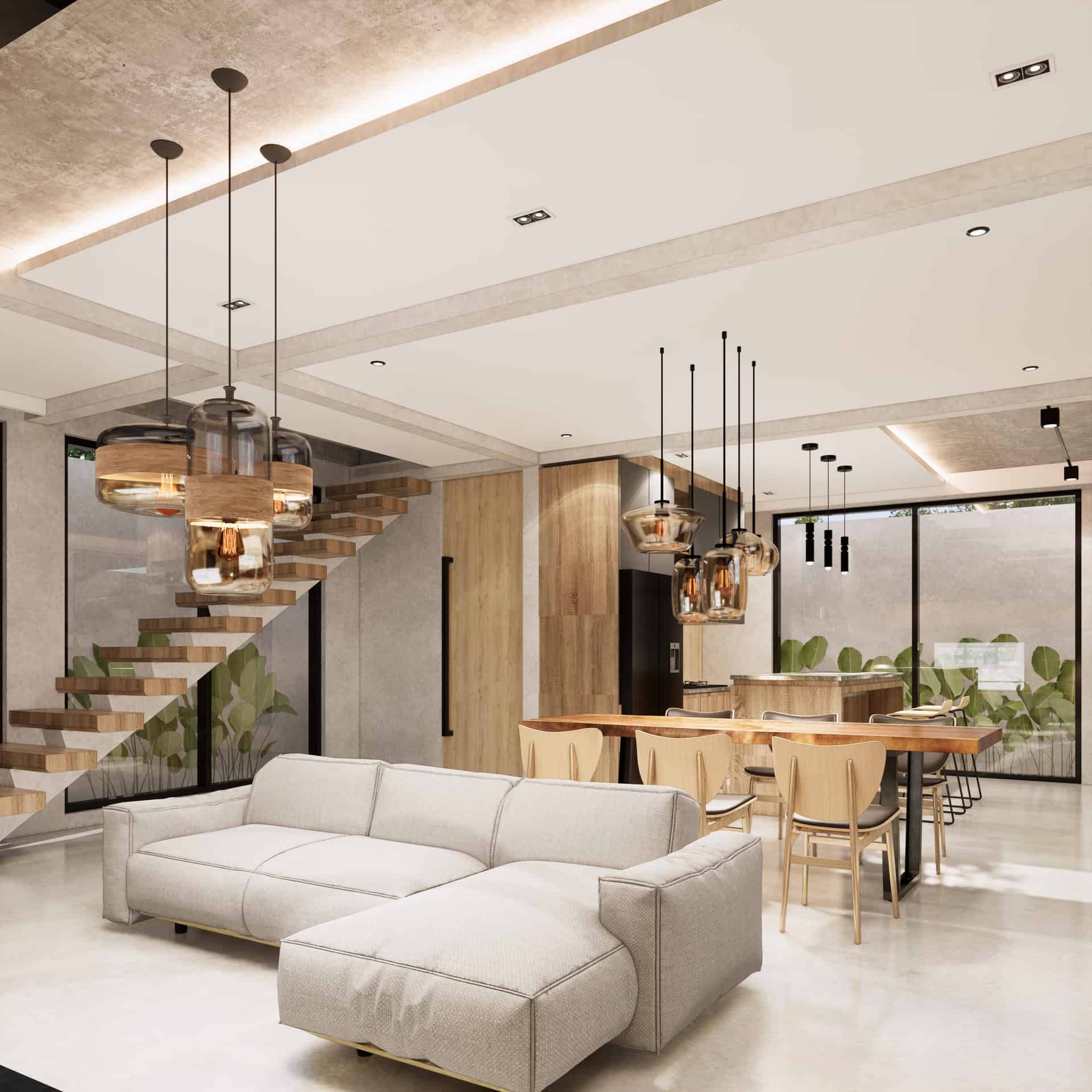 • Le Beau Design : Un mélange parfait d’élégance moderne et de touches chaleureuses en bois, créant un espace de vie luxueux et accueillant.