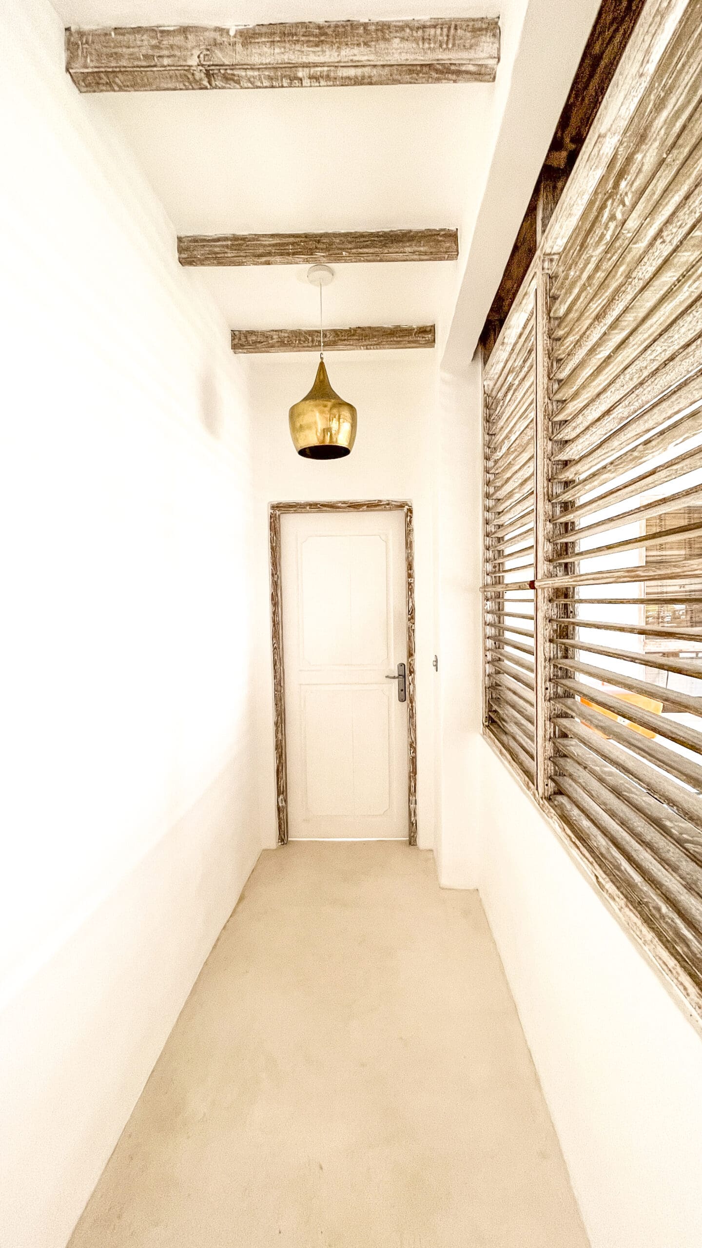 Les grandes ouvertures de la villa relient harmonieusement les espaces intérieurs et extérieurs, invitant la lumière naturelle dans un intérieur lumineux avec un salon spacieux et une cuisine ouverte entièrement meublée. La propriété bénéficie de nombreuses fenêtres et portes en bois qui assurent un flux continu de lumière naturelle.