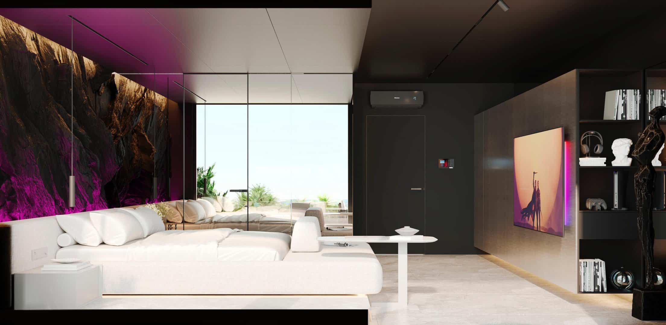 Experience ultimate luxury with this exceptional villa, featuring full smart home control via a mobile app or smart panel, including lighting, automatic curtains, and fingerprint access doors. The hidden, fully equipped kitchen adds a sleek touch, while the spacious bedroom offers a king-size bed. High-quality materials like ceramic tiles, wall panels, stretch ceilings, and backlit onyx elevate the space. Relax in the balcony jacuzzi, surrounded by stunning views.