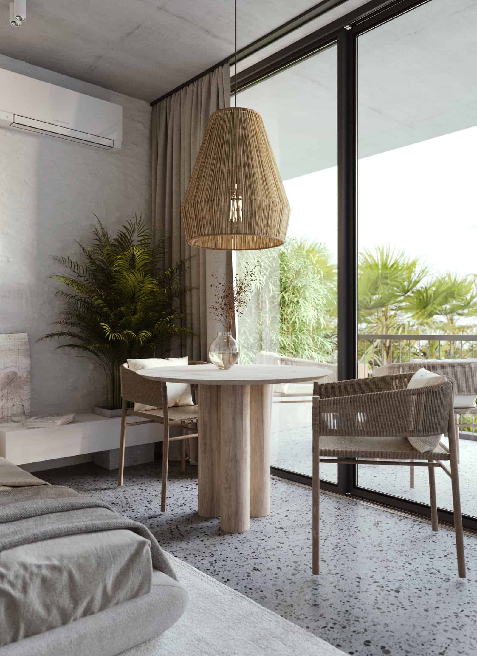 This one-bedroom studio apartment features an ensuite bathroom, with high ceilings and towering windows that flood the space with natural light, creating a sense of both spaciousness and coziness. Your mornings begin with coffee in the fully equipped kitchen, surrounded by modern furnishings that make every moment feel like a luxurious escape.Â