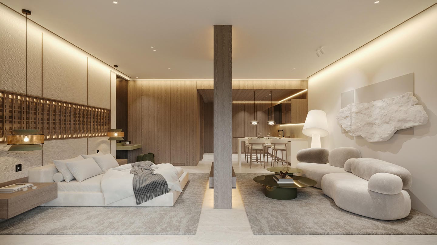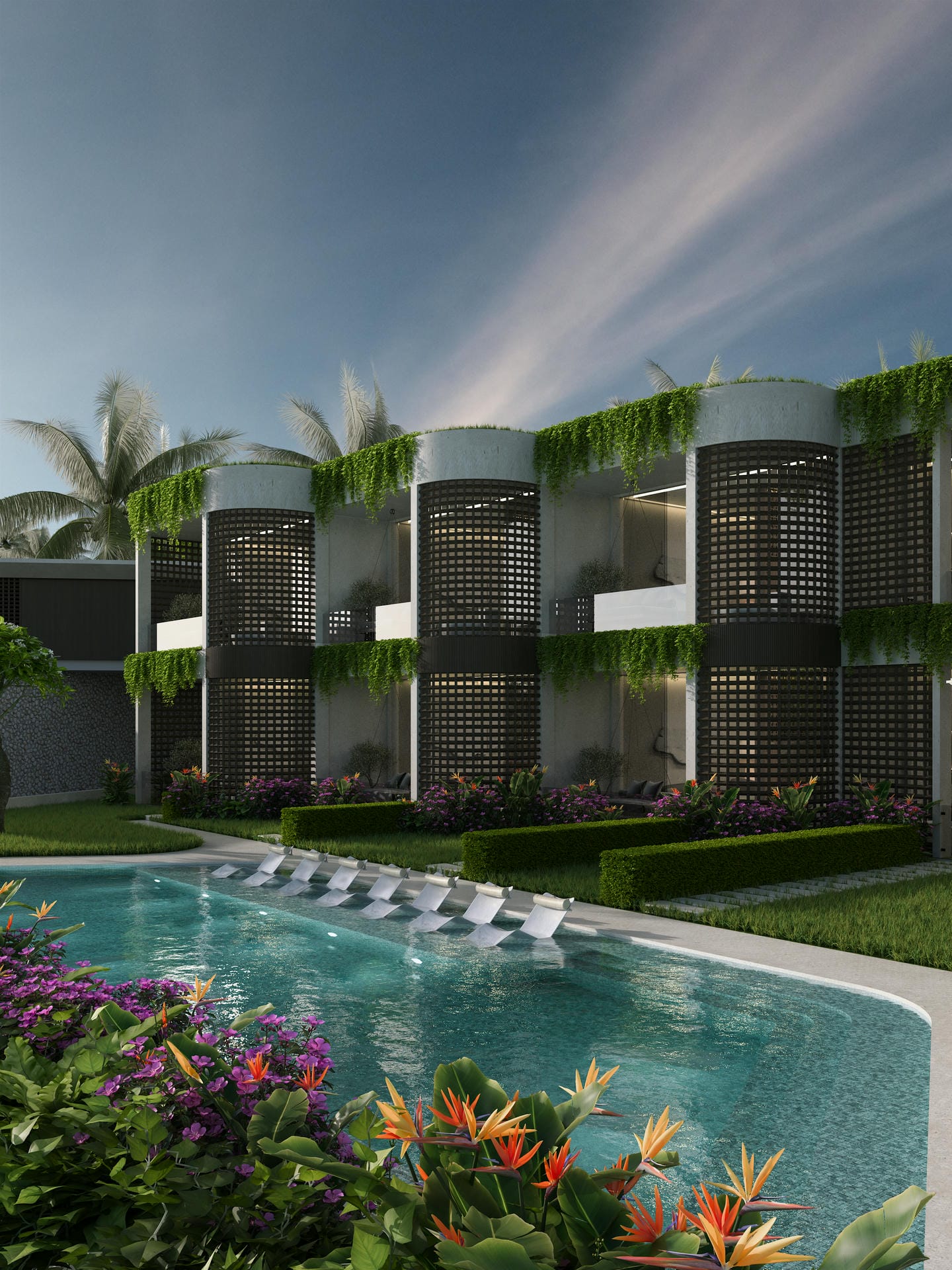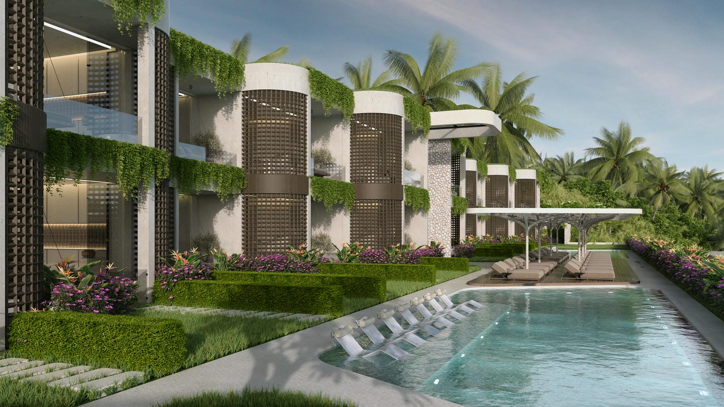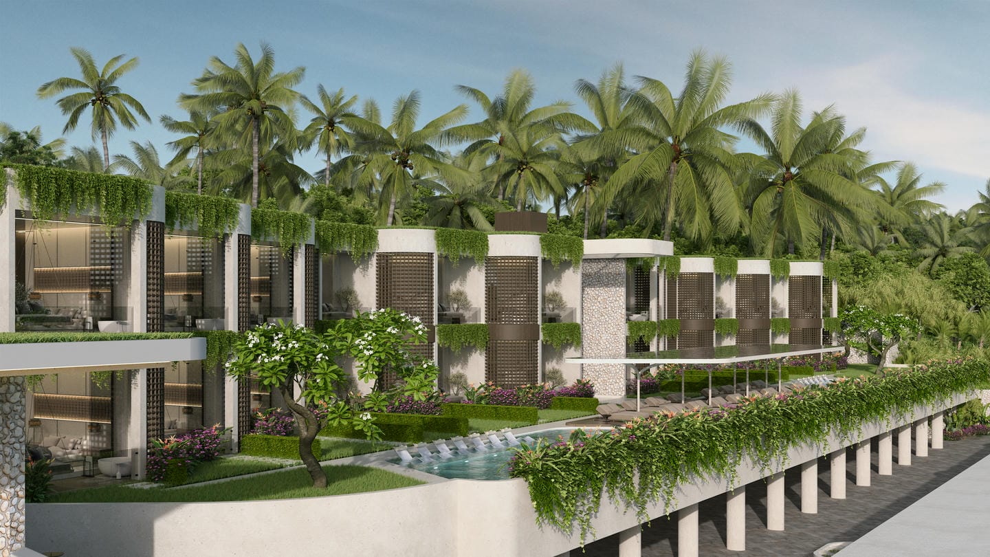 Designed with modern tropical aesthetics, the villa boasts 96 sqm of build size, featuring 1 bedroom, 1 bathroom, and an outdoor bathtub. The spacious living room and open bar kitchen provide a welcoming atmosphere. The balcony comes with a comfortable lounge area, perfect for relaxing and soaking in the stunning views.