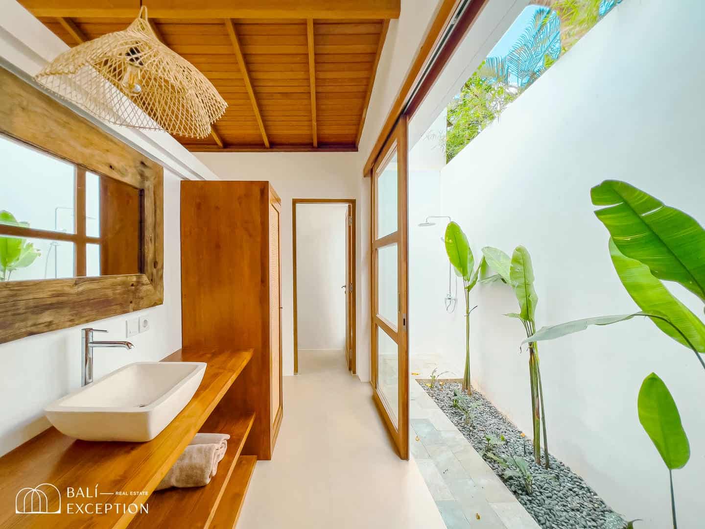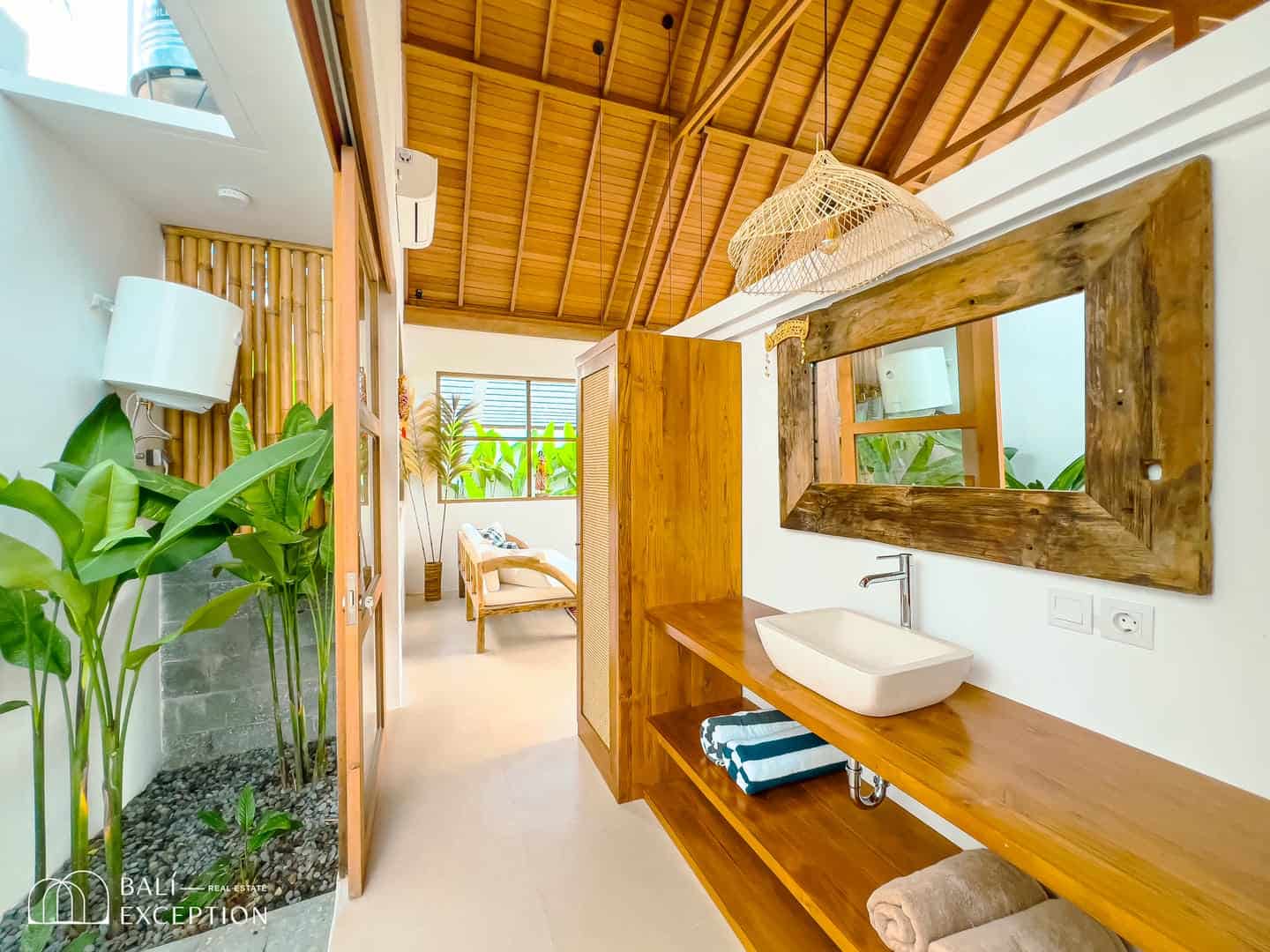 Designed in a tropical Joglo style, this fully furnished townhouse features an open-space concept with large windows that provide abundant natural light and ventilation. The outdoor kitchen enhances the tropical living experience, while the living room is accentuated by handcrafted wooden interiors. The townhouse includes one bedroom, complete with an ensuite bathroom featuring an outdoor concept.