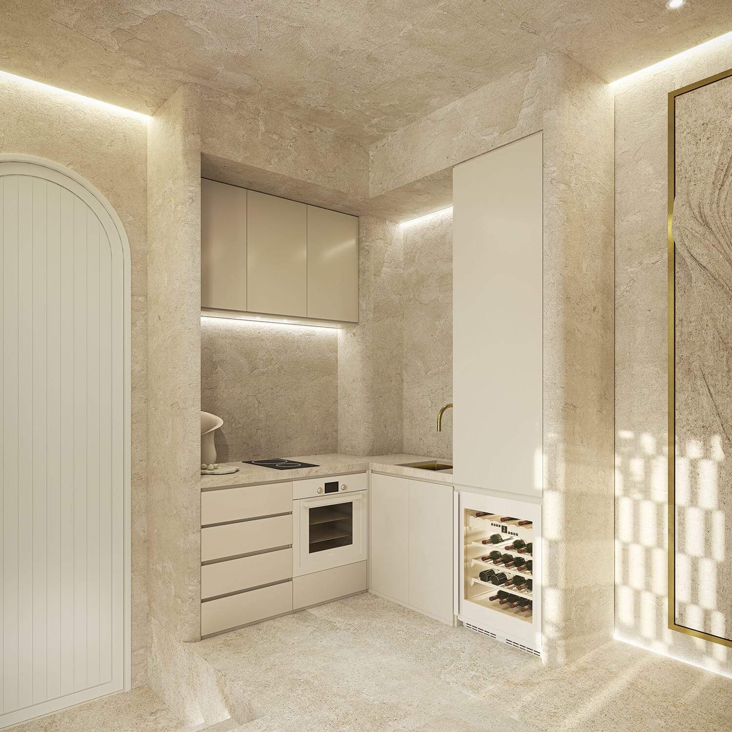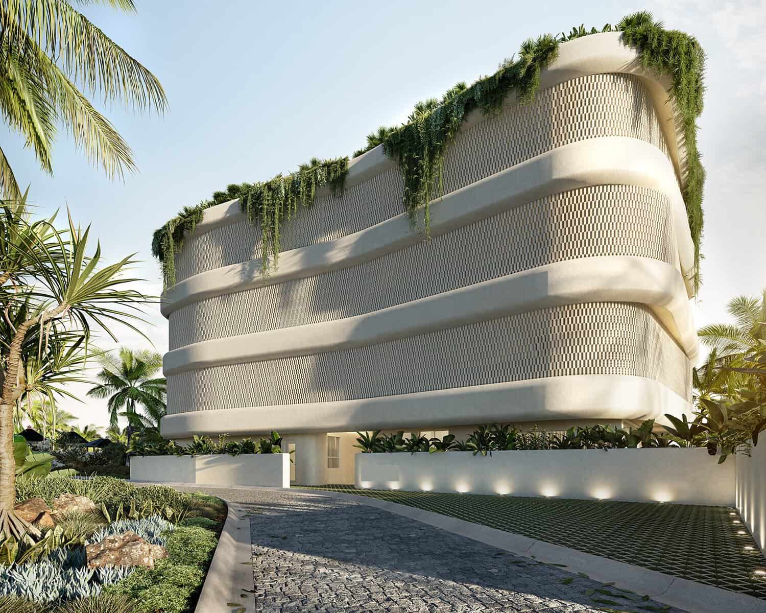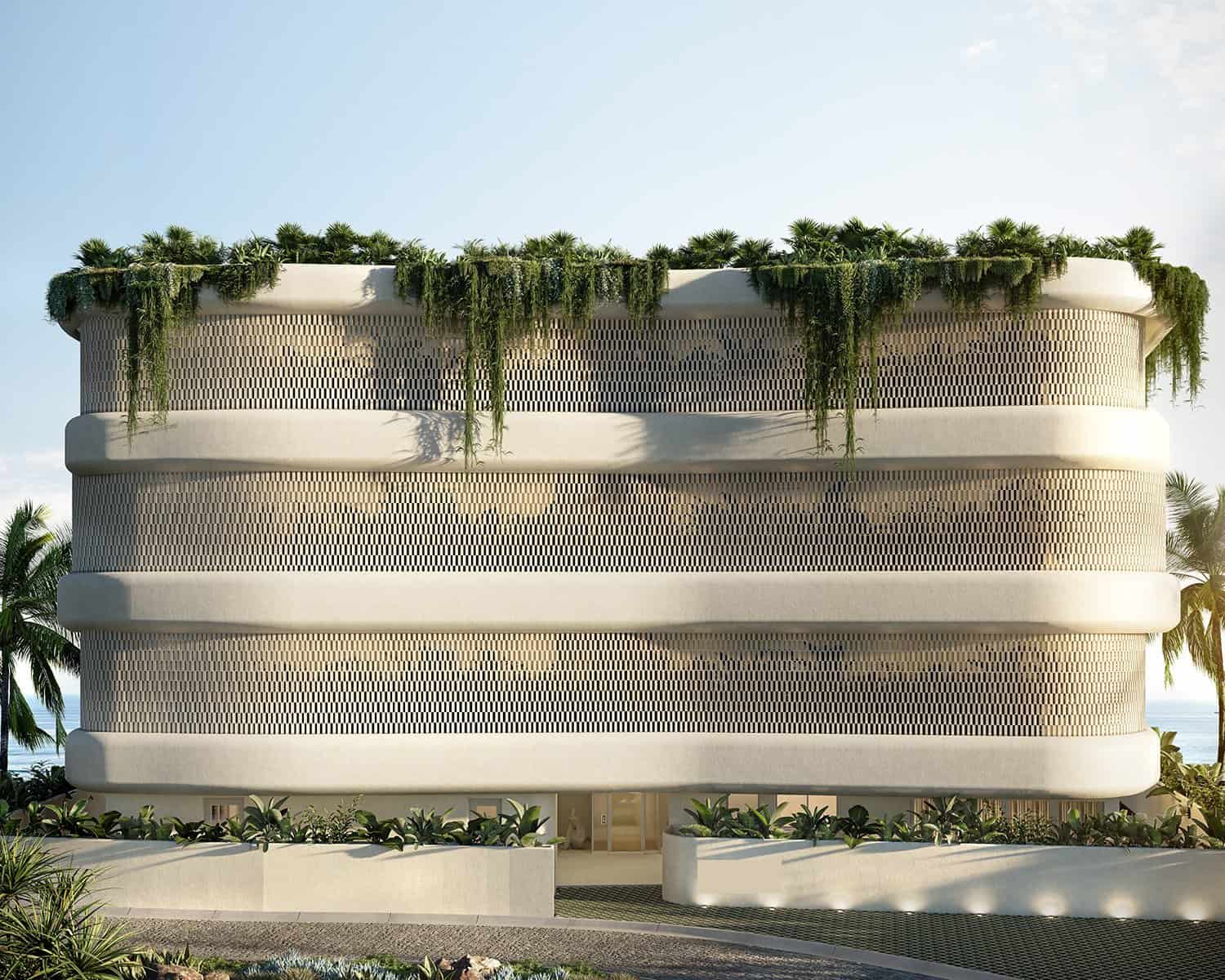 The apartment features an elegantly designed 1-bedroom layout with an ensuite bathroom and a his-and-her shower. The living area seamlessly flows through large glass sliding doors to a private balcony with a stunning pool overlooking the ocean, offering breathtaking views. The modern kitchen includes two induction cooktops, an oven, and an integrated fridge (wine fridge optional). Additional amenities include centralized air conditioning, an outdoor bath and shower, and communal surfboard storage on the ground floor for all residents.