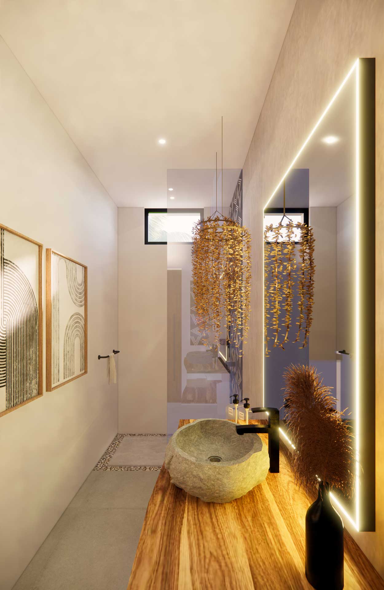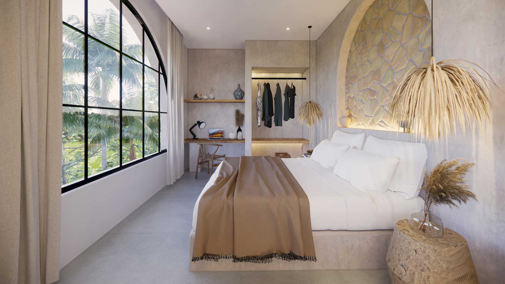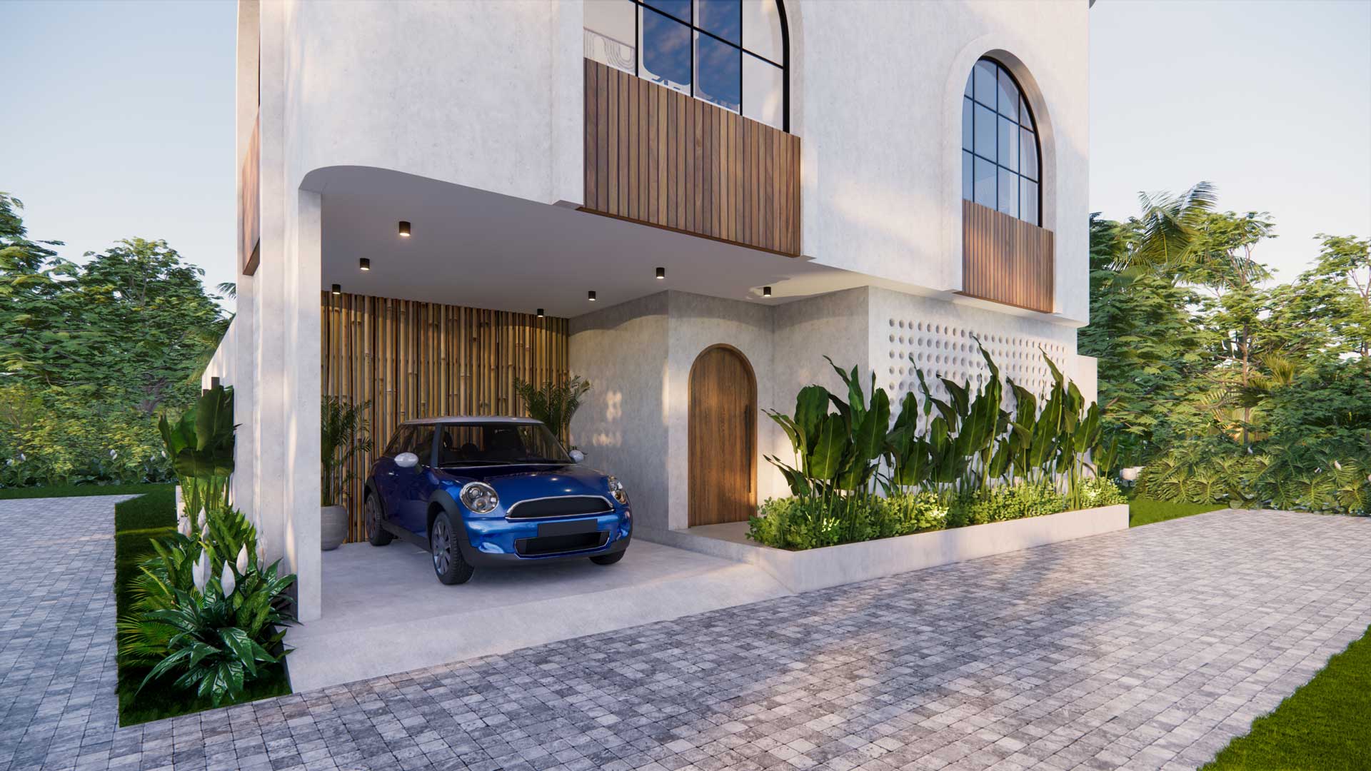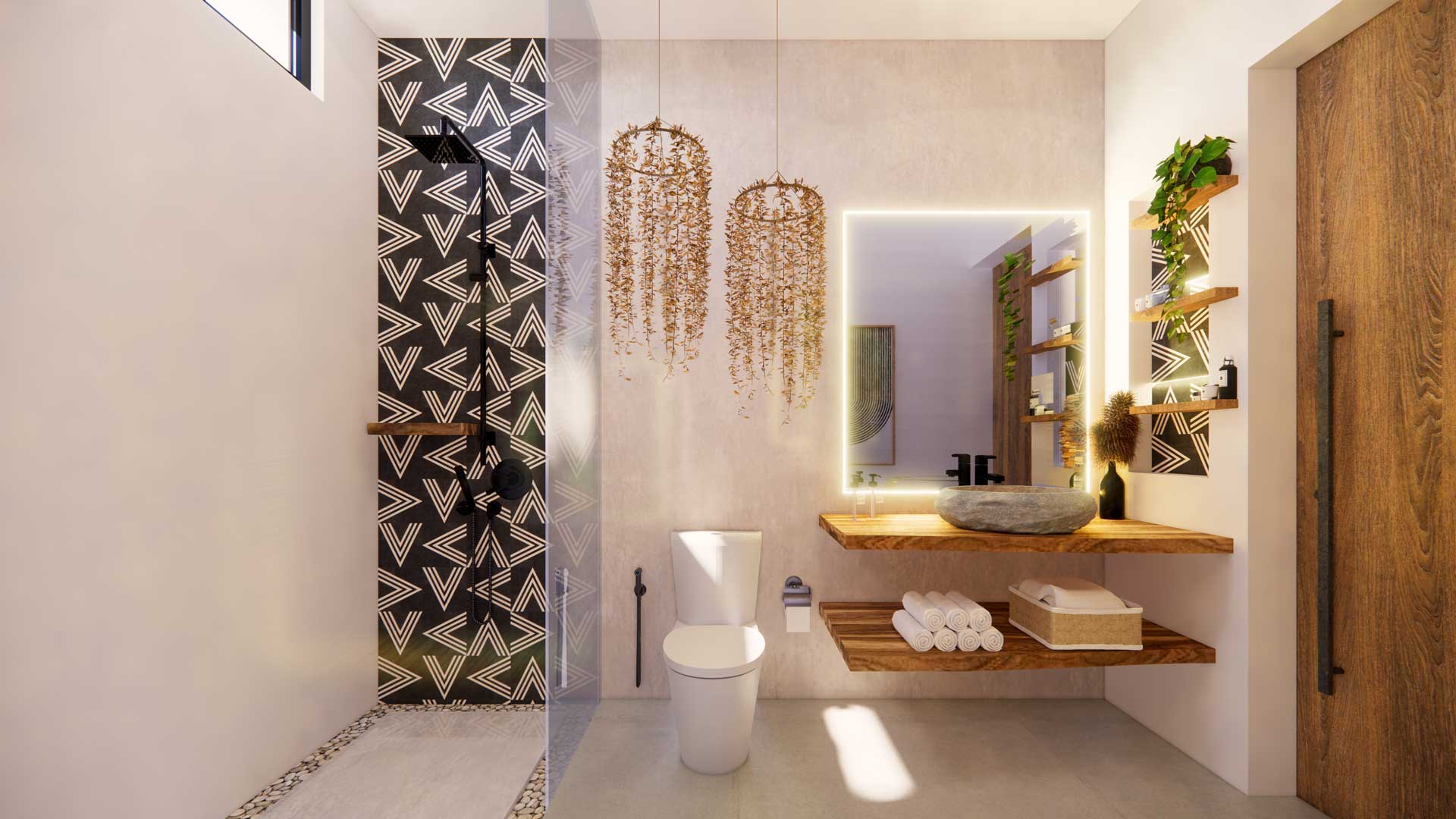 The villa boasts a modern tropical design with bohemian influences. Spanning 231 sqm building on a 190 sqm land plot, it showcases a sophisticated fusion of modern, tropical, and bohemian elements, creating an elegant and comfortable ambiance.