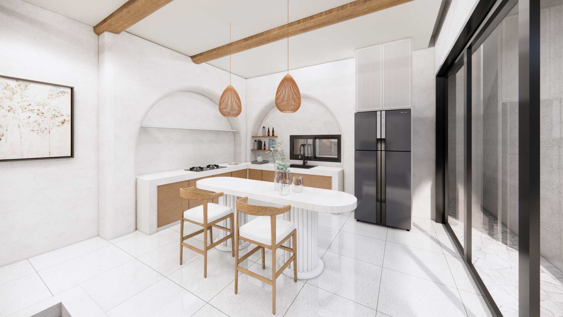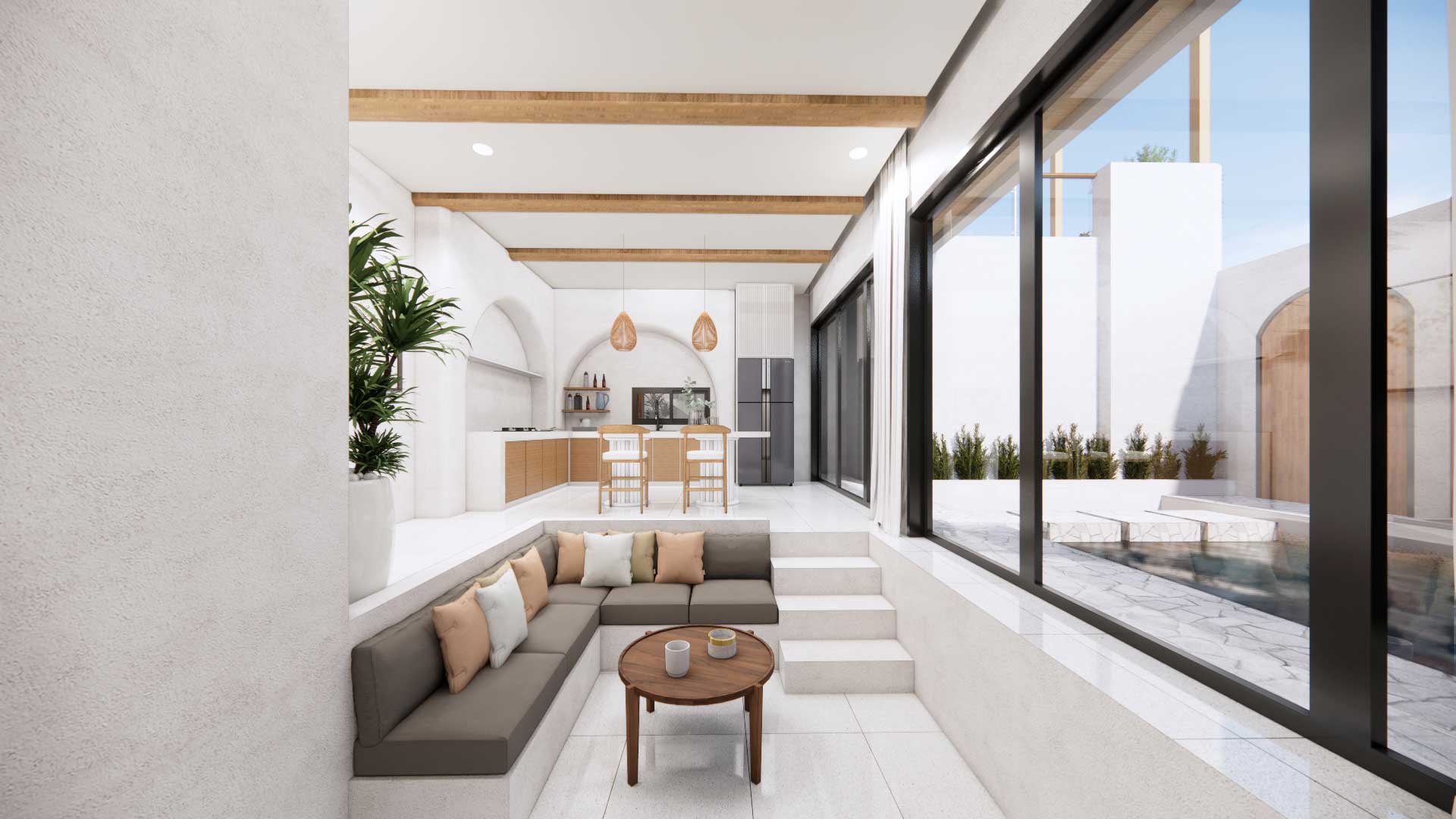 - Contemporary Design: Enter this modern and cozy villa to find a sunken living area seamlessly connected to a fully equipped kitchen and dining space. The chic white interior, enhanced by tasteful wooden furniture, radiates warmth and sophistication.