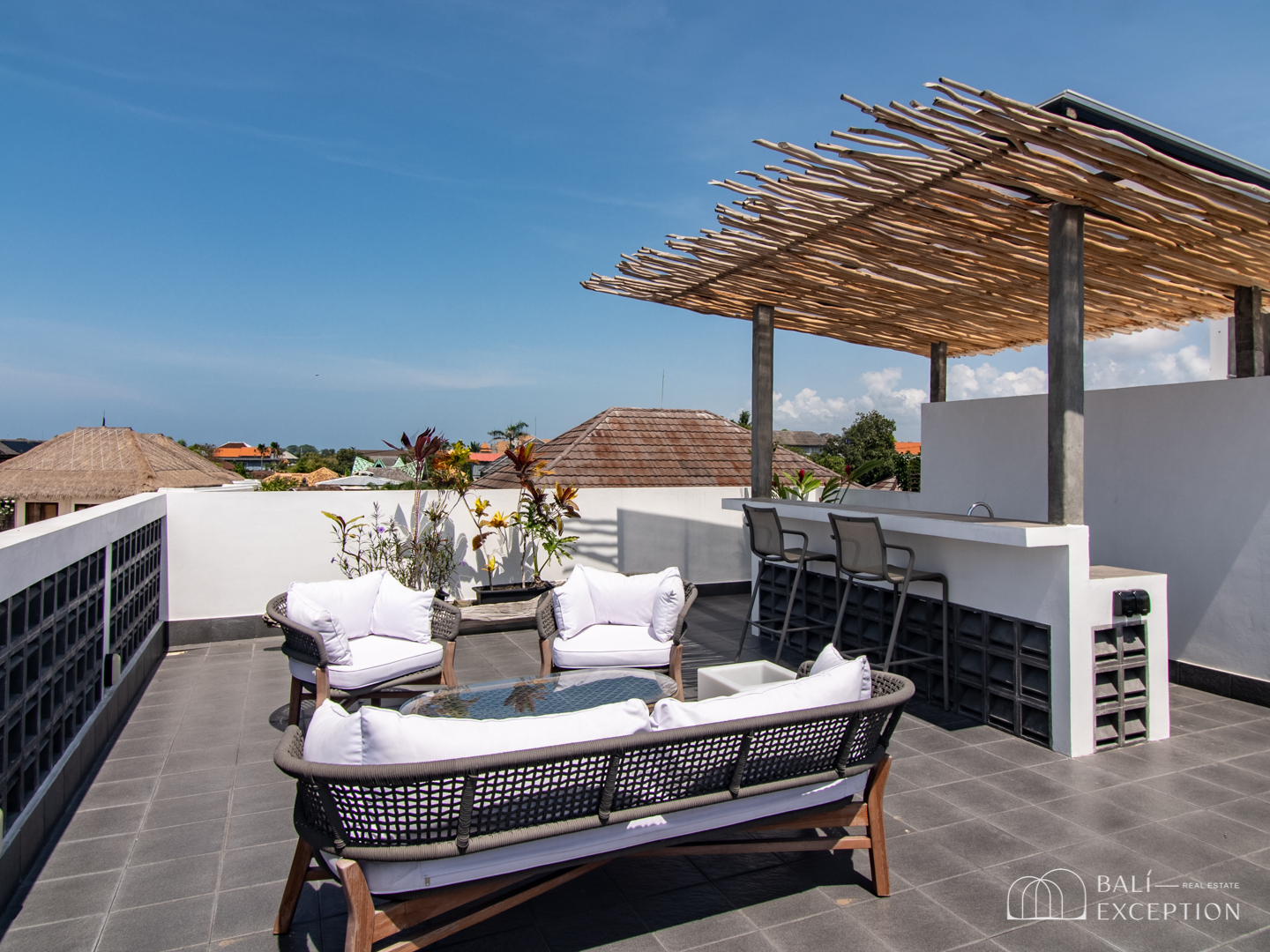 The true highlights, however, are the sparkling swimming pool and the enchanting rooftop area, offering breathtaking views and a perfect spot for relaxation. This villa is more than just a home; it’s a haven of sophistication and tranquility, where luxury living meets tropical paradise.