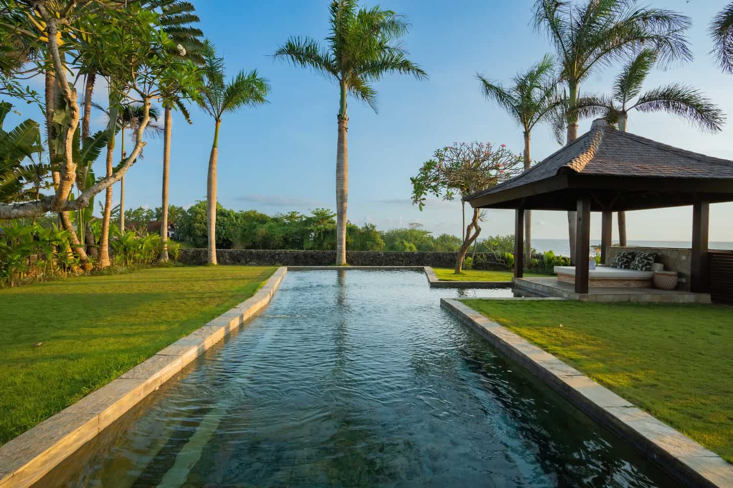 Step outside, and the villa’s true magic unfolds. A big, inviting pool is the centerpiece of the outdoor area, with a cozy gazebo lounge nearby, perfect for lounging in the shade or hosting sunset drinks. The expansive garden offers plenty of space for relaxation or play, while the balcony, complete with lounge chairs, is an ideal spot to soak in the breathtaking sunsets.