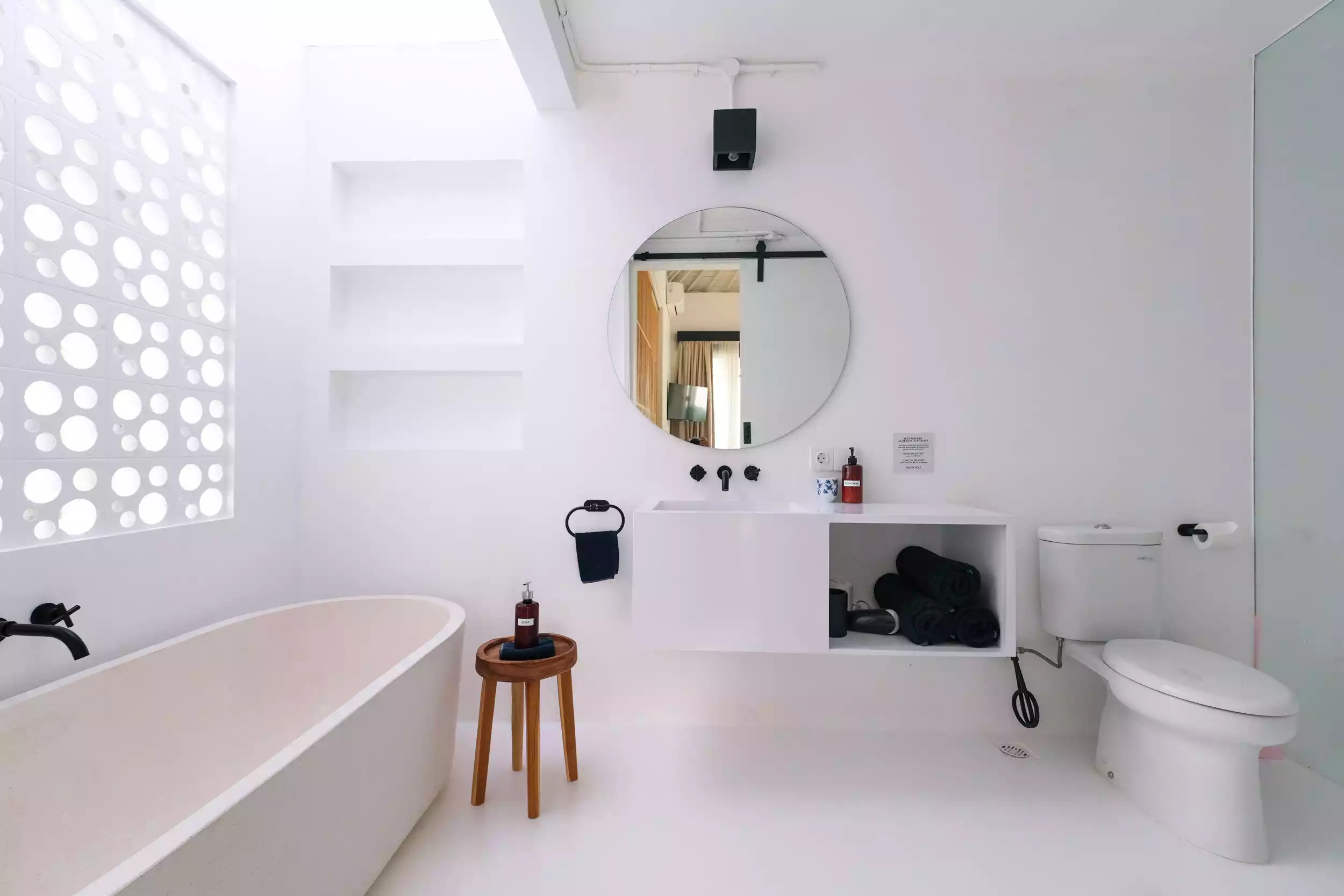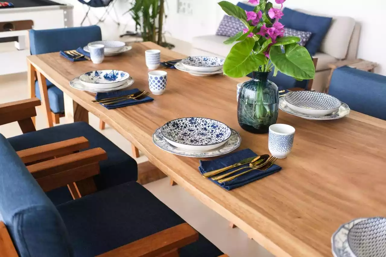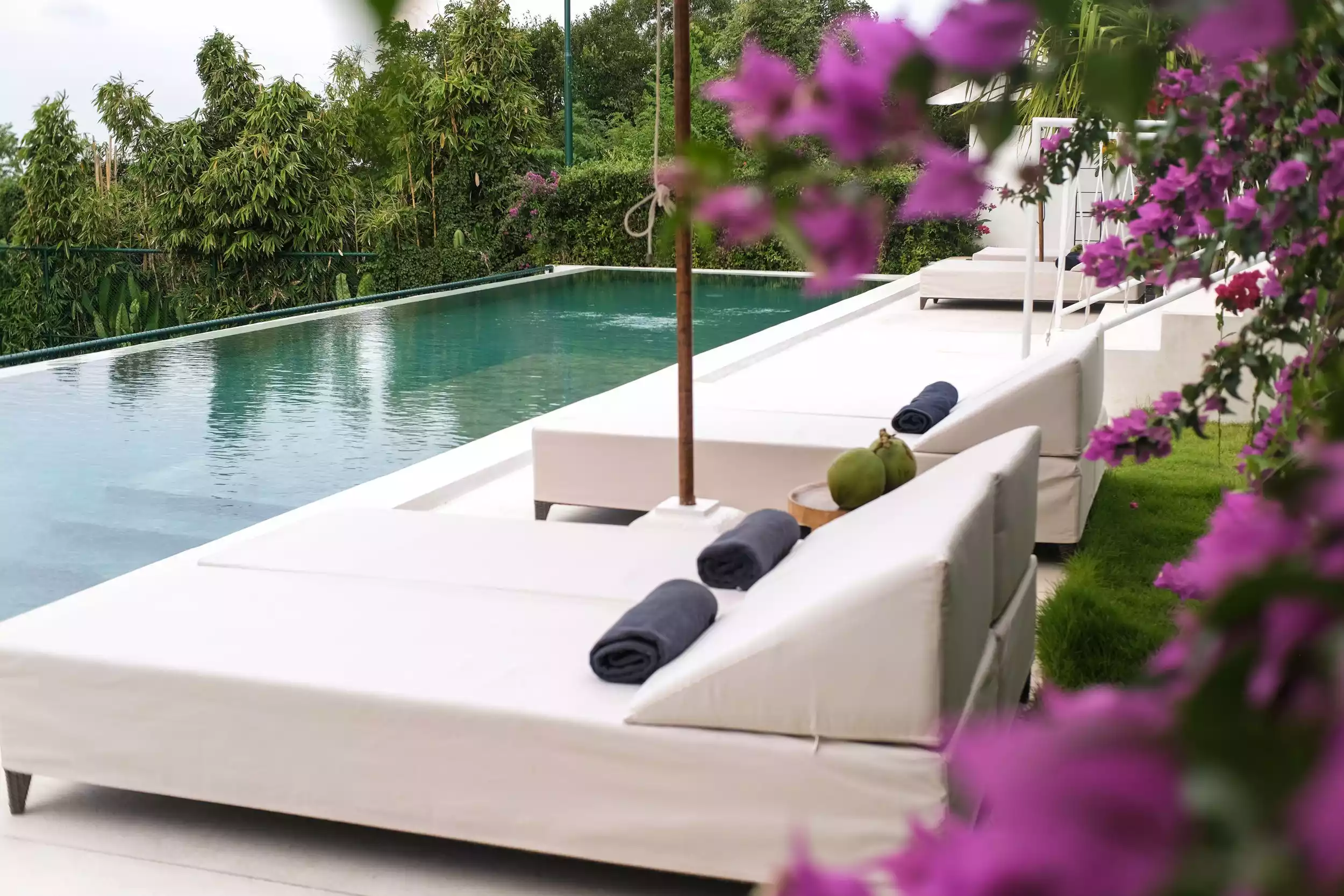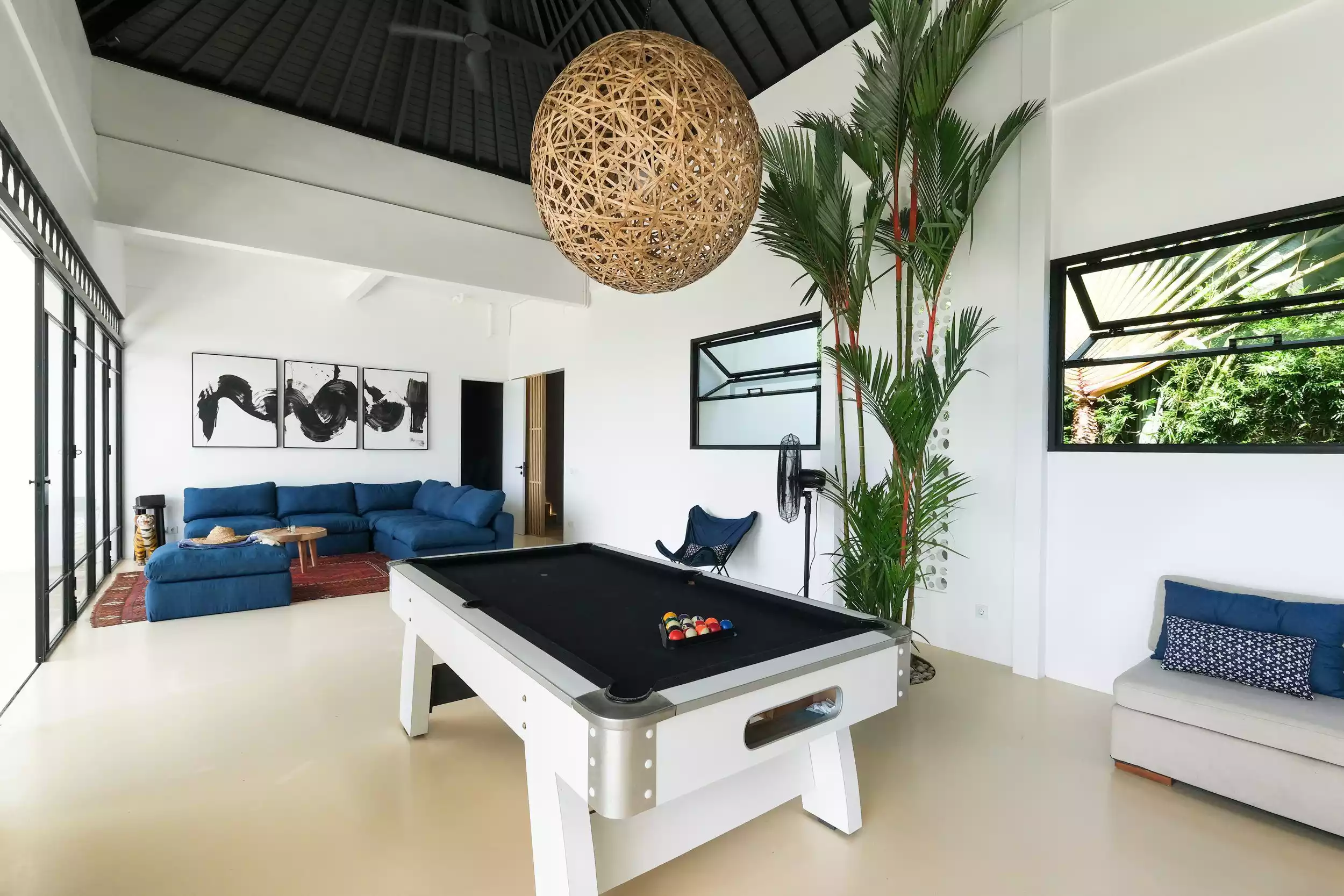 The dining area comes with a large dining table and a fully equipped modern kitchen. The large rooftop terrace with the sunset every evening, cinema room, tennis court and gym, make this villa all the standards for your dream home in Bali.
