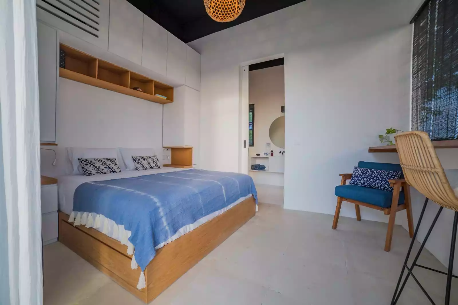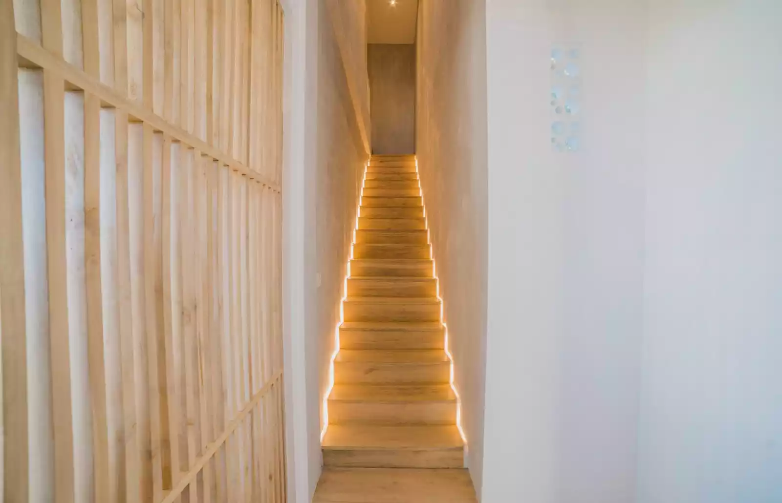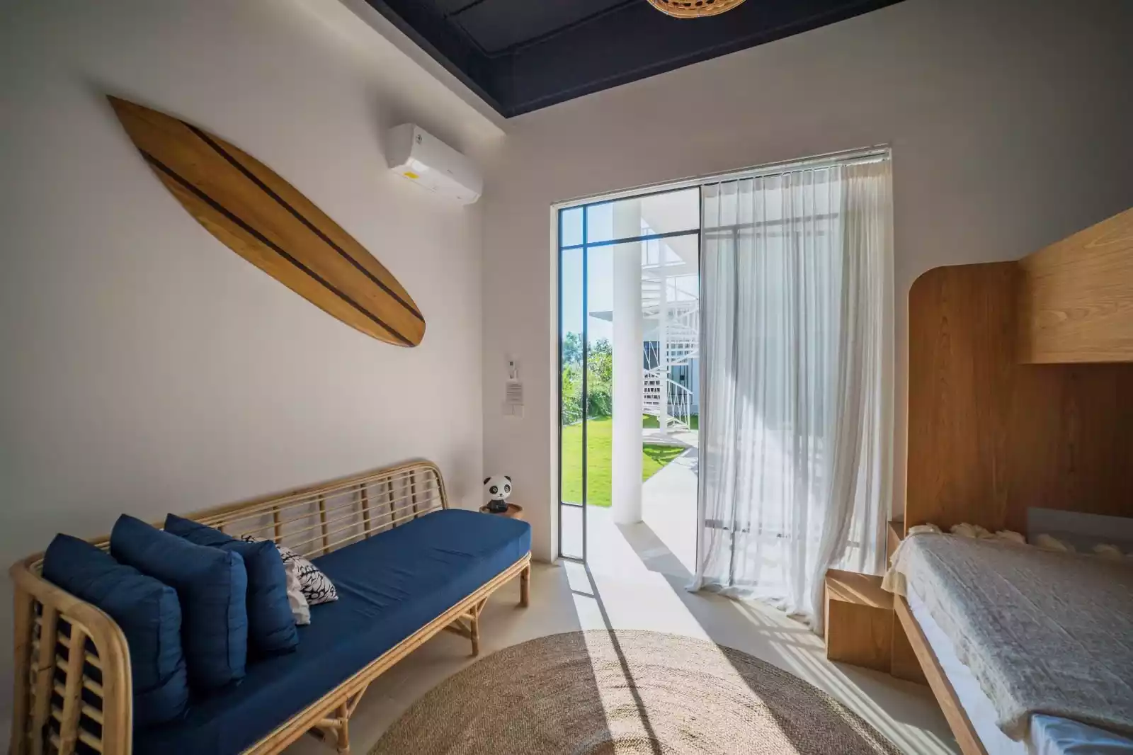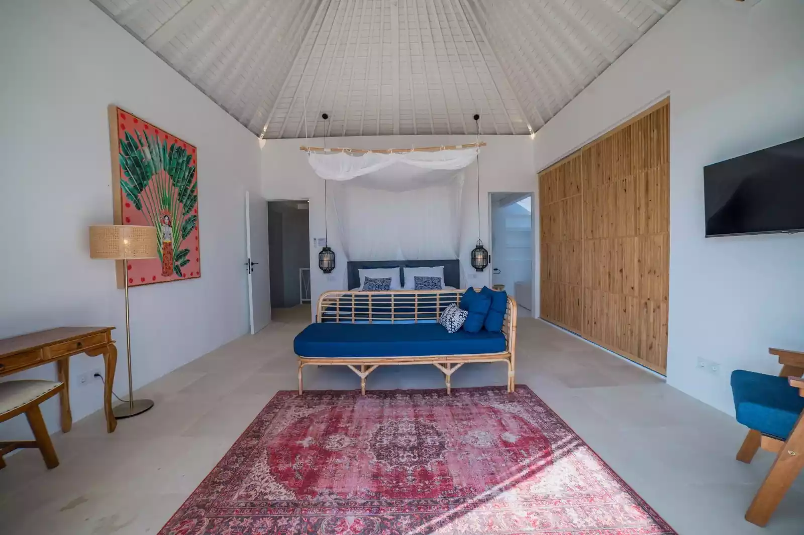 This villa has 2 master suites, 2 double bedrooms and 1 children’s bedroom for 4 people on the top floor for a total of 12 guests. The spacious living area is open concept, beautiful, modern and bright, with 7m high ceilings and quality interiors.
