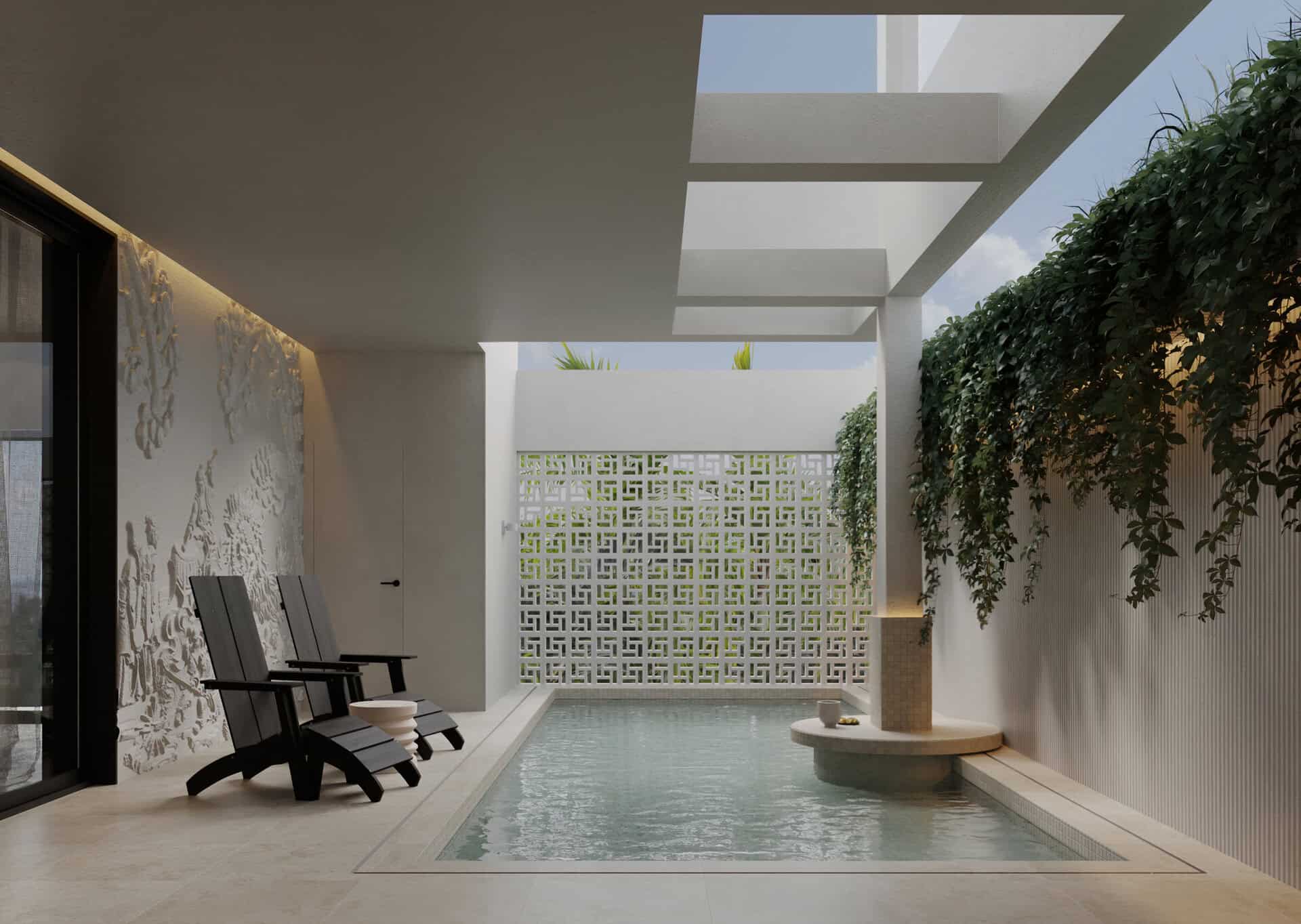Embracing a modern tropical eco-style, this villa features three spacious bedrooms, each with its own ensuite bathroom, ensuring privacy and comfort for all residents. Fully furnished with a contemporary touch, the interiors include a bright and airy living area, a dining space, and a fully equipped kitchen, all bathed in natural light, creating a warm and inviting atmosphere.