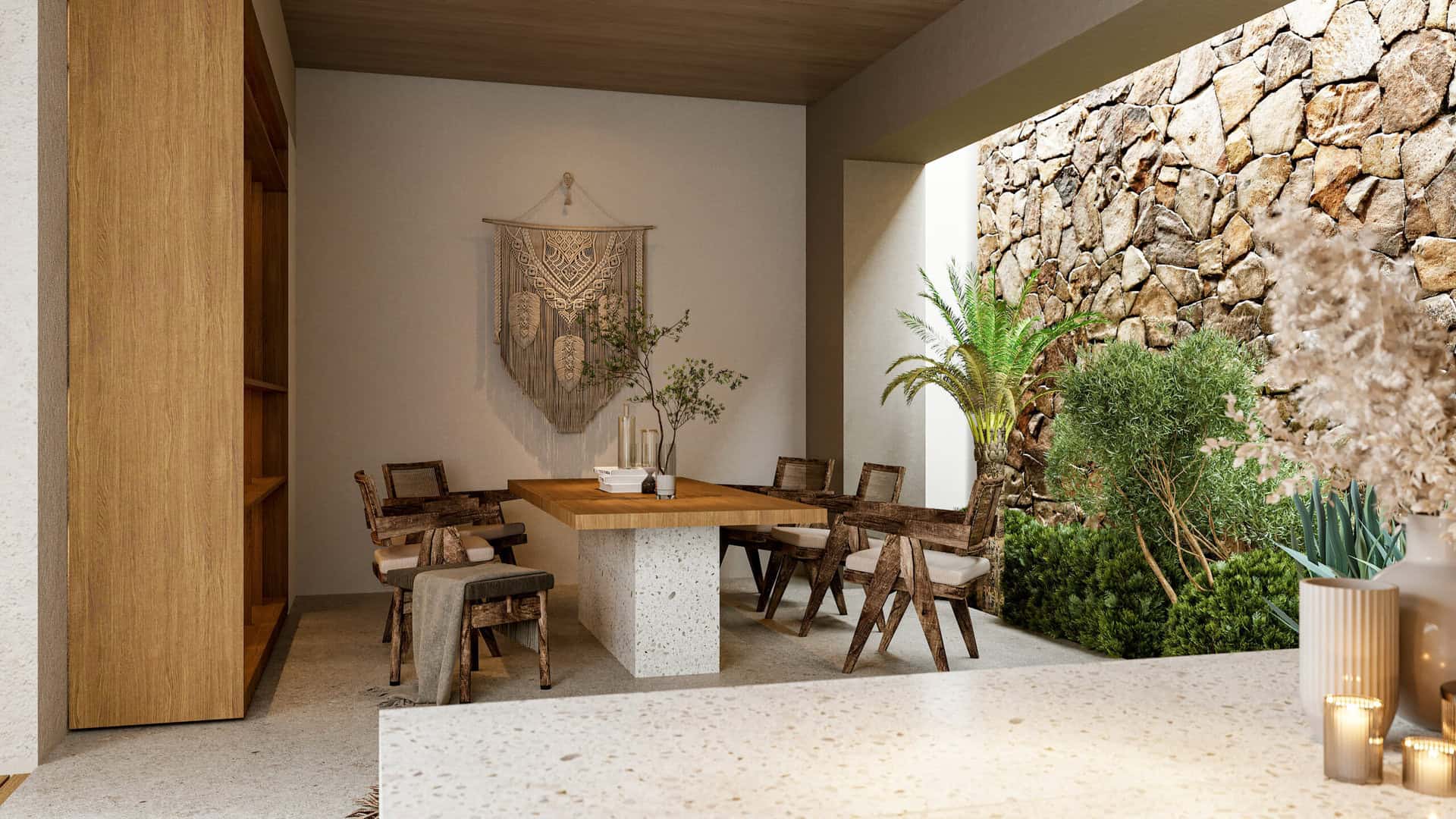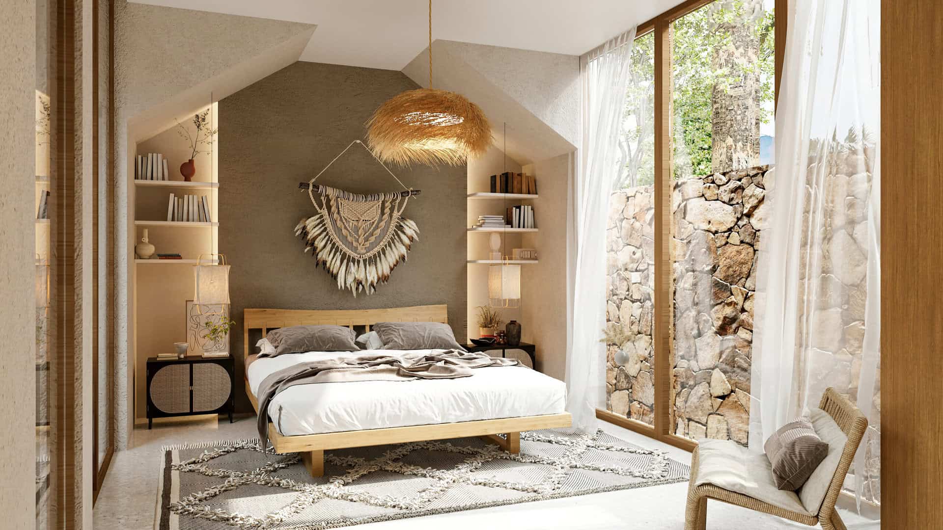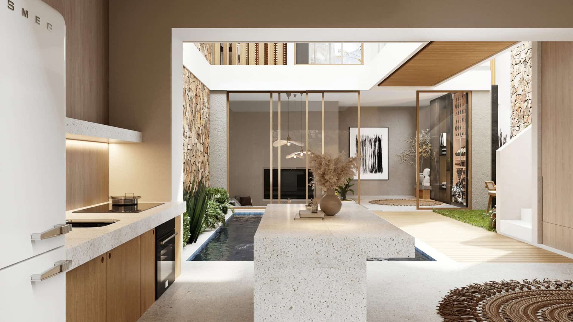 Nestled in the tranquil locale of Bingin, Uluwatu, this two-bedroom off-plan villa offers a serene escape just 8 minutes from the pristine Bingin Beach, and is just steps away from trendy cafes and restaurants. It’s conveniently located 5 minutes from Rolling Fork Padang-Padang, 6 minutes from Hatch Bar, and 14 minutes from Uluwatu Temple. This fully furnished villa boasts two bedrooms and two and a half bathrooms, a modern, fully equipped kitchen, and expansive high ceiling windows that enhance its luxurious ambiance.
