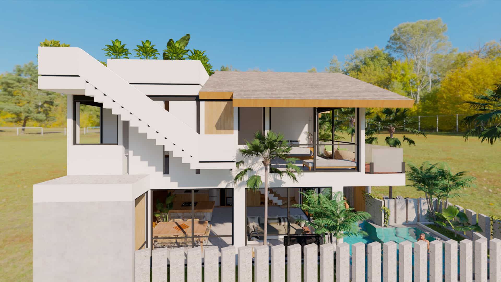 - Exquisite Outdoor Space: Features a stunning swimming pool, a lush garden, and a rooftop terrace ideal for relaxing and entertaining.