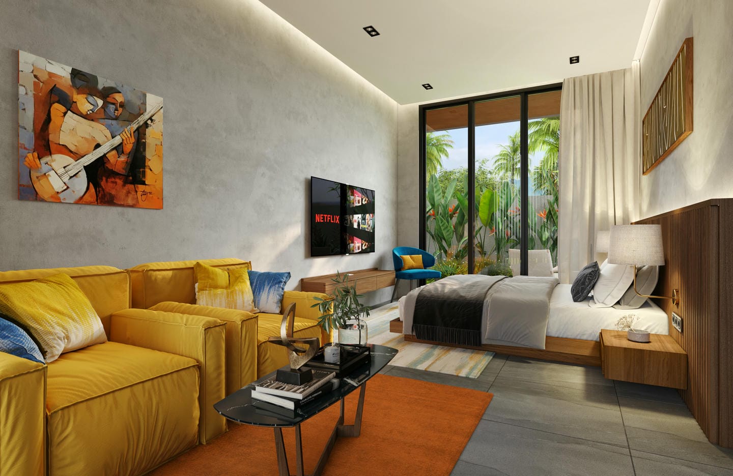 This stunning villa is nestled in the heart of Canggu, one of the most sought-after locations, offering proximity to trendy cafes, fine dining restaurants, and, most importantly, a short distance from the beach. Inspired by the elegance of California’s 70s design, this villa boasts a generous land size of 1,074 square meters and an impressive build size of 620 square meters.