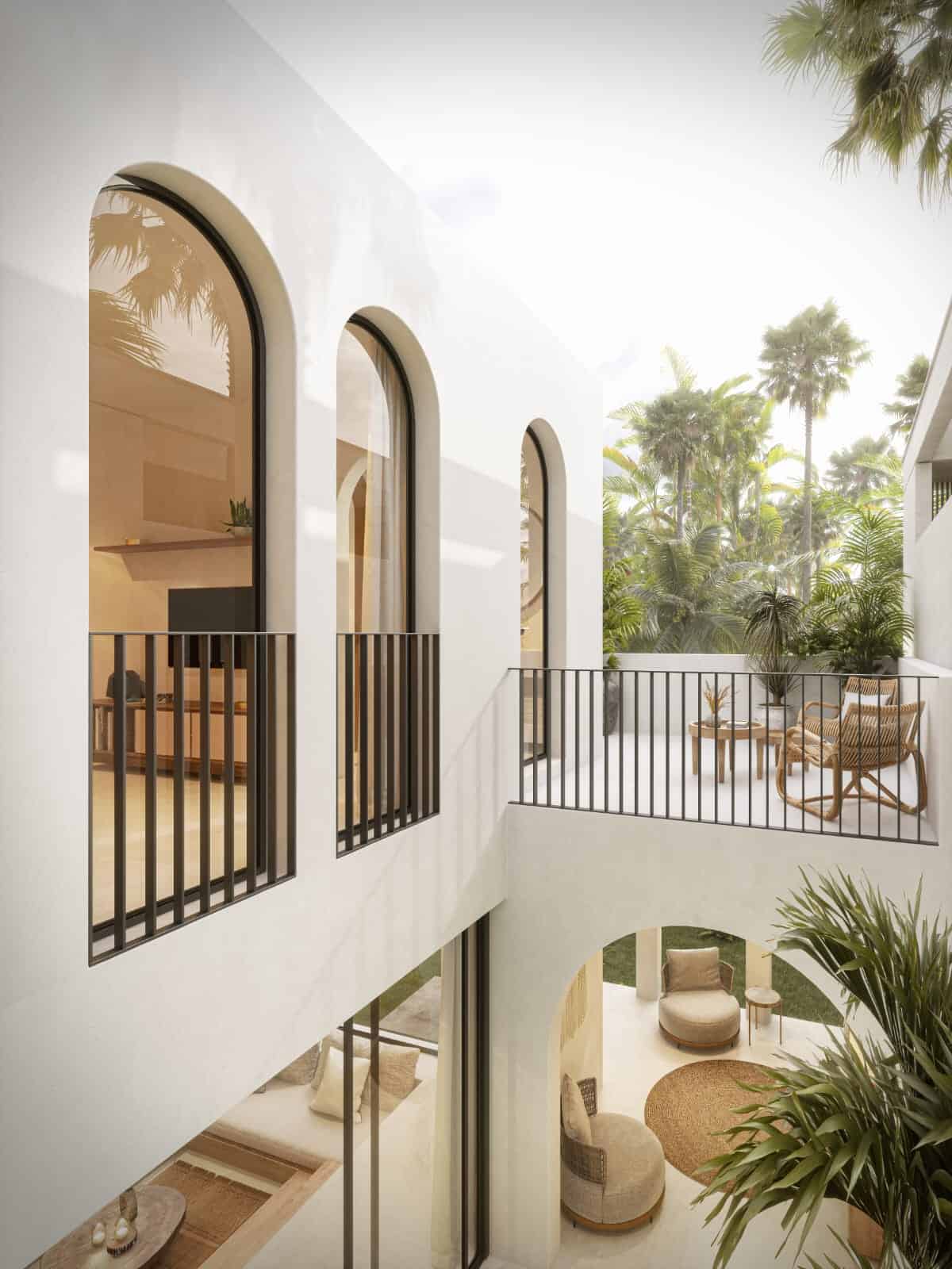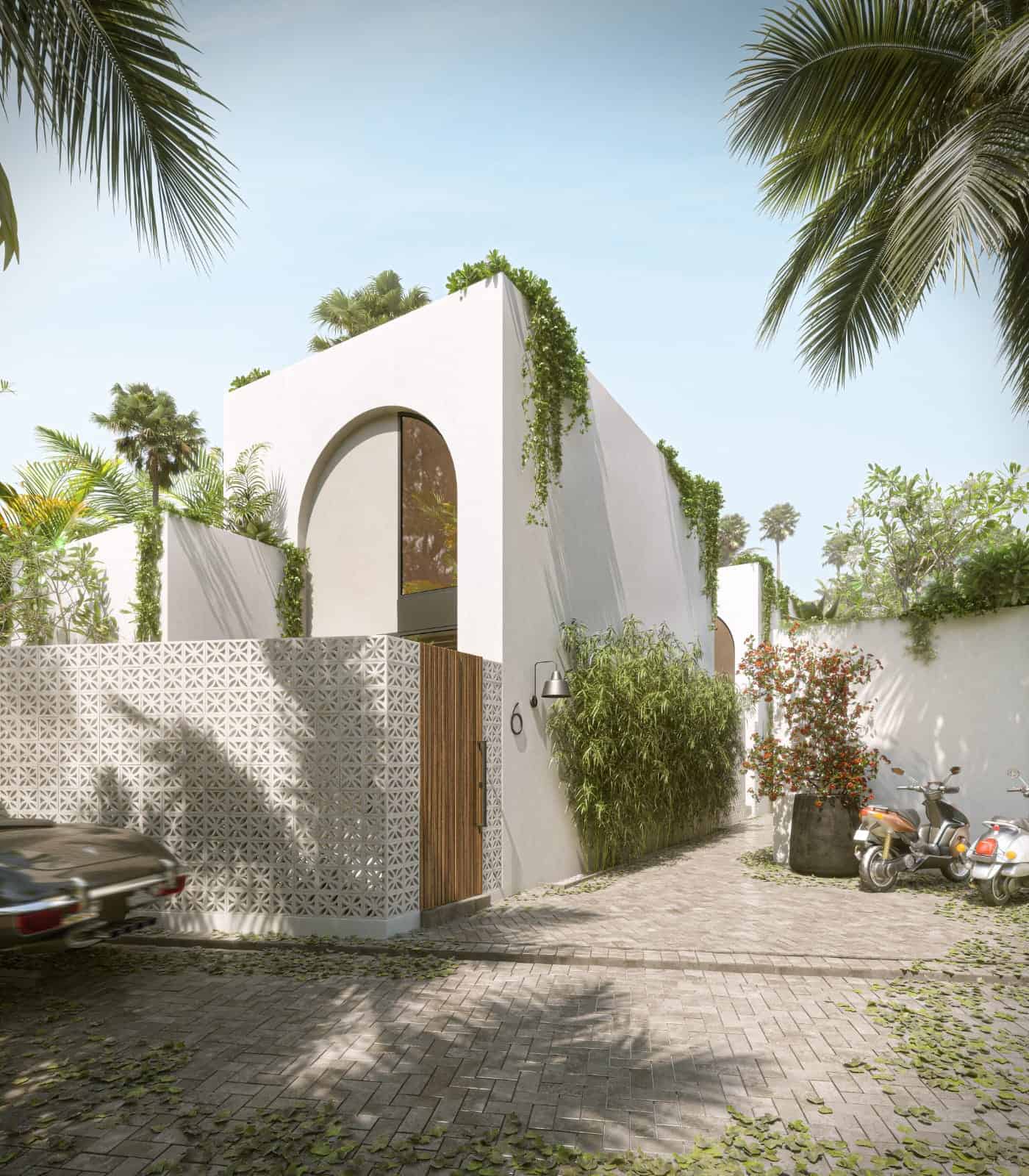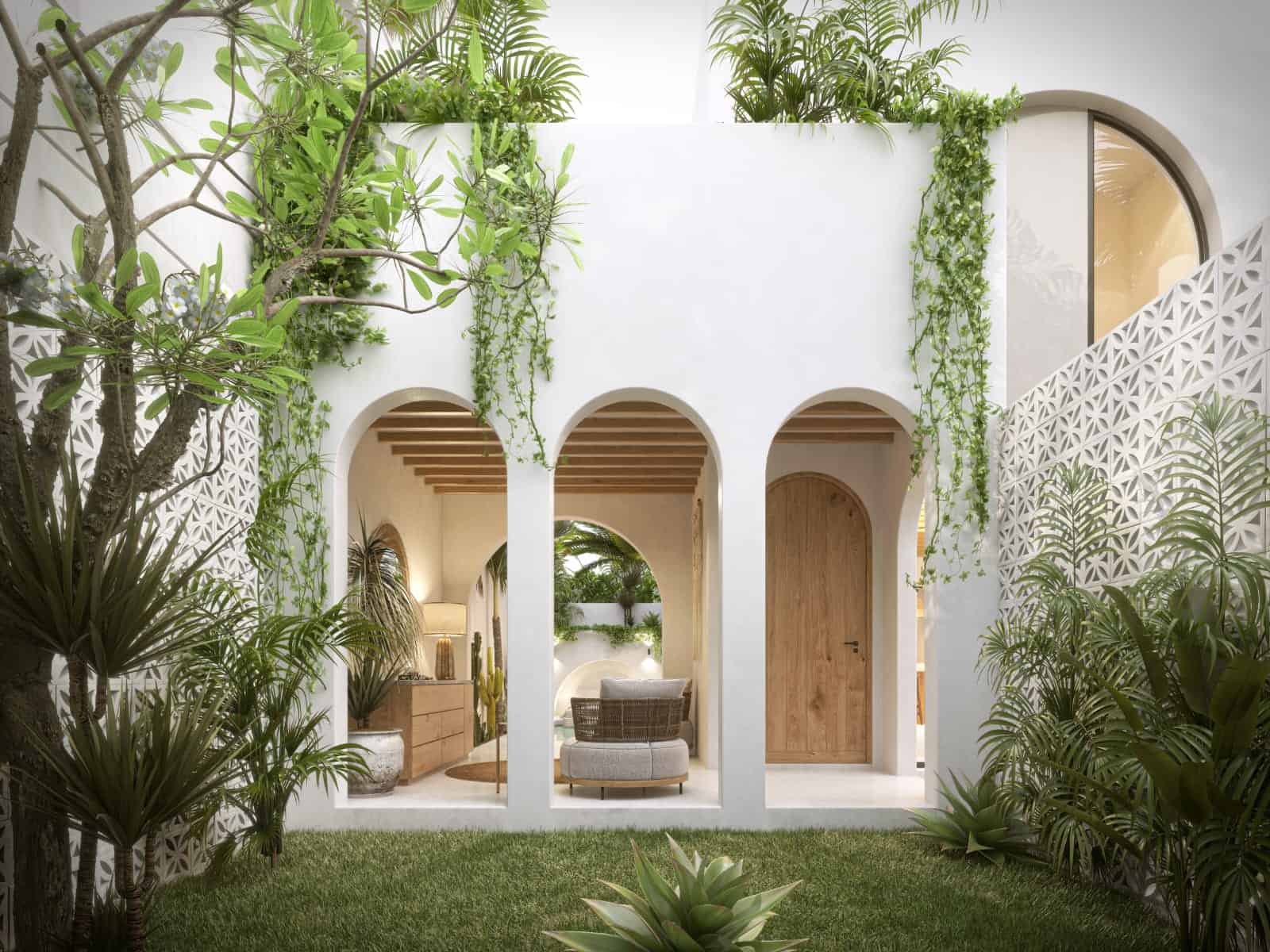 Nestled in the heart of Canggu, just a 10-minute stroll from Batu Bolong and Berawa Beach, and iconic beach clubs like ATLAS & FINNS, this off-plan one-bedroom villa defines a charming small residential design. Featuring a striking off-white color and a Mediterranean-inspired covered patio, the villa beautifully contrasts with its lush surroundings, creating an oasis of tranquility and style.