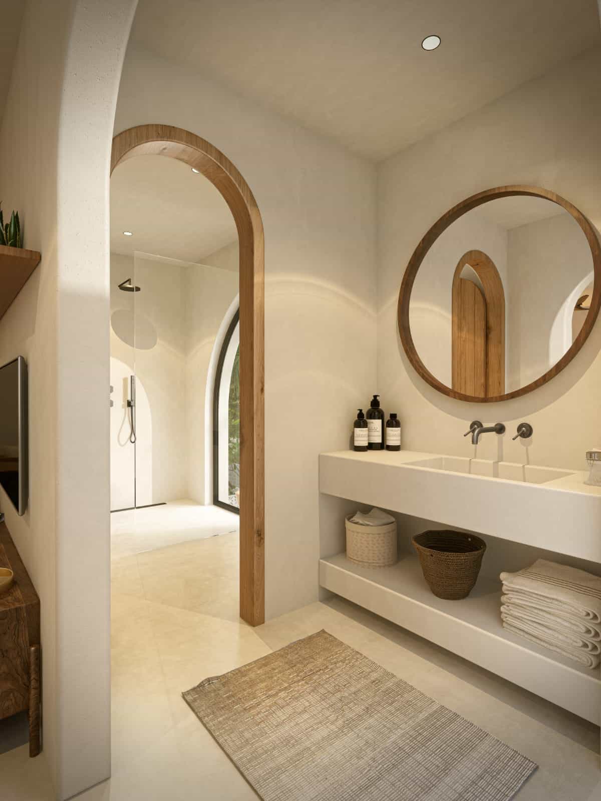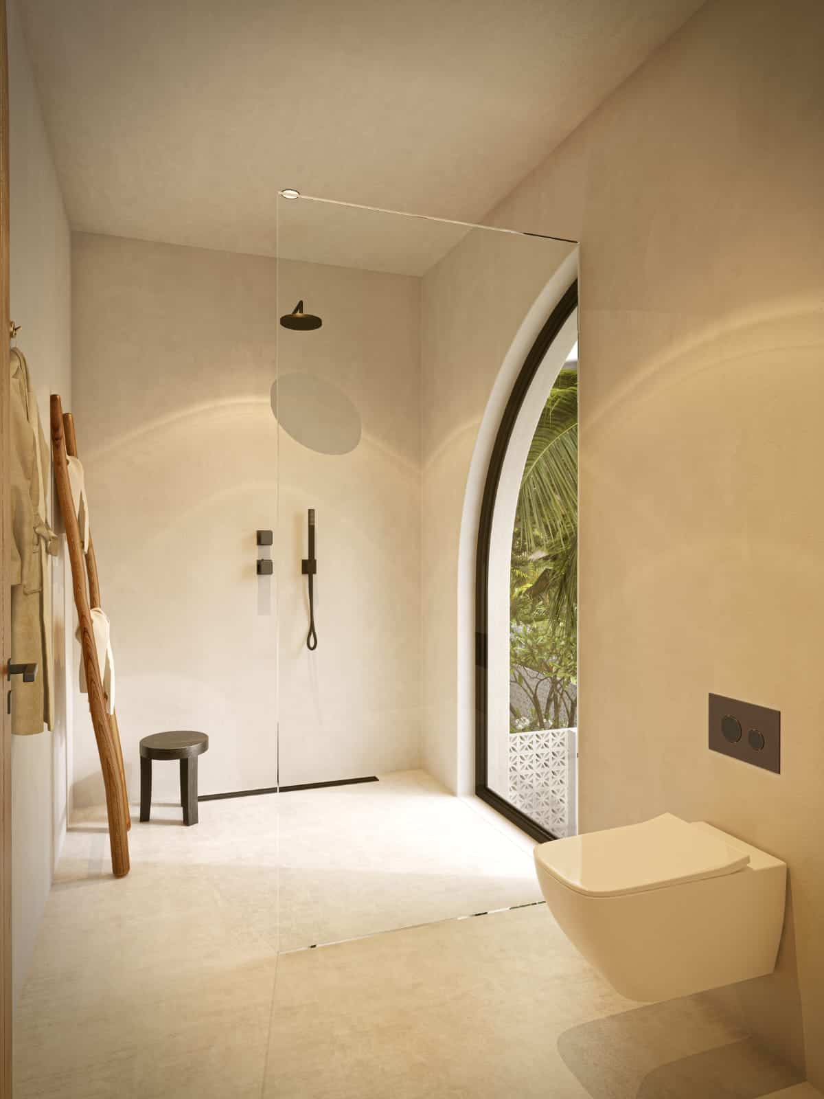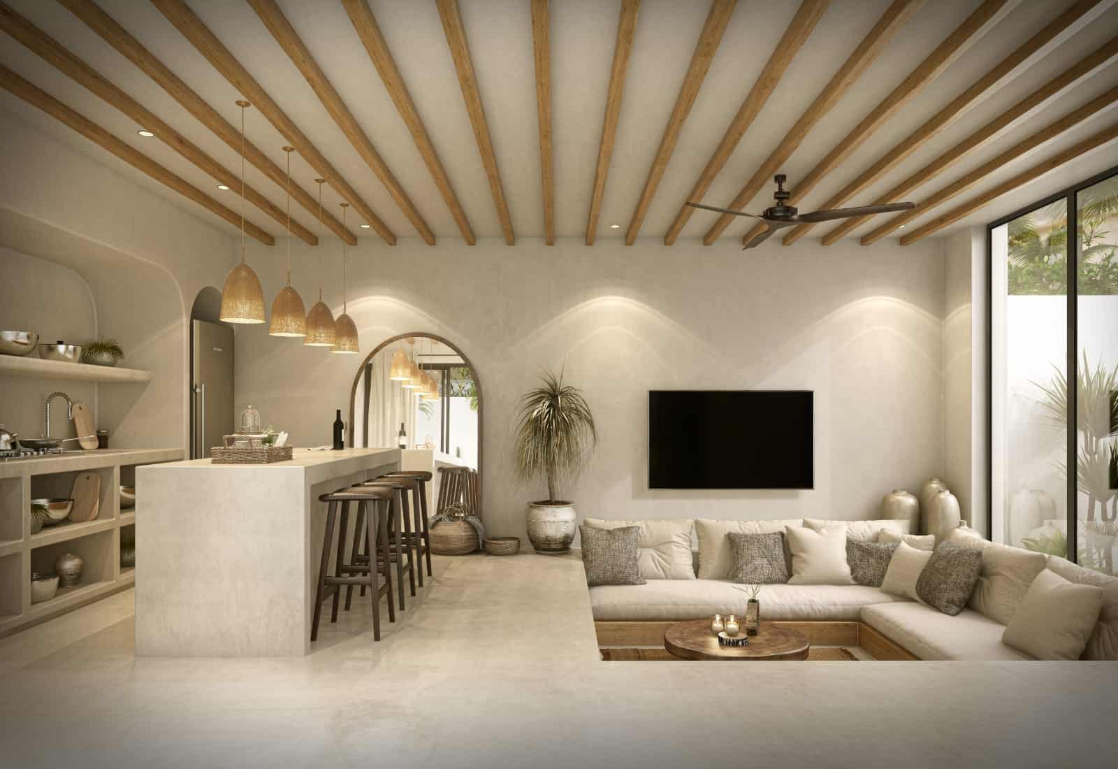 Nestled in the heart of Canggu, just a 10-minute stroll from Batu Bolong and Berawa Beach, and iconic beach clubs like ATLAS & FINNS, this off-plan one-bedroom villa defines a charming small residential design. Featuring a striking off-white color and a Mediterranean-inspired covered patio, the villa beautifully contrasts with its lush surroundings, creating an oasis of tranquility and style.