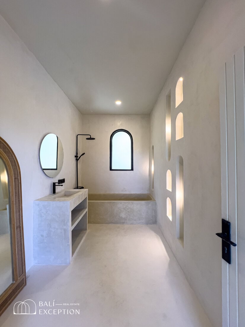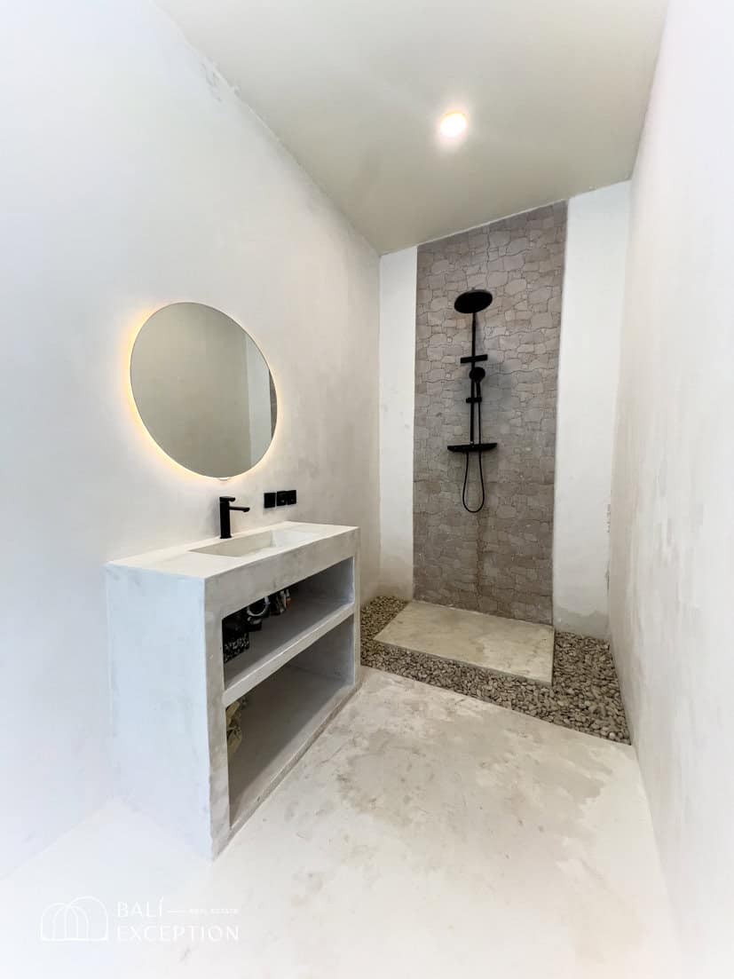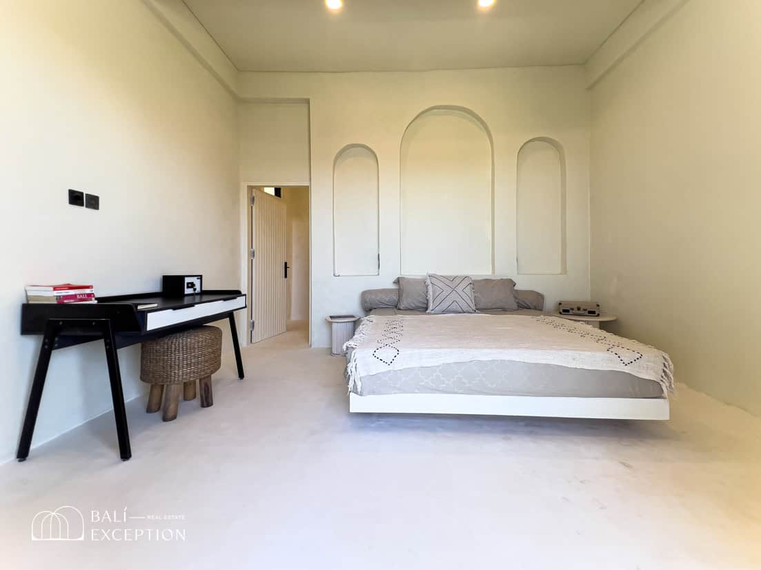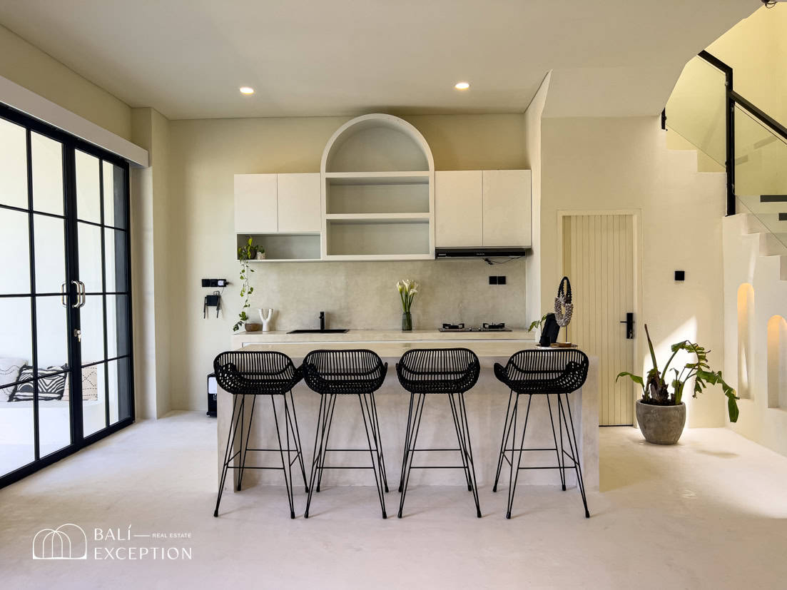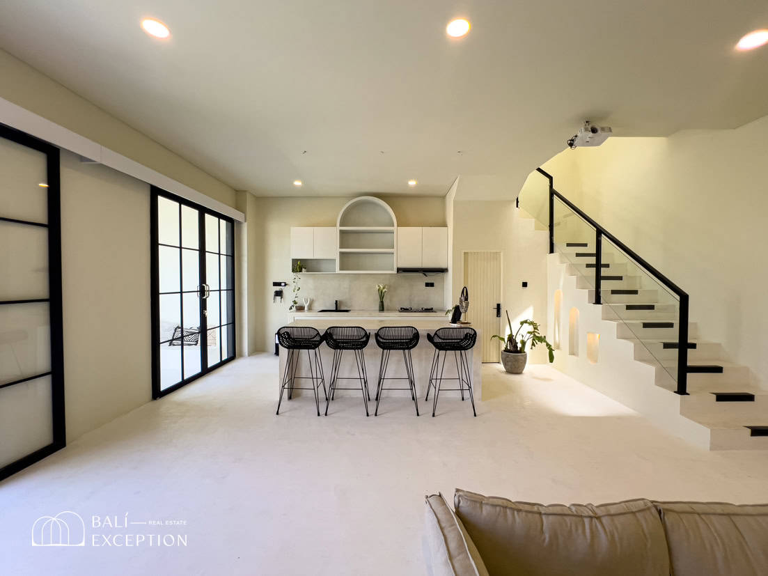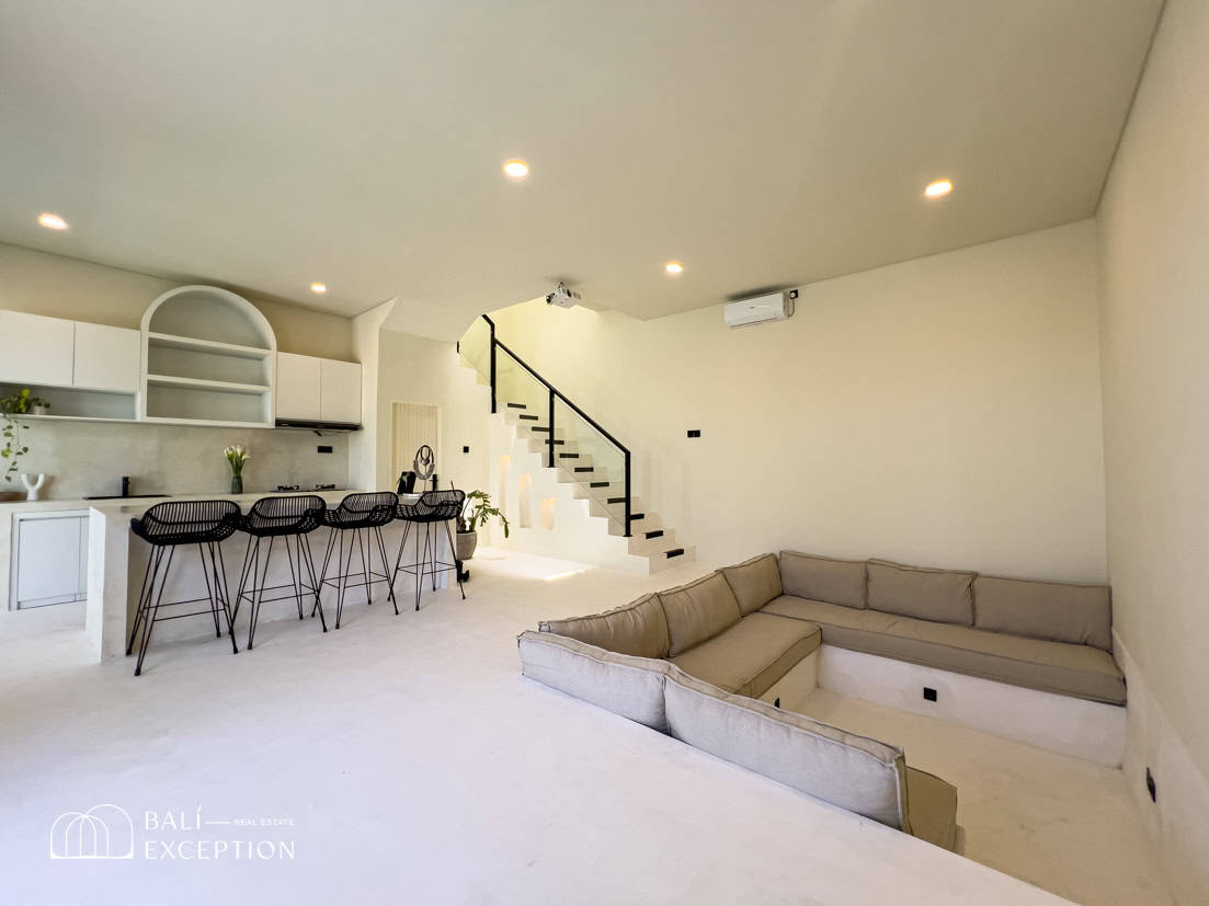 The villa features a cozy sunken living area that creates an intimate yet spacious atmosphere, leading to 2 beautifully designed bedrooms and 2.5 bathrooms. Fully furnished and equipped with a modern kitchen and a dining area, it’s ready for you to move in and start enjoying the Bali experience.