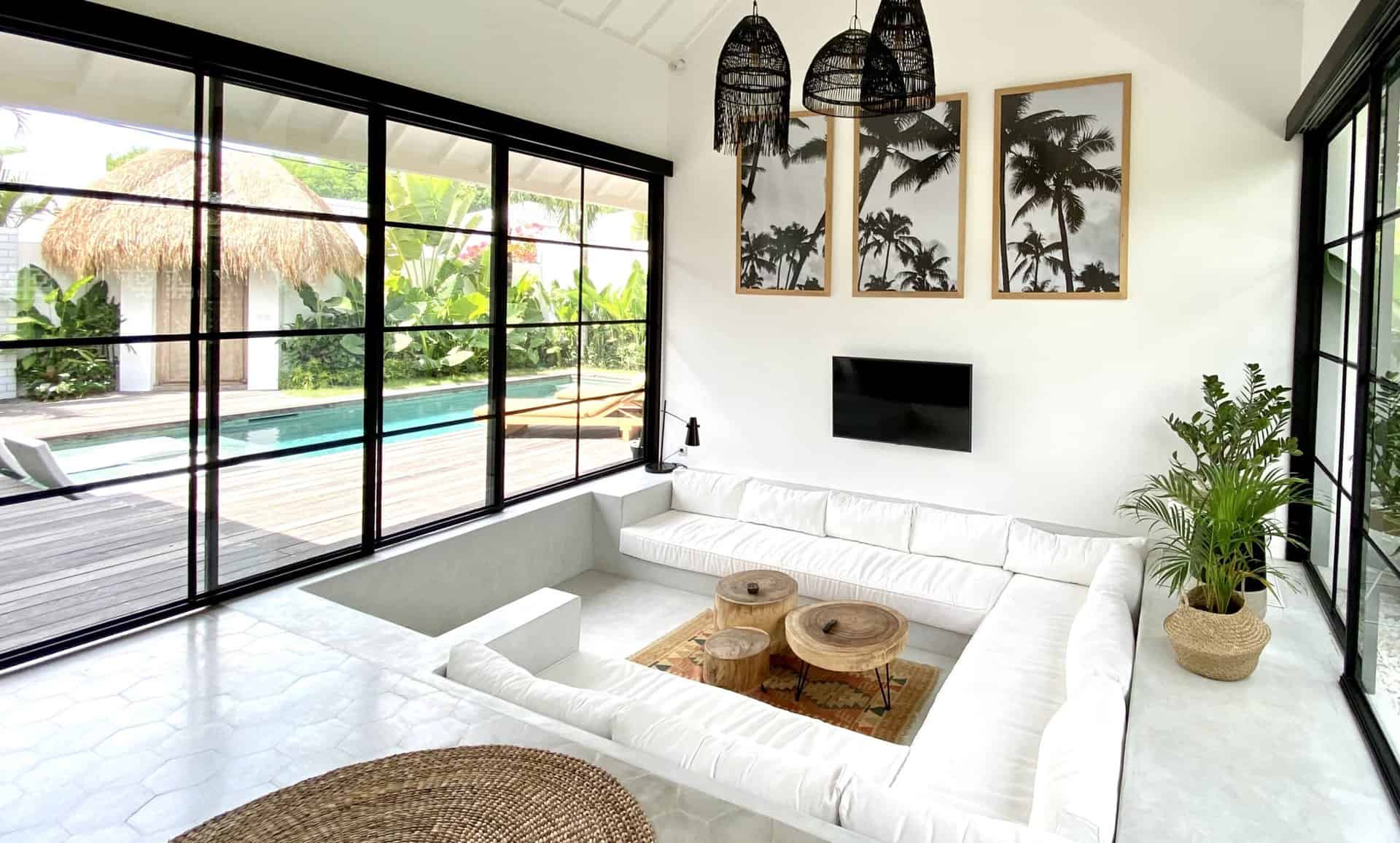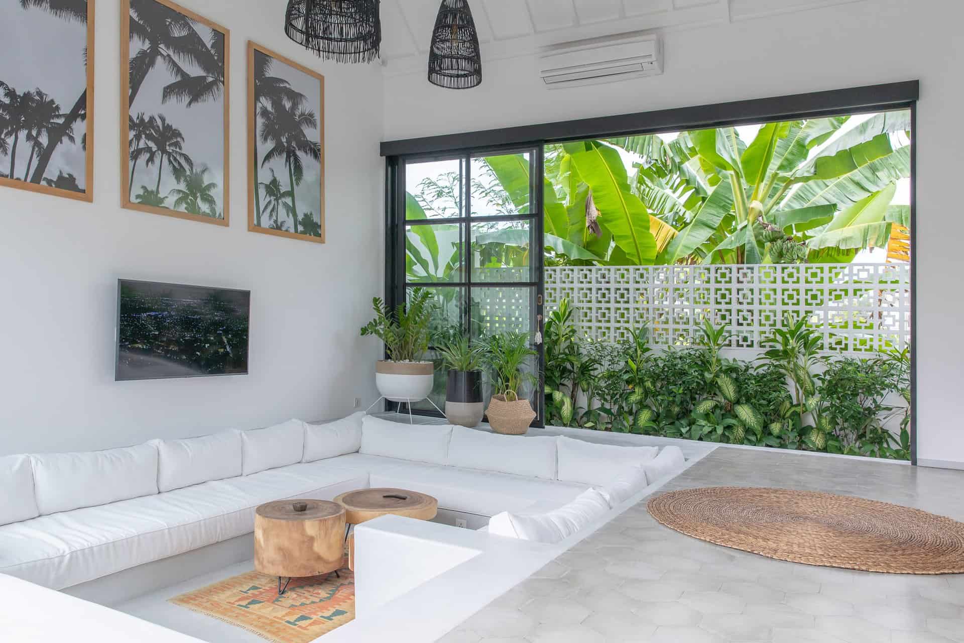 Inside, the sunken living room feels both cozy and spacious, with high ceiling windows that let natural light flood in, creating a warm and inviting atmosphere. With a 160 sqm build size, the villa includes 3 bedrooms and 3 bathrooms, providing everyone with their own private space. You’ll love the outdoor touches—an inviting outdoor bathtub and shower let you soak and unwind in the fresh air, surrounded by nature. Fully furnished with stylish décor and a modern, fully equipped kitchen, it’s ready for you to settle in or entertain with ease.