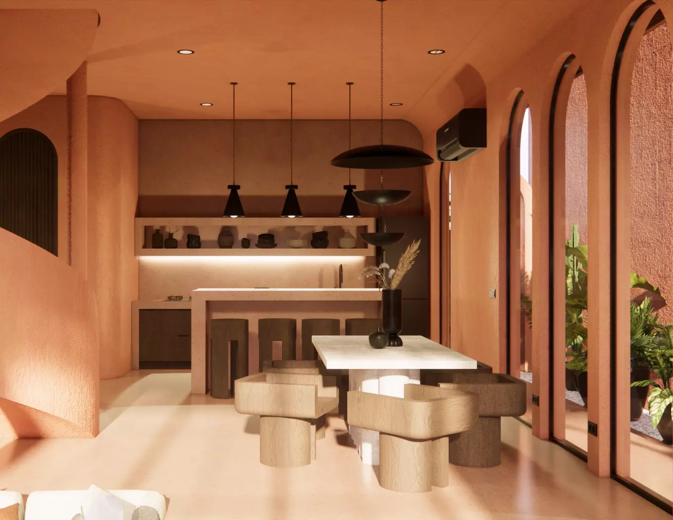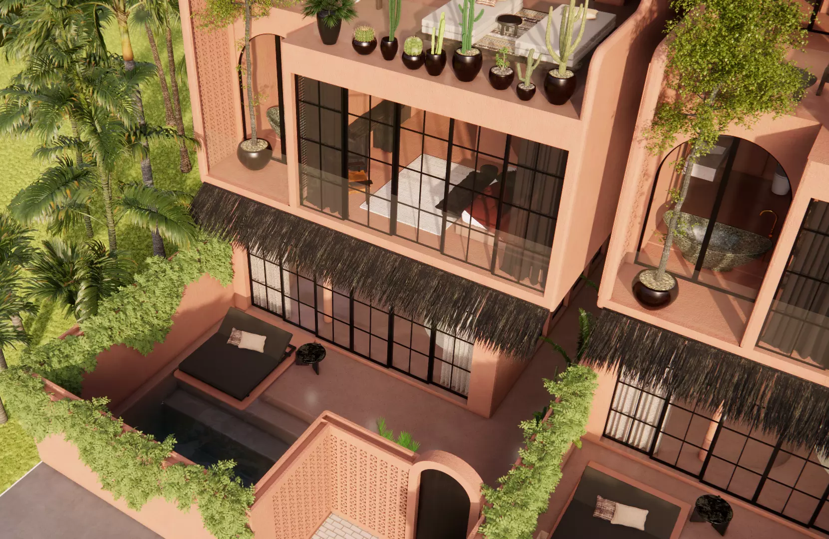 The villas itself are a masterpiece of atypical design, boasting two spacious bedrooms and three luxurious bathrooms each. Spanning across 150 square meters of land with a 200-square-meter building, these properties provide a perfect balance of space and intimacy while having a 180 degrees ocean view. A cinema room, a private pool and a charming terrace offer ample opportunities for relaxation and outdoor entertainment. In addition to its unique design, these villas present an excellent investment opportunity.