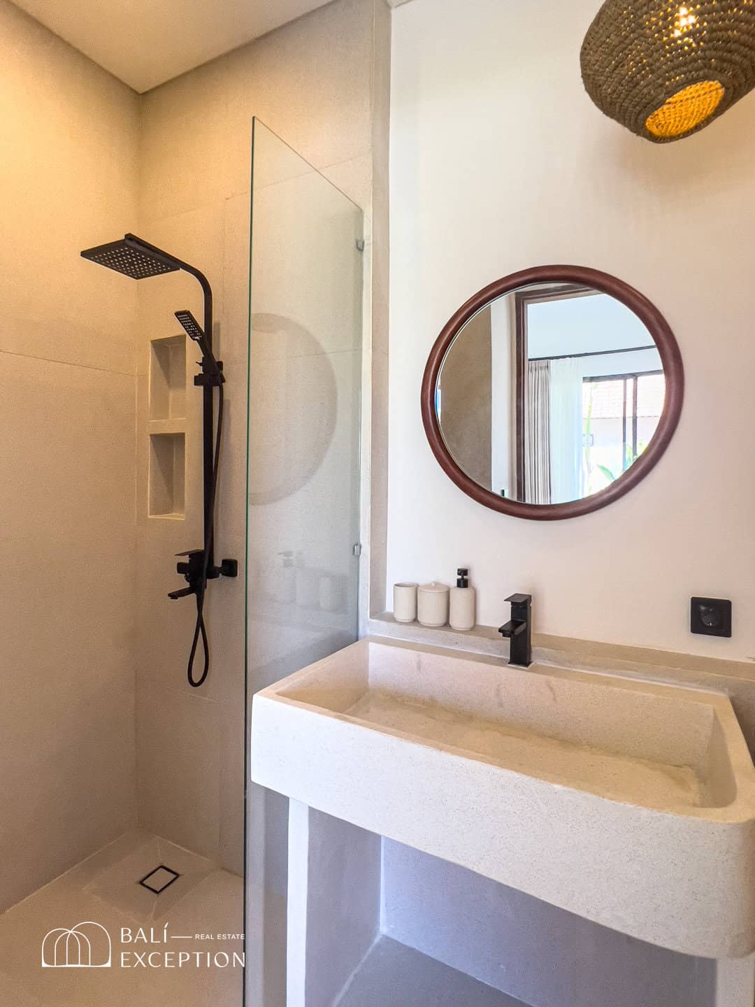 Located just 3 minutes from the serene Cemagi Beach, this stunning two-level villa offers the perfect blend of modern design and tropical charm.