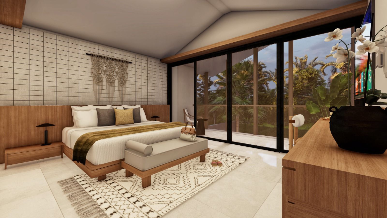 Stepping outside, you’ll be greeted by a pool paired with lounge sofas, offering the ideal place to bask in the tropical sun. Convenient parking facilities are provided for your convenience.