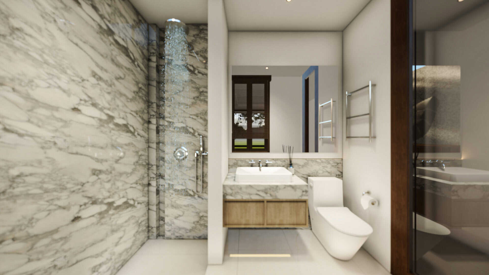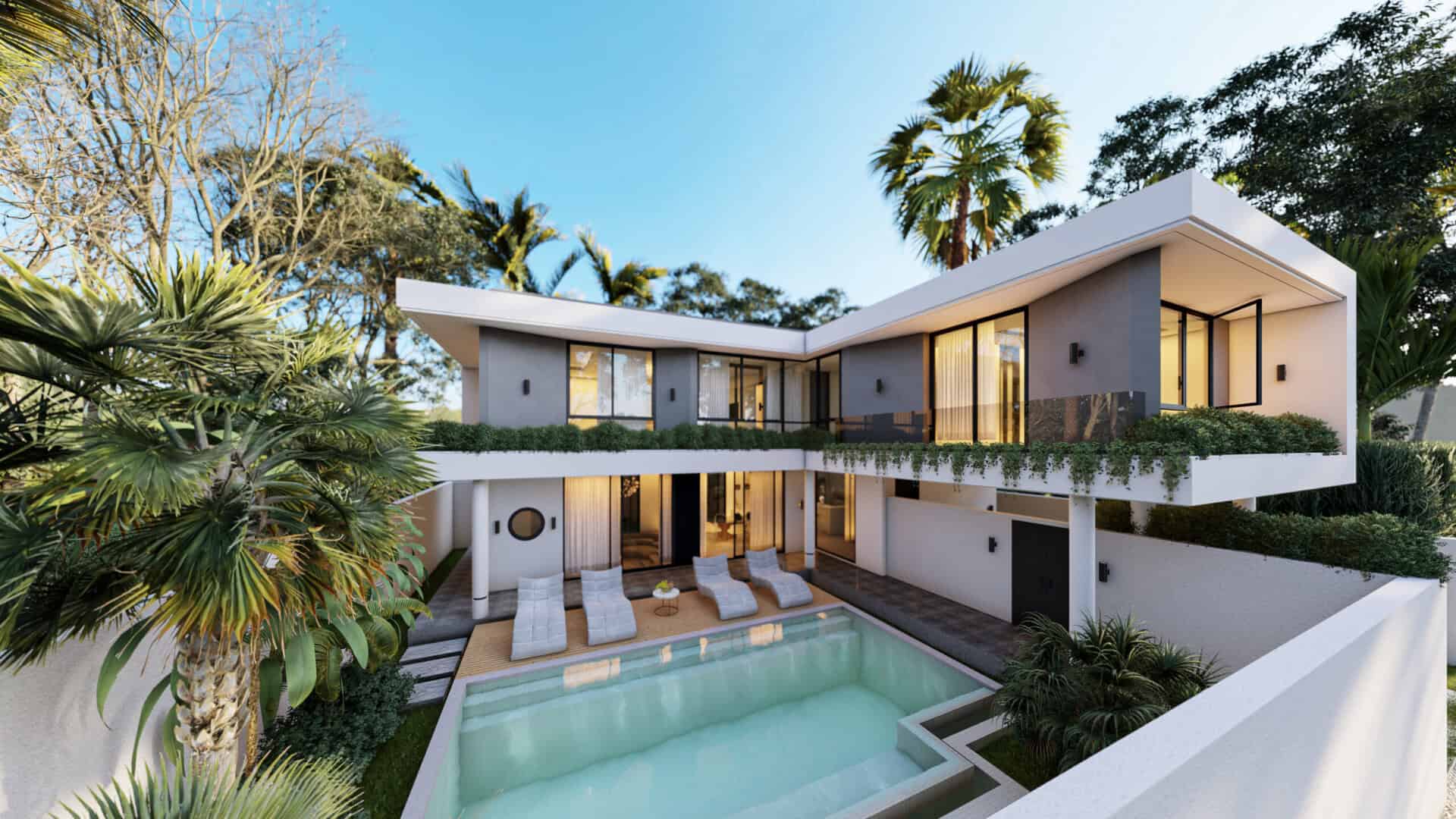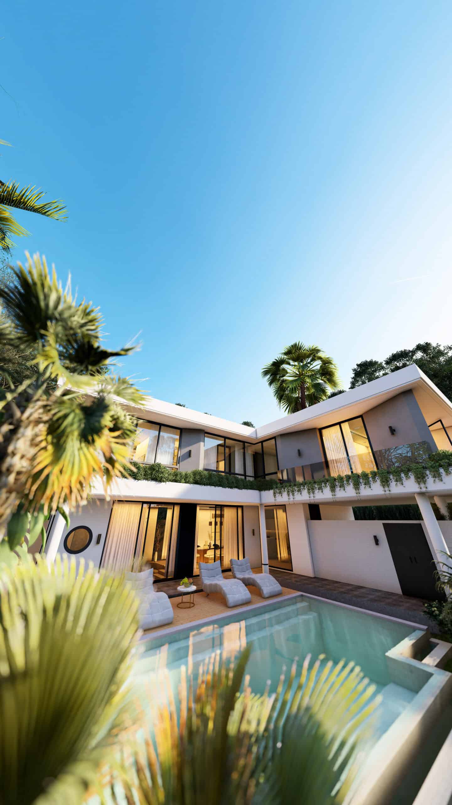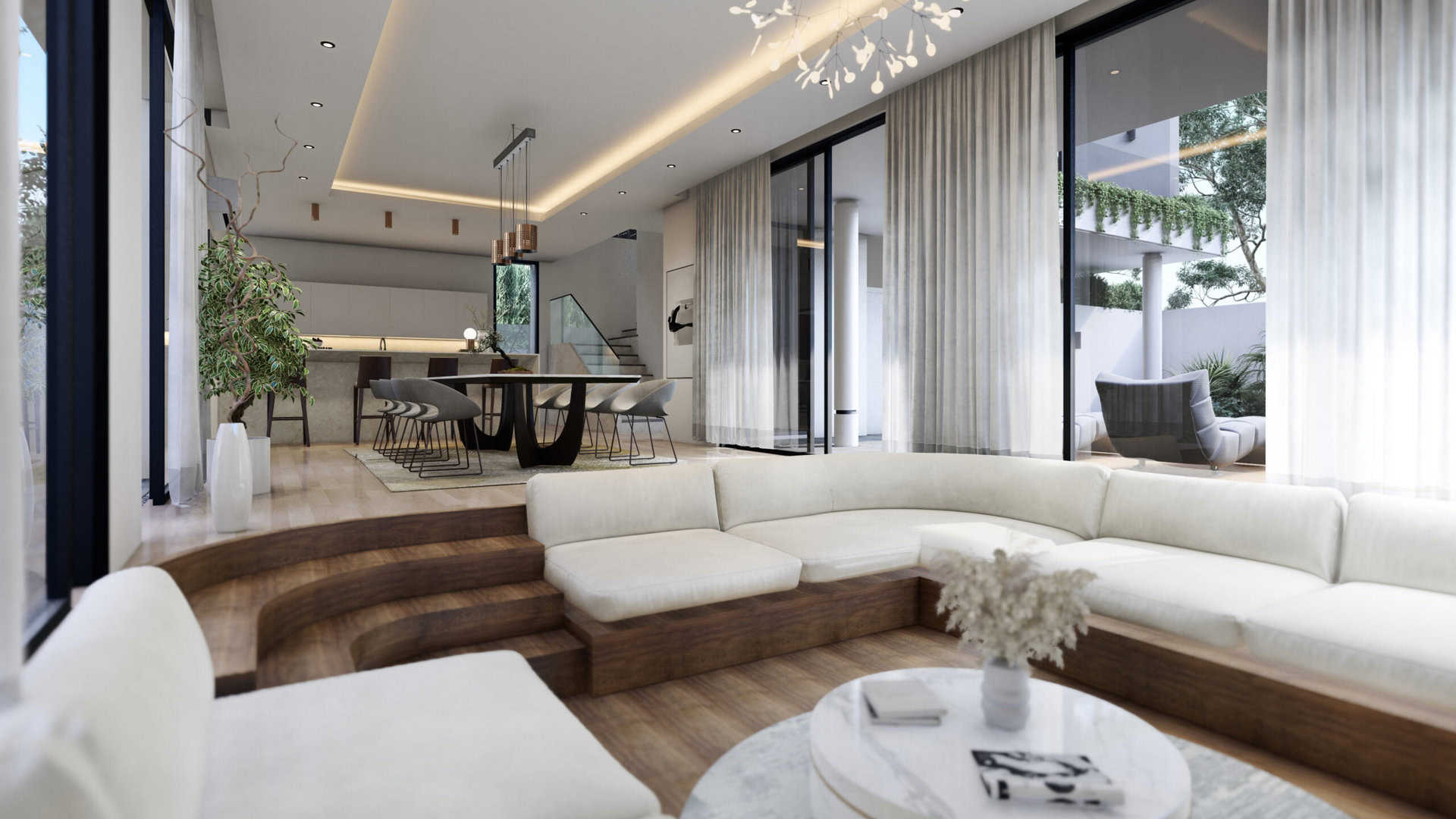 Boasting a modern design with a pristine white aesthetic, the villa occupies between 364.11 and 370.29 sqm of land, offering a spacious 372.55 sqm interior. It comprises 4 bedrooms, 4 bathrooms, a cozy living room, a well-equipped kitchen, and an inviting dining area.