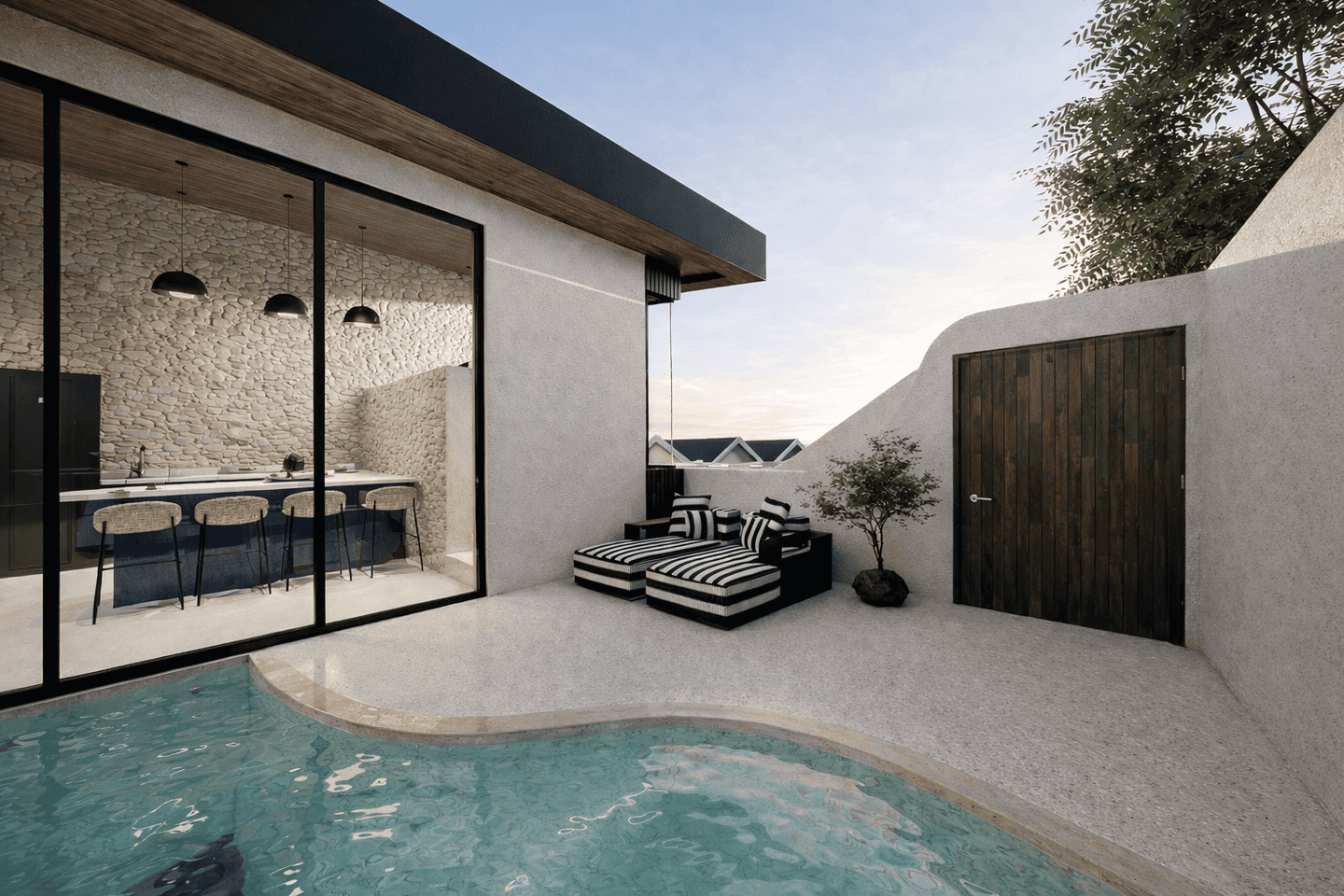 One of the villa’s standout features is its private swimming pool, creating a serene oasis to unwind and enjoy Bali’s tropical ambiance. Additionally, the villa boasts a rooftop area, perfect for enjoying sunset views, outdoor dining, or simply relaxing under the stars.