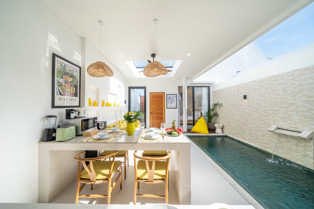 This villa features 2 elegantly designed bedrooms with ensuite bathrooms and an open living room that seamlessly connects to the modern, fully equipped kitchen—blending comfort, functionality, and tropical style effortlessly.