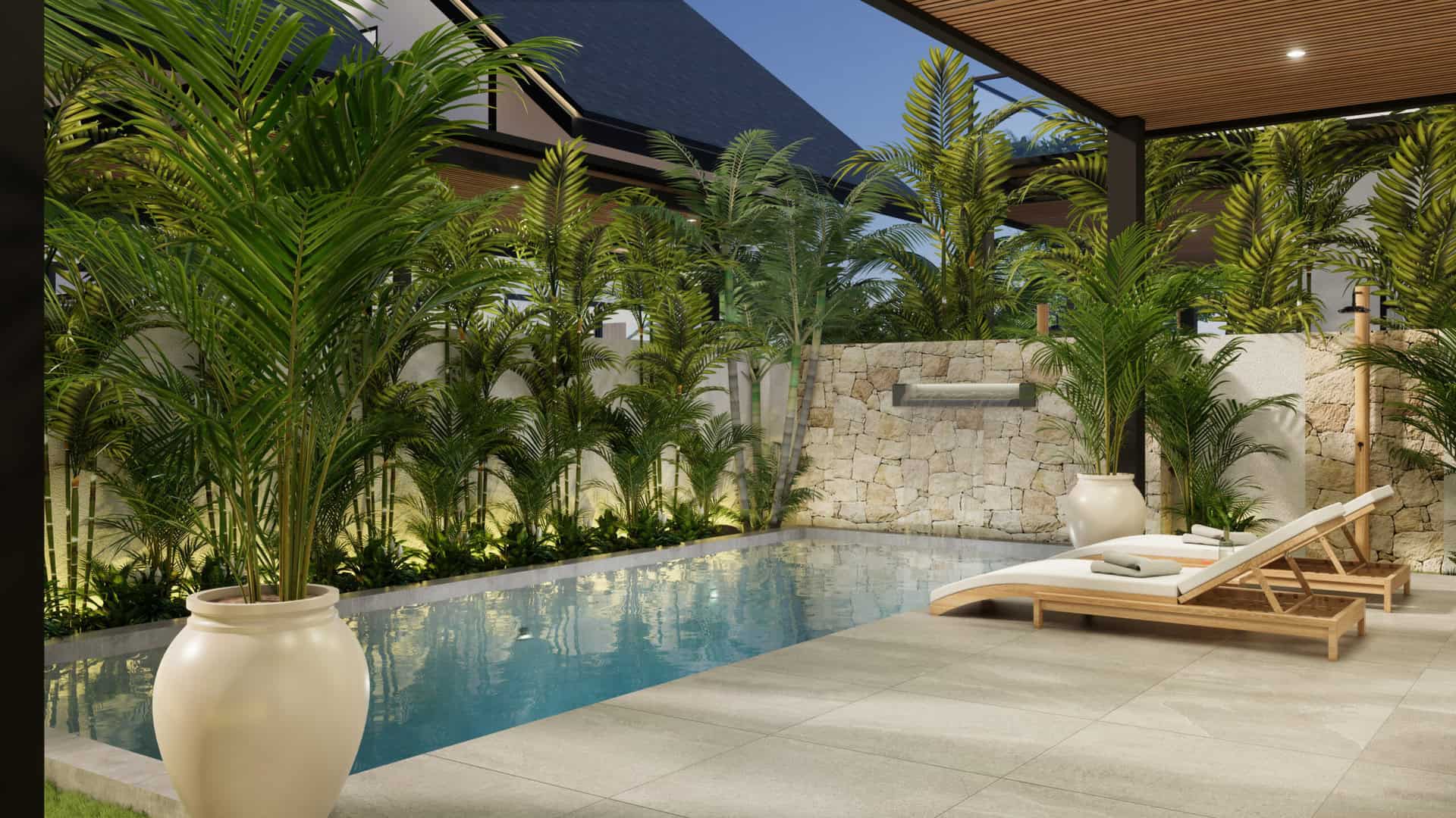 This villa boasts a captivating fusion of luxury tropical design and modern comforts. Featuring three bedrooms, each accompanied by its own ensuite bathroom and balcony, it offers a perfect blend of privacy and indulgence. Fully furnished, the villa showcases a kitchen equipped with modern appliances. Additionally, practicality meets convenience with a dedicated storage room, complete with a washing machine and drying area, ensuring effortless living.