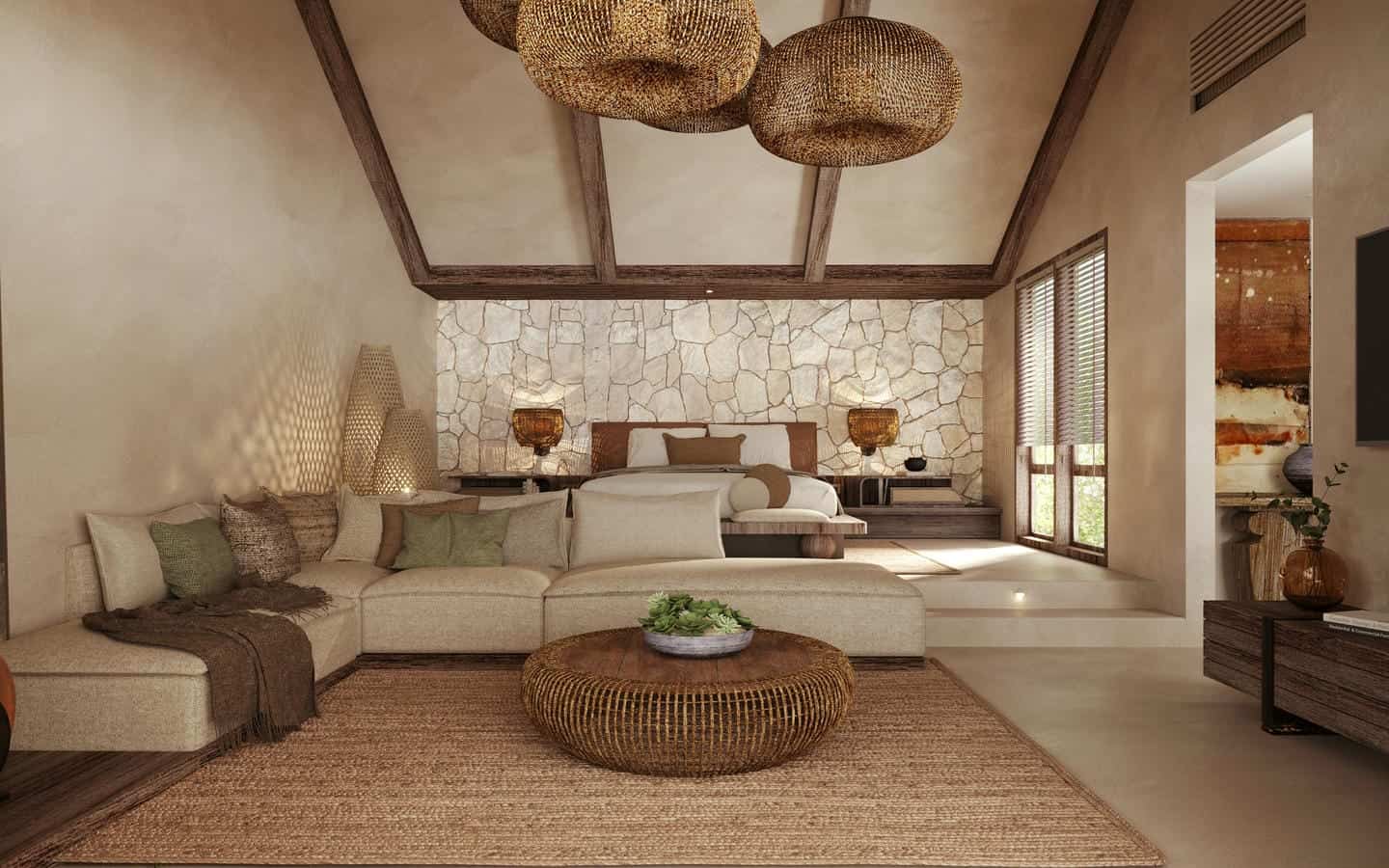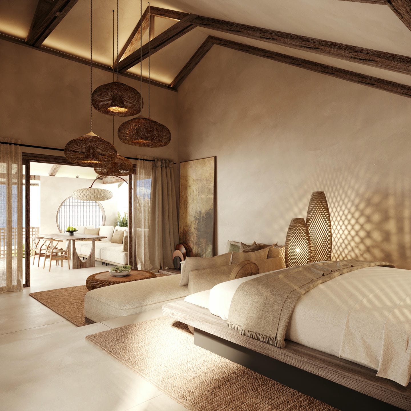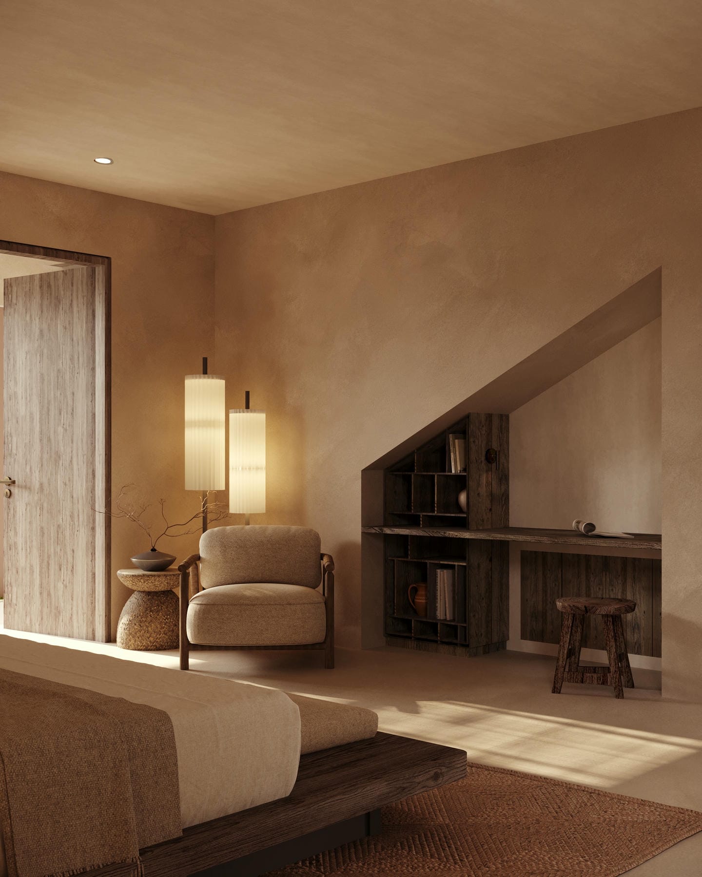 This three-bedroom Signature villas is the flagship of comfort in the Wabi-Sabi villa collection with the entire upper floor designed as one huge master suite with a second living room, terrace, big walk in closet and spacious bathroom. This villa is suitable for those who want to maximise quality of living, prioritizing extra space, comfort and privacy. Its caters to all that want the best and is perfect for families or couples. Nestled in the serene area of Seseh / Munggu, this modern Scandinavian and Wabi-Sabi inspired villa balances tranquility with convenience—close to popular cafes, restaurants, and just a short drive to the beach.