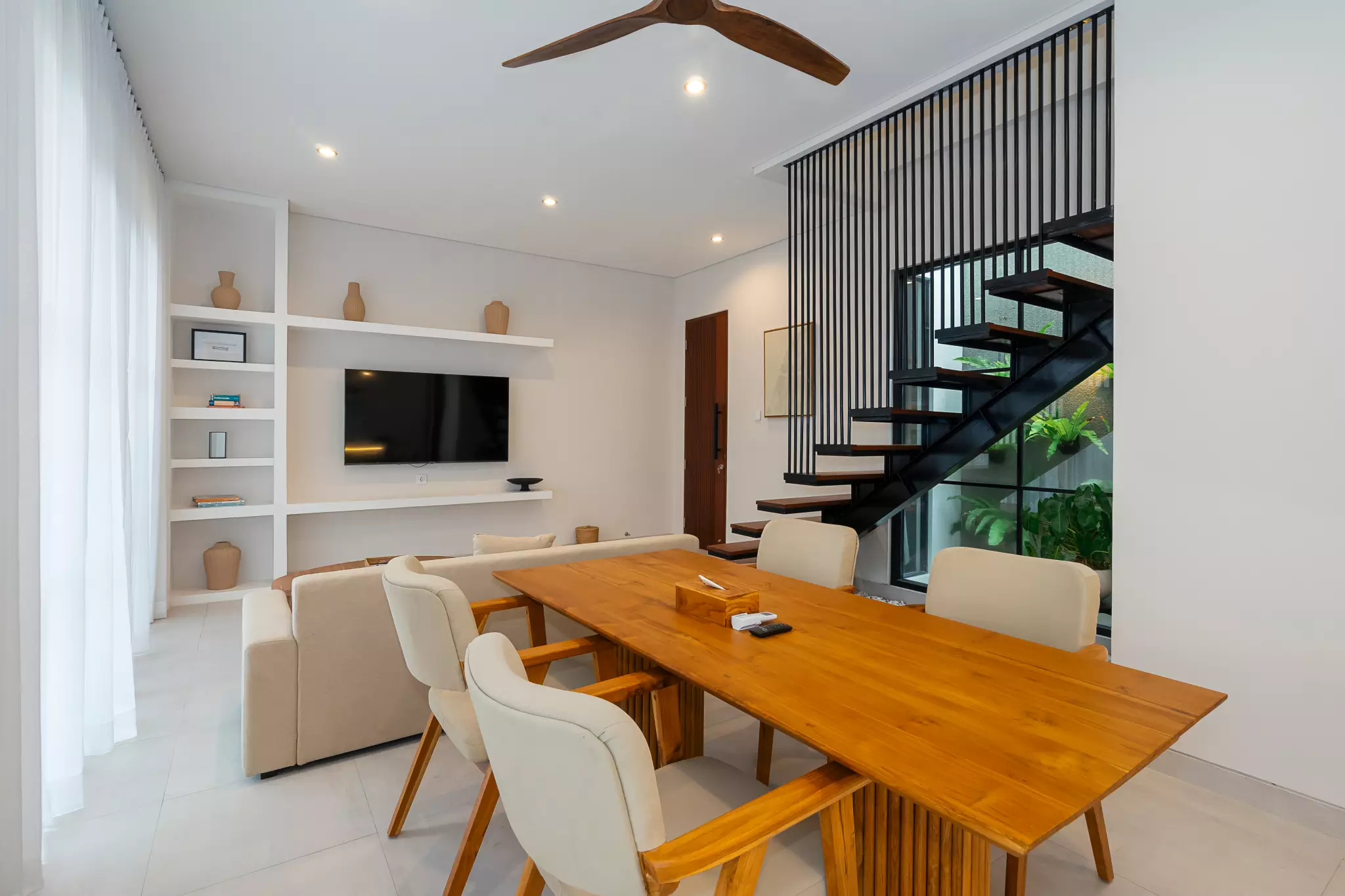 Spanning a 171 sqm build on a 158 sqm land, this two-bedroom villa is a modern oasis thoughtfully designed for comfort. With private access and parking, it ensures both exclusivity and convenience. The fully furnished interiors harmonize contemporary aesthetics with the allure of Balinese living. Two ensuite bathrooms add a touch of luxury, while seamless indoor-outdoor spaces invite residents to savor the island’s tropical ambiance.