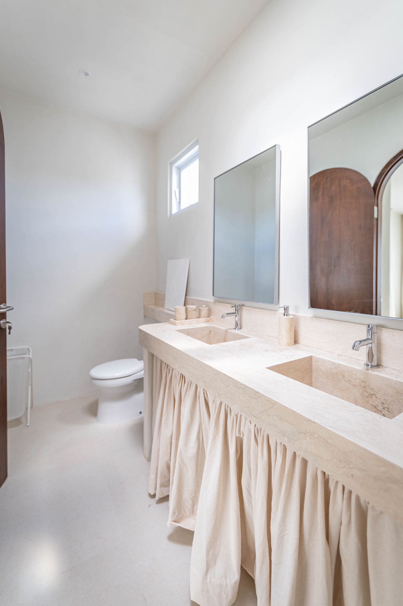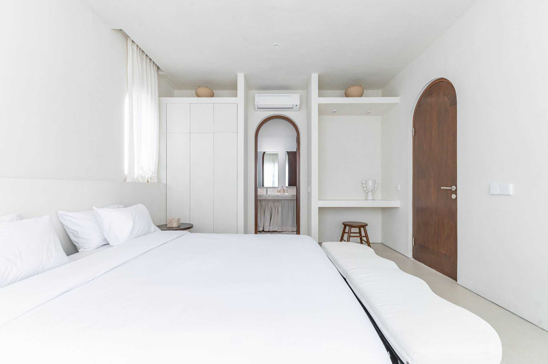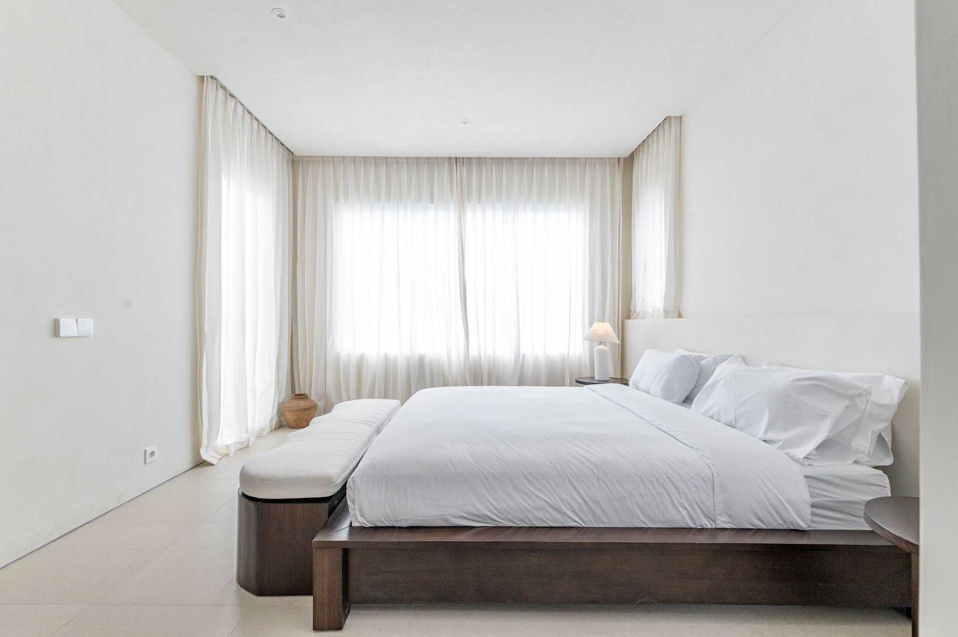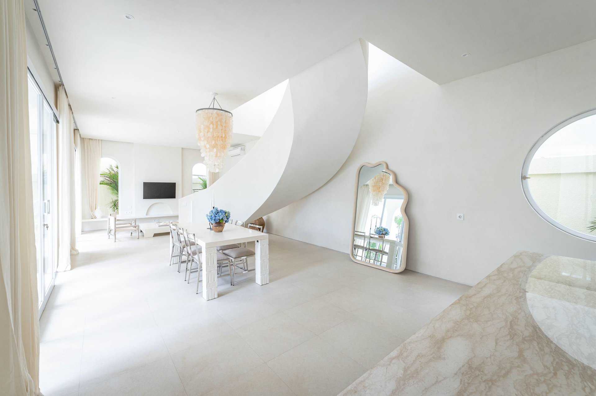 The villa features two spacious bedrooms, each with its own ensuite bathroom, ensuring comfort and privacy for all residents. Fully furnished with elegance, the villa includes a fully equipped kitchen, a cozy living area, and a stylish dining space. The interior is bathed in natural light, thanks to the abundance of windows, and features a clean white aesthetic that enhances the sense of space and serenity.