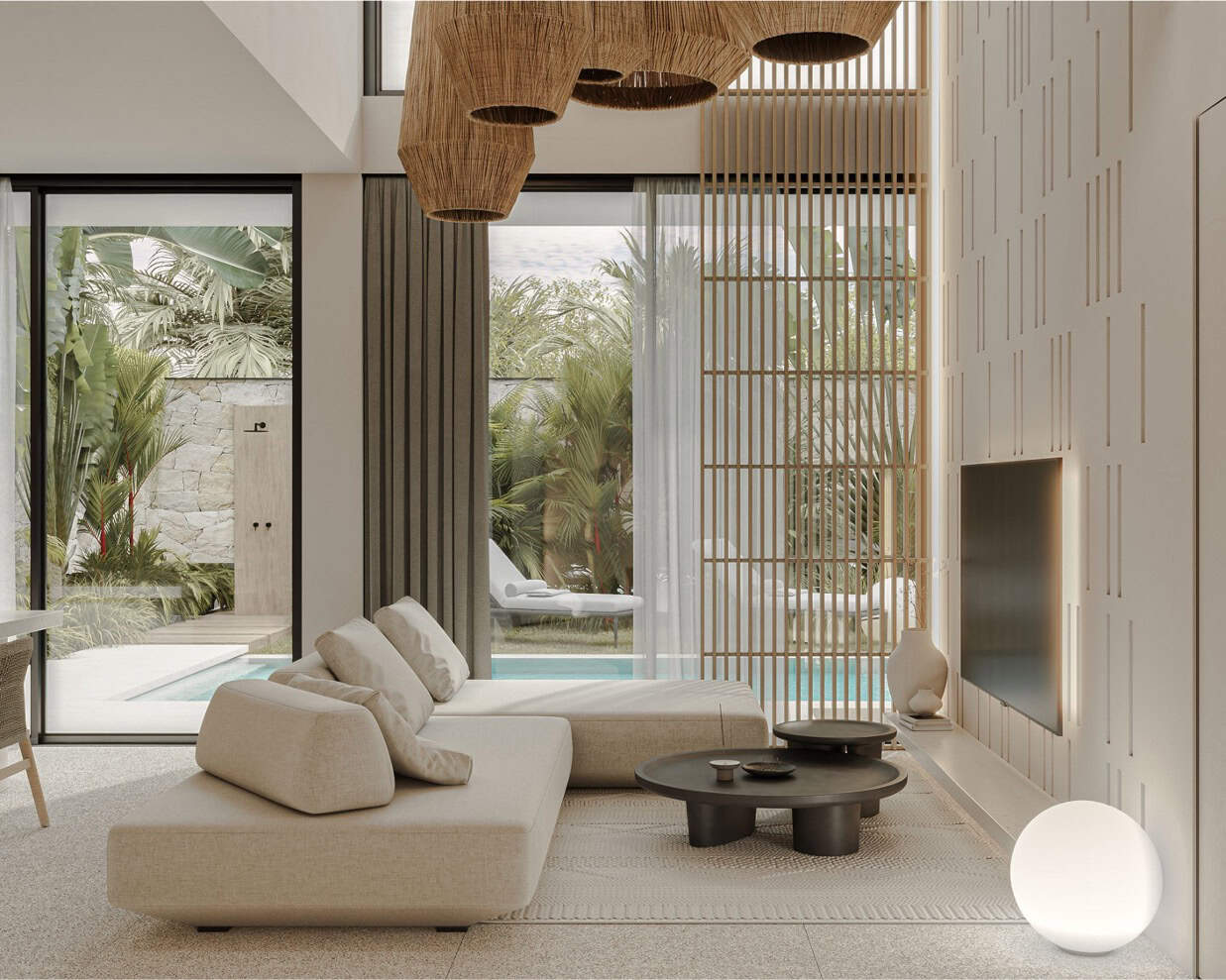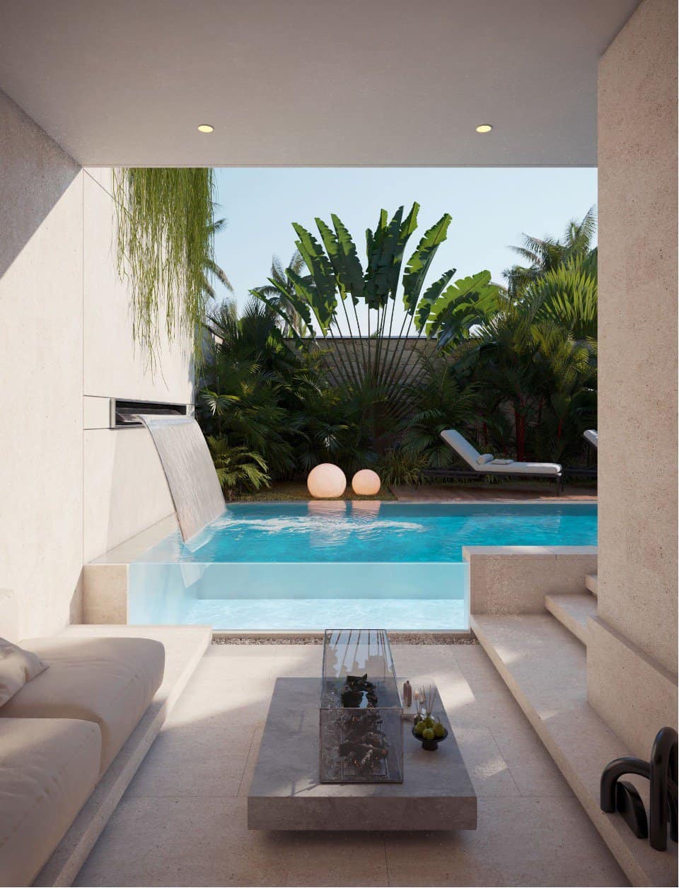 Step outside and be greeted by a pool, an outside living area, and lounge chairs that provide an idyllic setting for lounging, sunbathing, or hosting gatherings. Additionally, this villa comes with an option for a rooftop, which is not only perfect for families seeking a peaceful retreat but also presents an excellent investment opportunity.