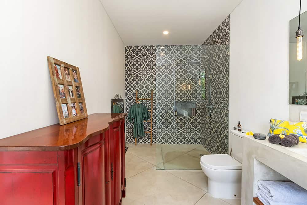 Inside, discover unique features such as a hidden bar cleverly concealed behind a bookshelf, adding an element of surprise and sophistication to the home. The master bedroom offers a luxurious touch with a bathtub that overlooks the jungle view, providing a tranquil retreat within your own home. The villa’s layout combines functionality with unique design elements, making it a standout property in the area.