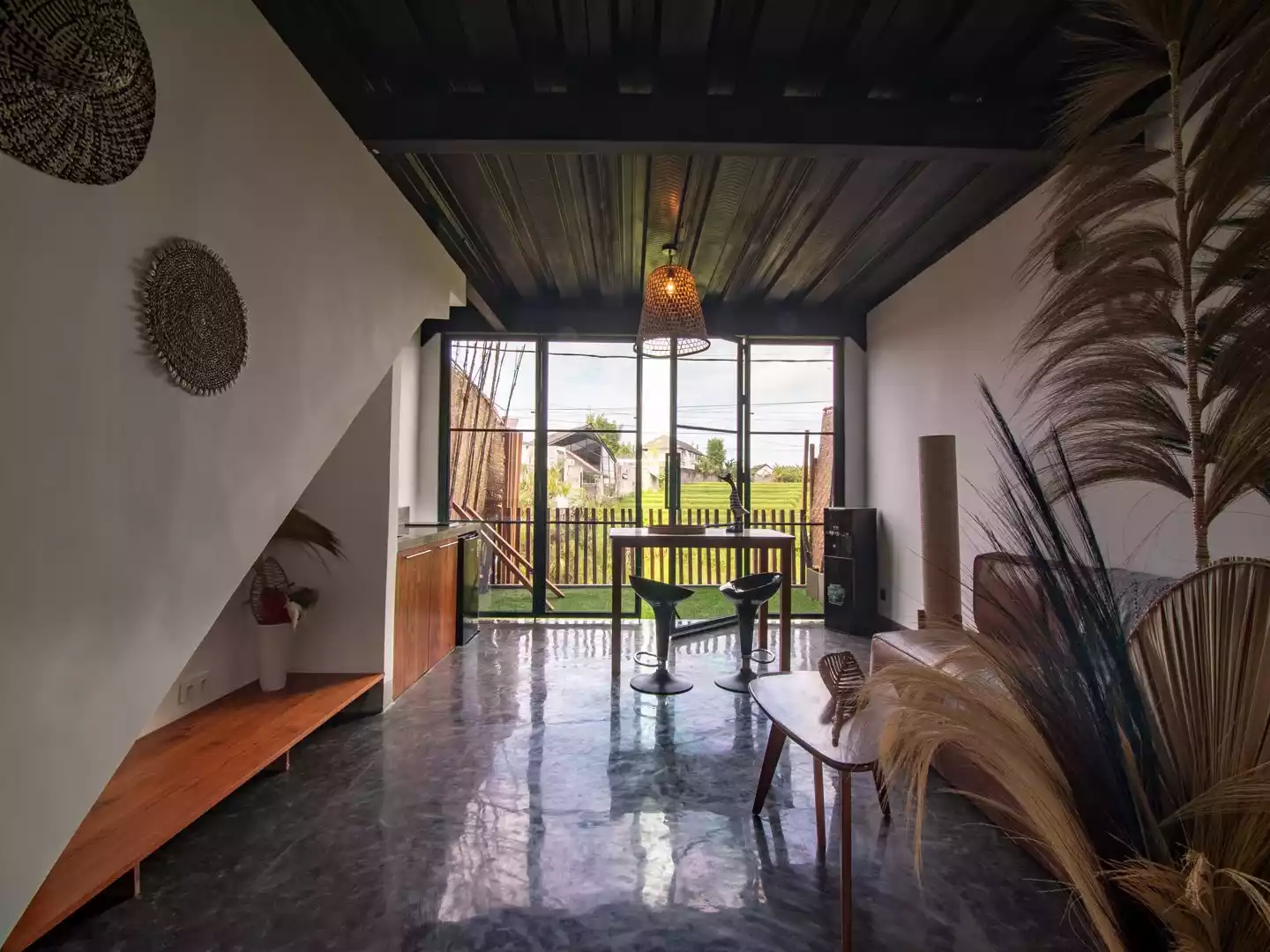 Beautiful and affordable complex of lofts in the residential part of Canggu. Facing the ricefields in a peaceful area, 10 mins away from Batu Bolong and 7 mins away from Berawa, you’ll discover this complex of stylish industrial lofts. Only 2 units remaining ! This brand new lofts are each on two levels with a parking at the ground floor, a cosy living room, a full equipped kitchen and one spacious bedroom.
