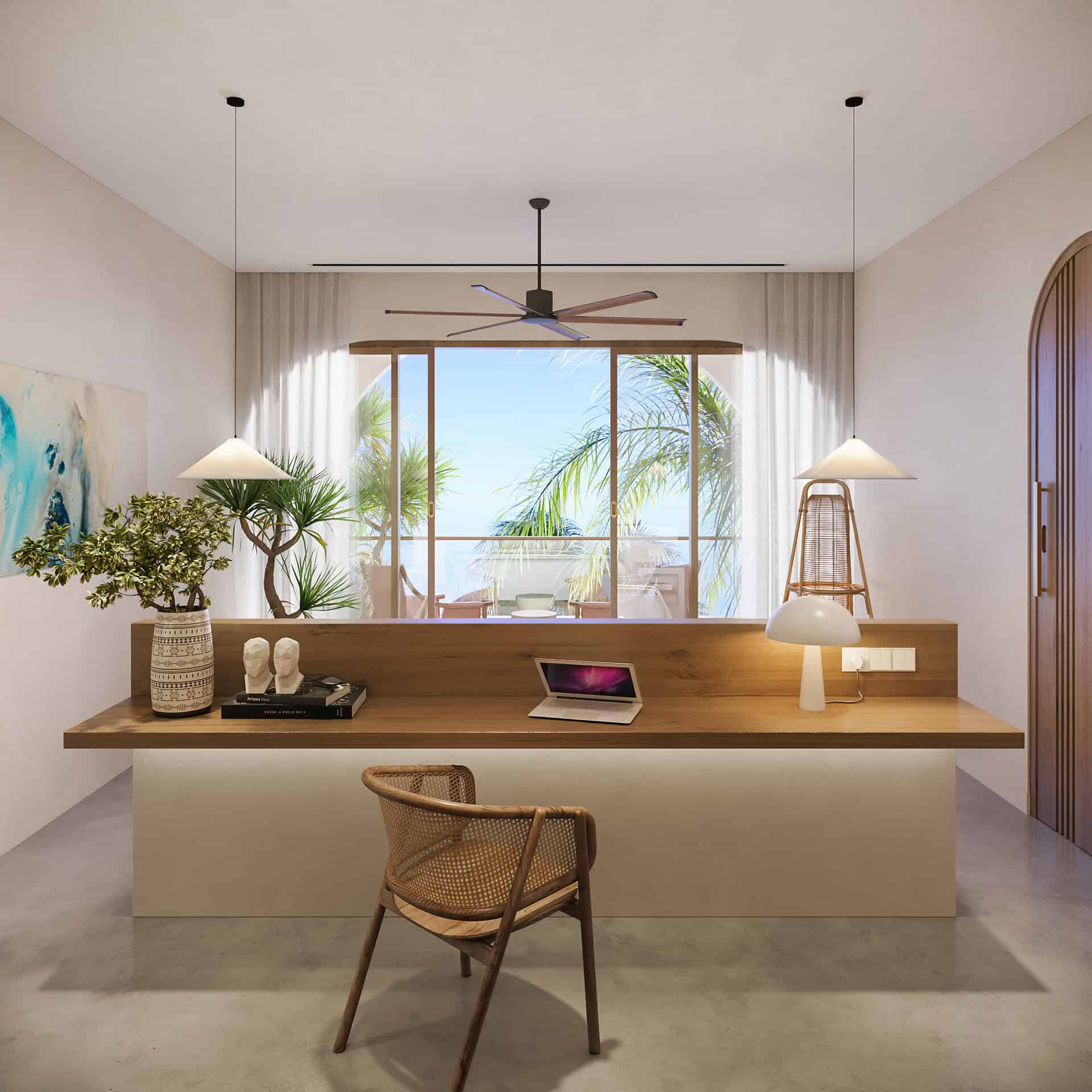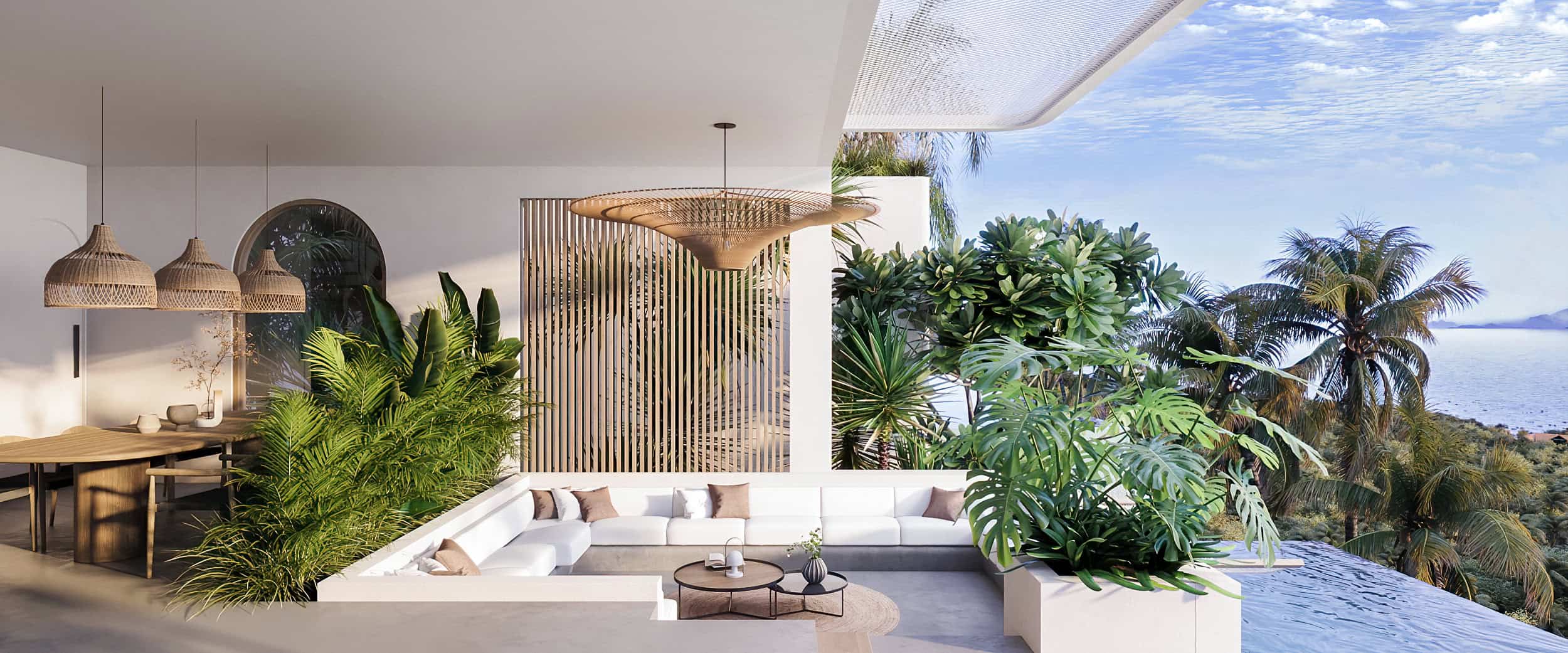 These modern tropical 2-bedroom villas feature breathtaking ocean views, land sizes ranging from 339 sqm to 565 sqm, and built-up areas from 167 sqm to 222 sqm. Each villa includes 2 spacious bedrooms, 2 bathrooms, a comfortable living room, a fully-equipped kitchen, and a dining area with panoramic sea views.