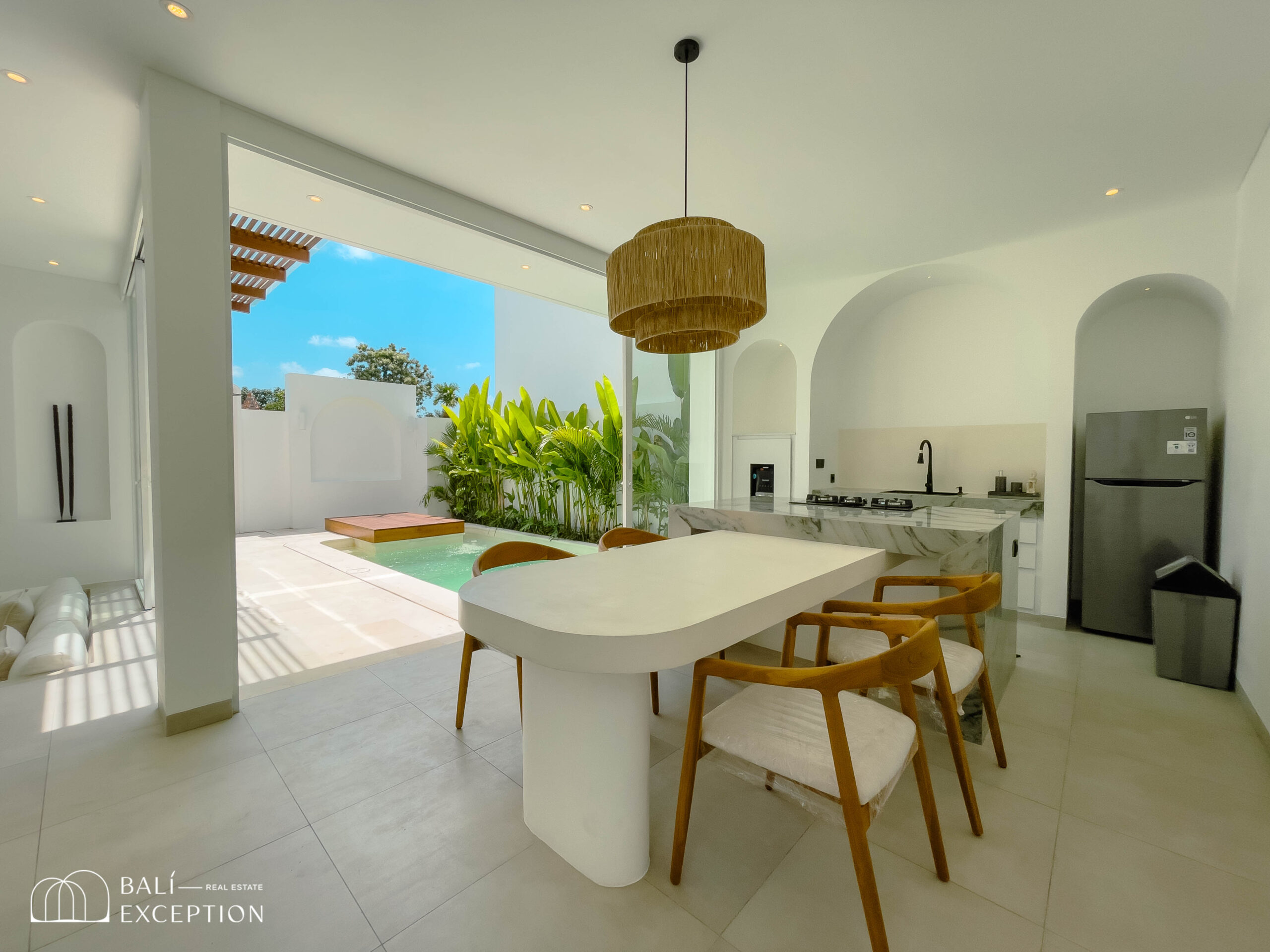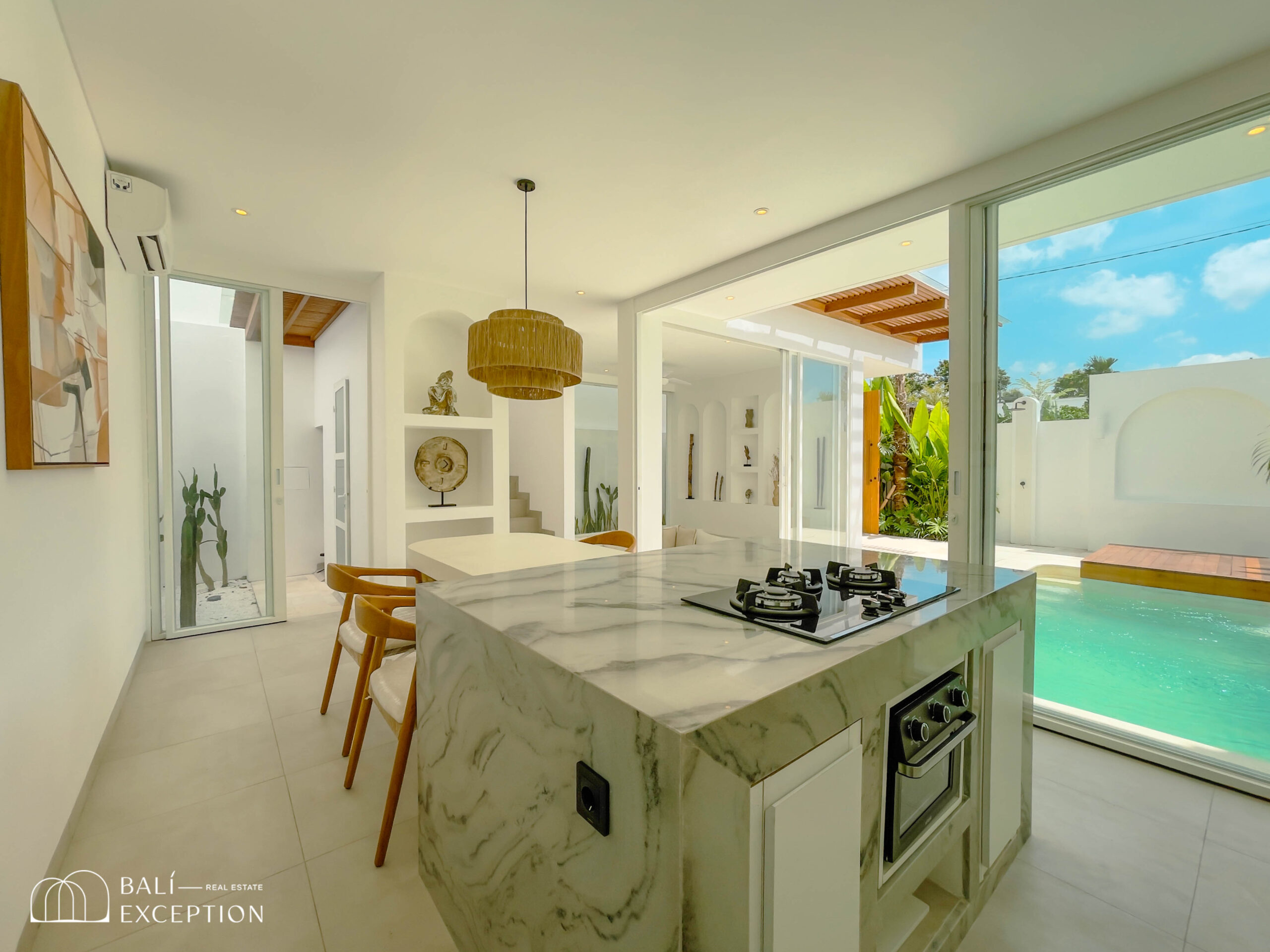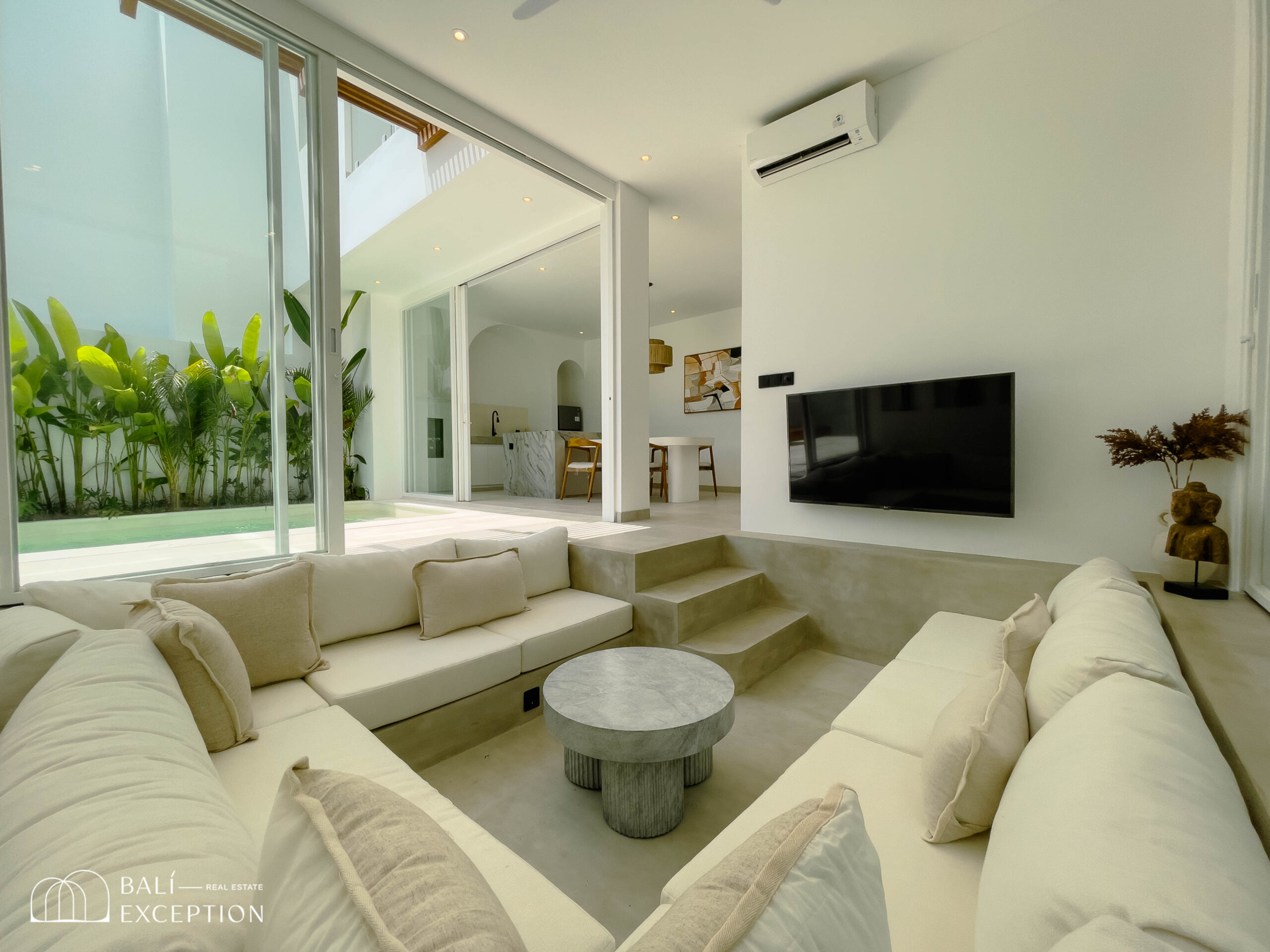 The villa boasts a modern design that combines sleek lines with natural elements, creating an elegant and welcoming atmosphere. Each unit features spacious living areas, high ceilings, and large windows that let in plenty of natural light.