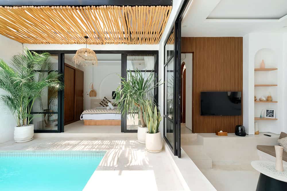 This cozy mediterranean villa in Pererenan offers the perfect blend of comfort and style. Set on 100 sqm of land with 75 sqm of living space, the villa features a spacious bedroom with its own ensuite bathroom. The tropical design is accentuated by a sunken living room that opens up to the swimming pool, creating a seamless indoor-outdoor living experience.