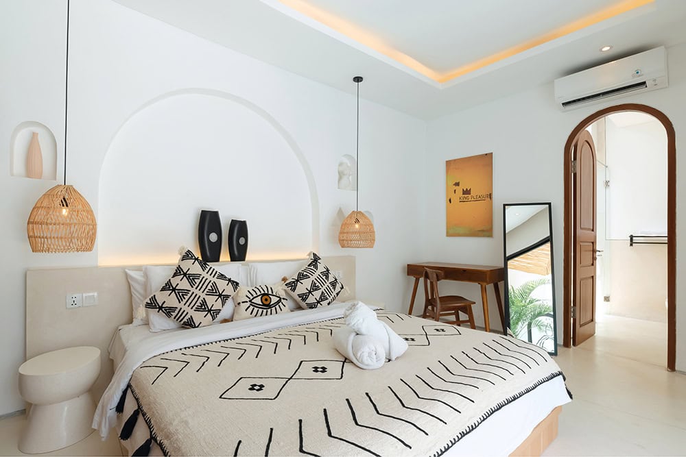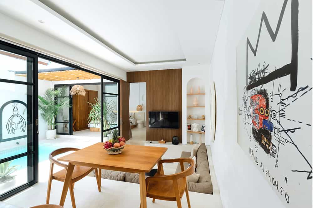 The villa’s unique character is highlighted by wooden details and original paintings that bring a touch of individuality to the space. Located just 8 minutes by scooter from the beach, it’s a serene retreat with easy access to the sea. Available with a 25-year leasehold for $180,000, this is an ideal choice for those seeking a cozy yet stylish villa in Pererenan.