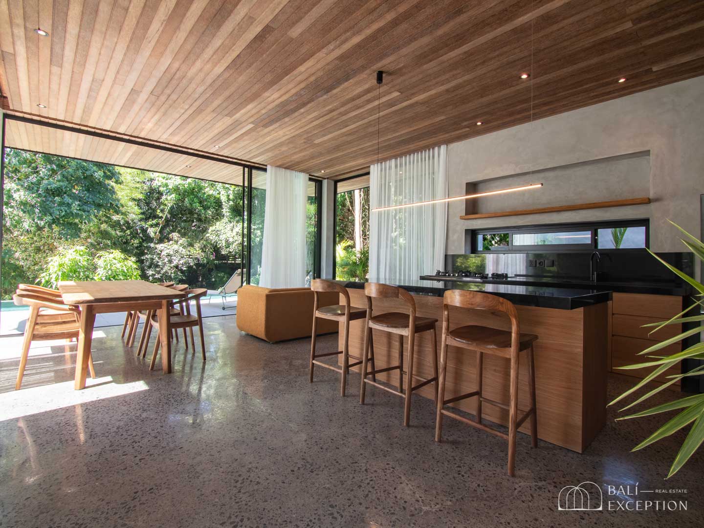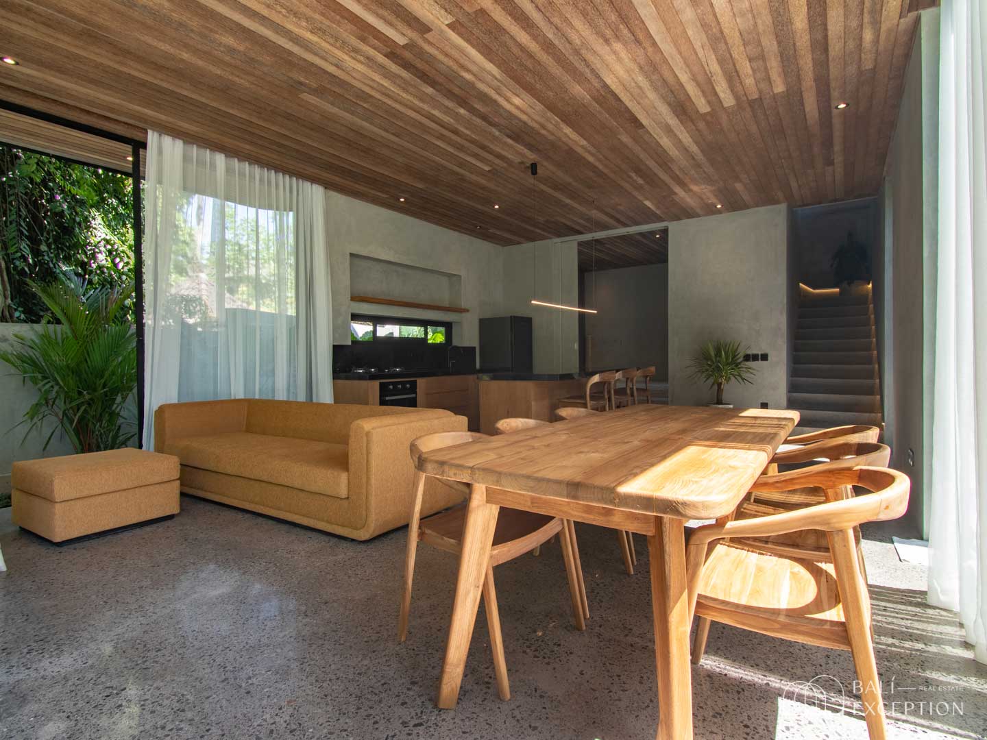 The whole building is very bright thanks to large windows and a very good exposure to the sun. You will be able to contemplate the sunset in the jungle.