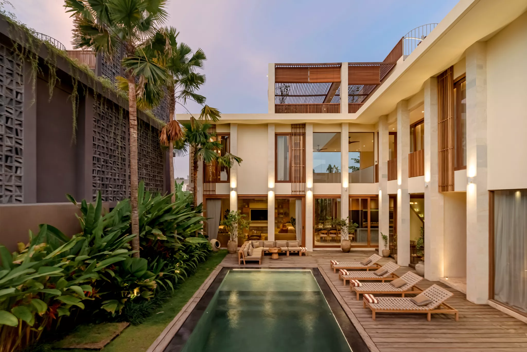 Gracefully occupying 520 sqm of land, this magnificent villa is a testament of architectural excellence and lavish living. As you approach the grand entrance door, the sparkling pool enveloped by lounge chairs and a snug sofa area welcomes you to an exquisite haven for unwinding beneath the sun or relishing the serene Balinese evenings.