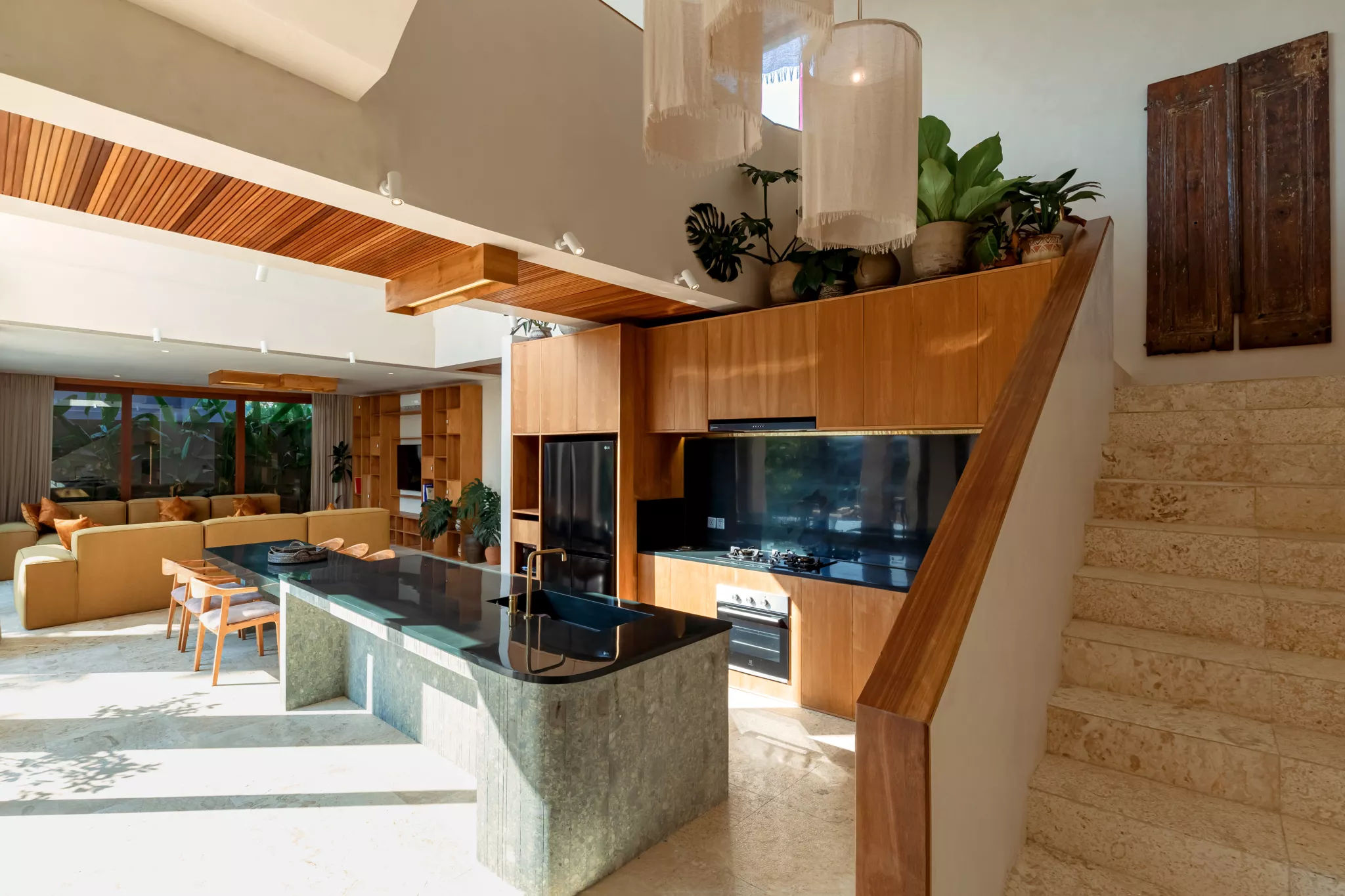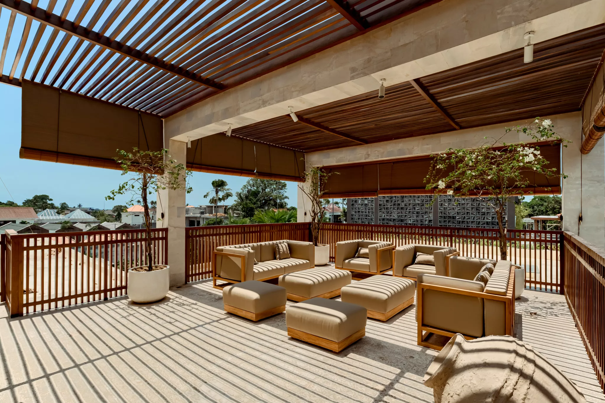 Ascend to the rooftop, where a sophisticated sofa arrangement awaits with its kitchen, offering panoramic views of the enchanting neighborhood. The plus : a second rooftop, more intimate awaits with a sea view during daytime and stargaze when the night sets.
