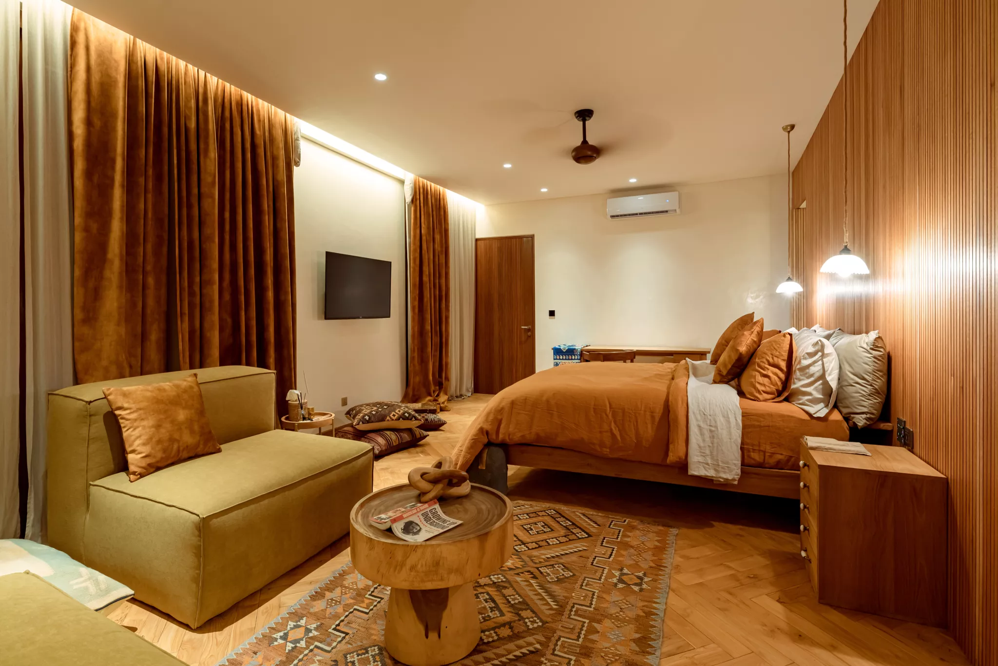 The villa being a smart house, controllers are placed in every room allowing you to manage lights, curtains, AC, and even set the ambiance to your preference. This system is one of a kind and quite unique in Bali, the signature of luxury.