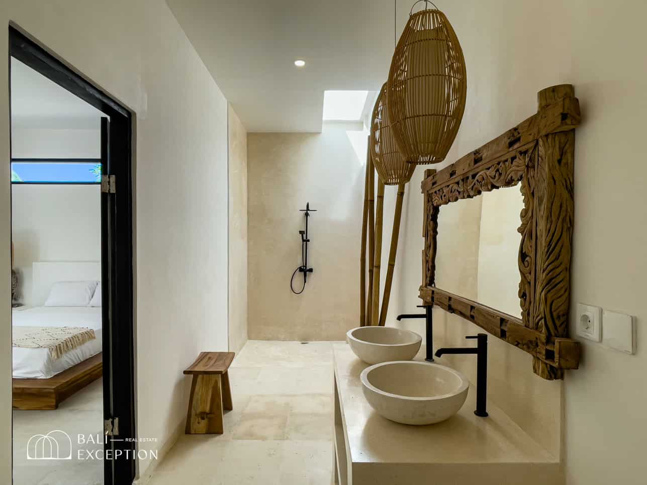 Located in the sought-after area of Pererenan, this modern tropical-style villa offers a functional and streamlined living space. Featuring 3 bedrooms and 3 bathrooms across 185 m² of built space on a 300 m² plot, it provides a pleasant and well-arranged living environment. The pool blends seamlessly into the garden, creating a relaxing outdoor space.