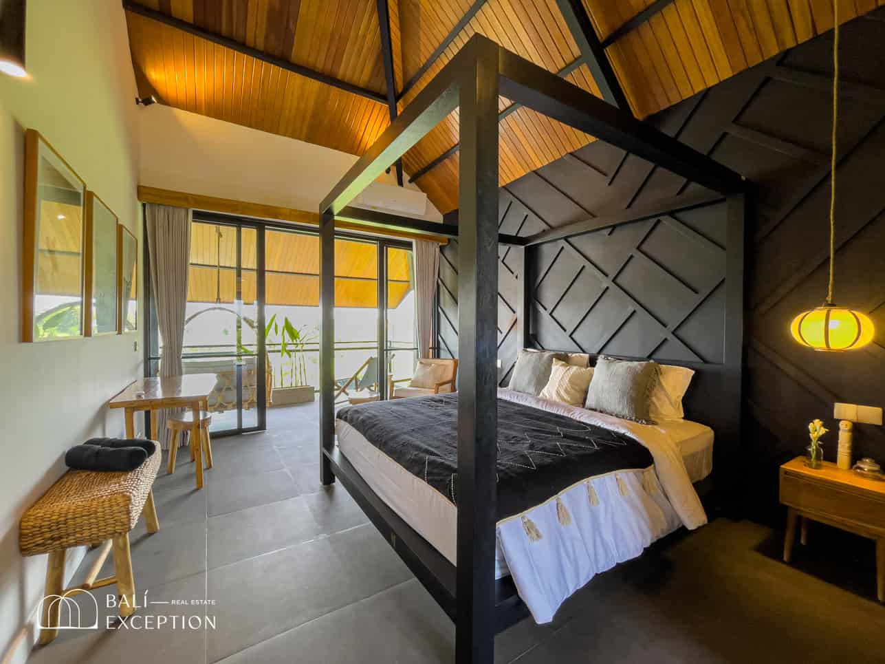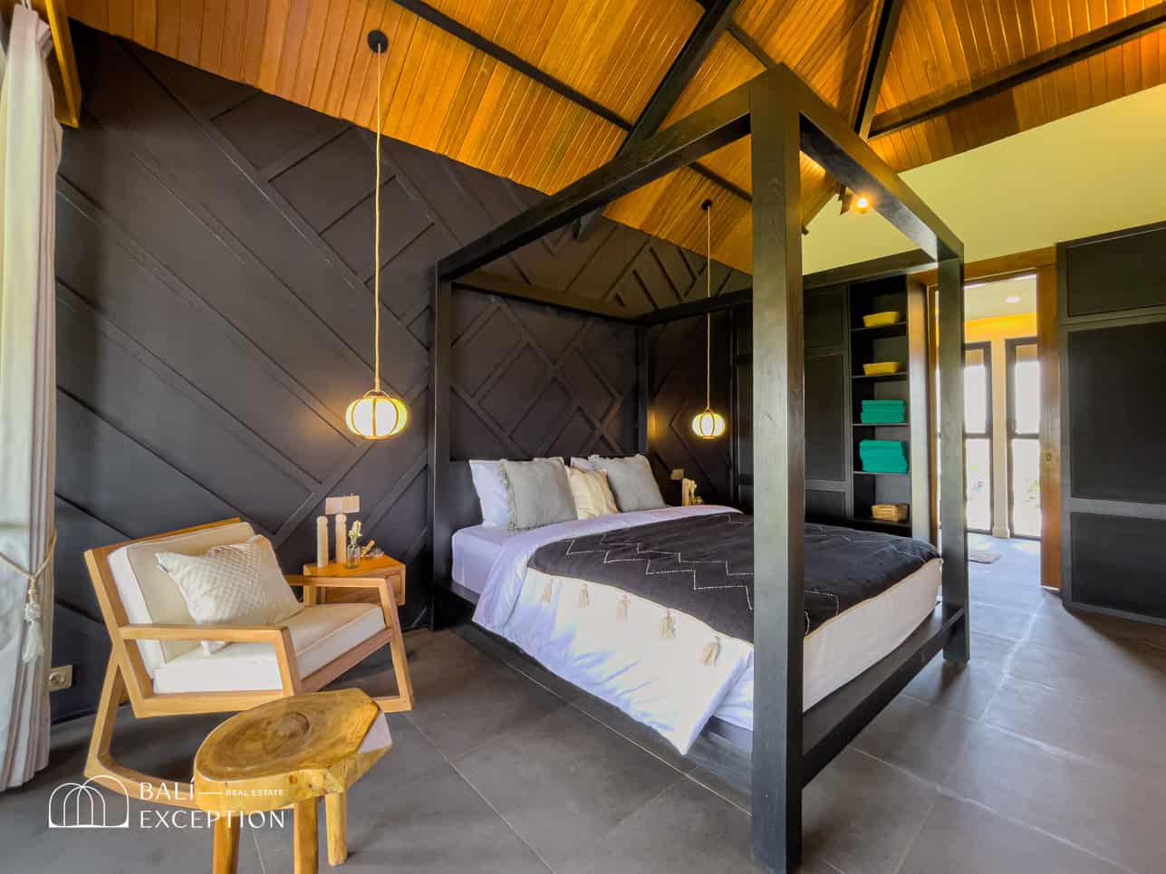 - Design: Unique blend of tropical and Japanese minimalist styles with exposed wooden ceilings