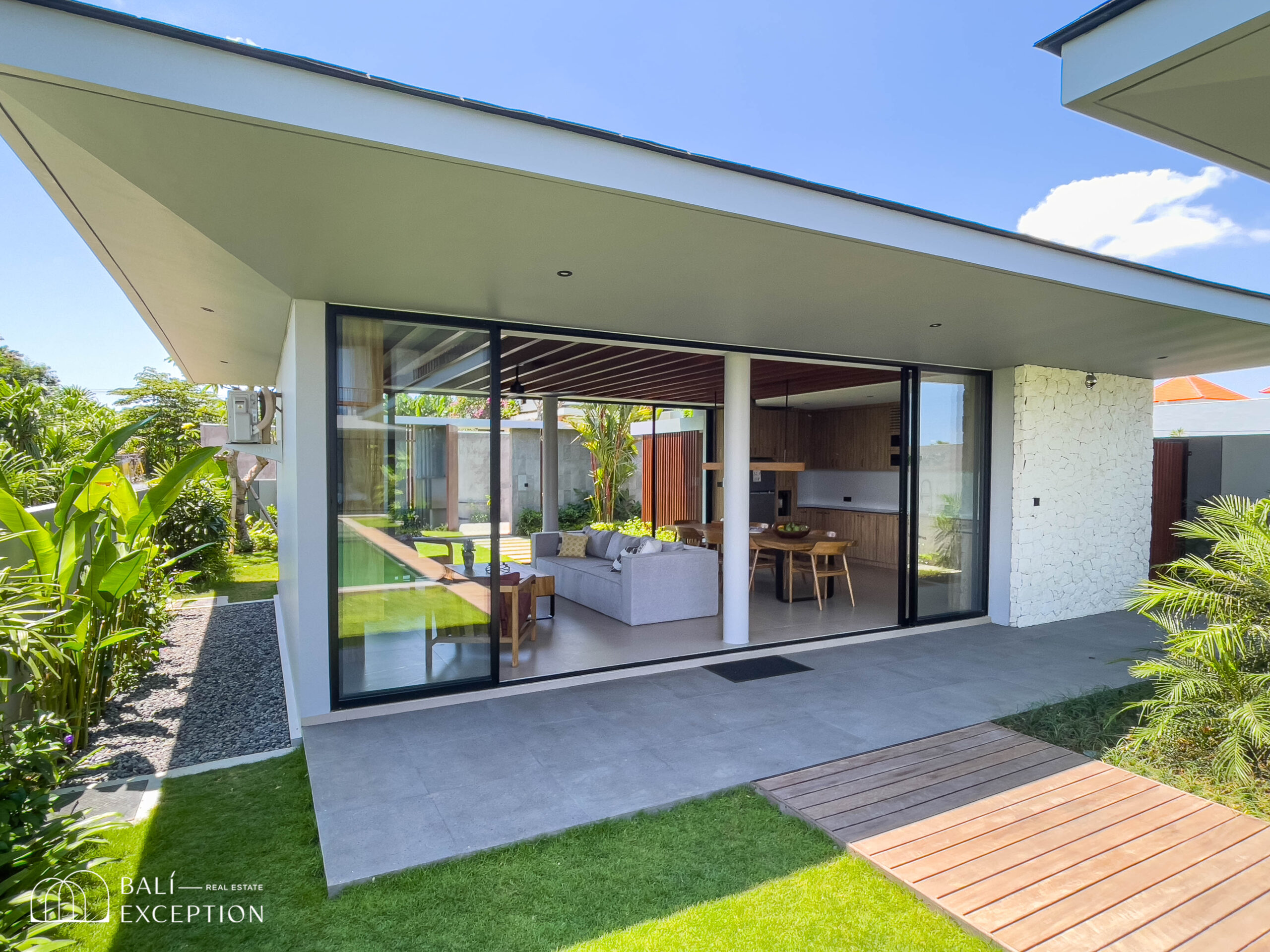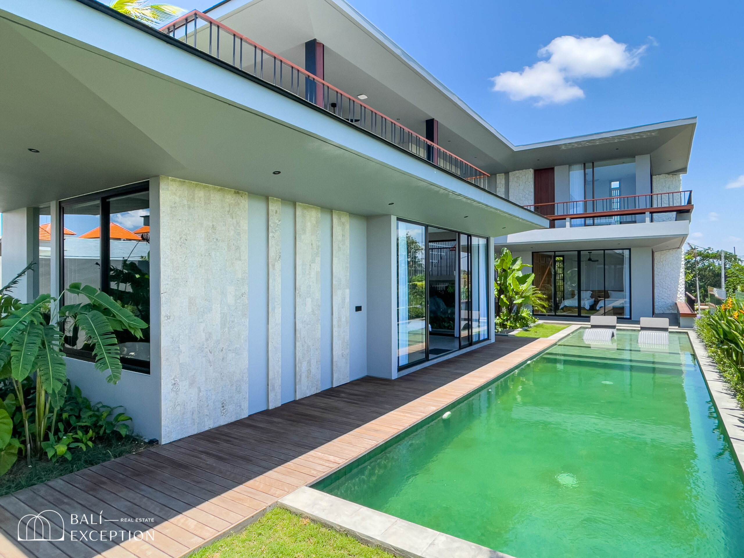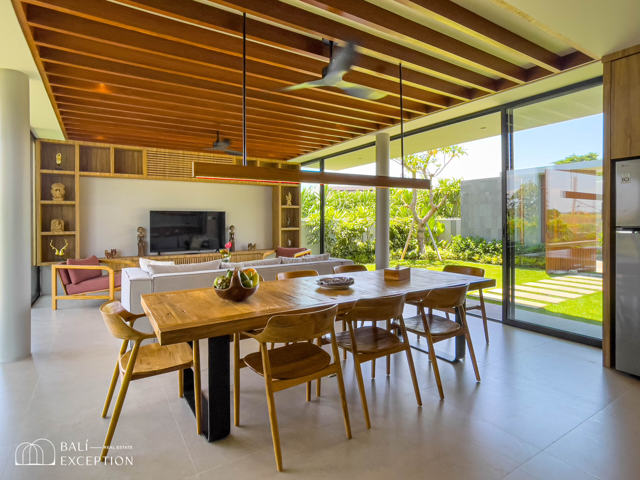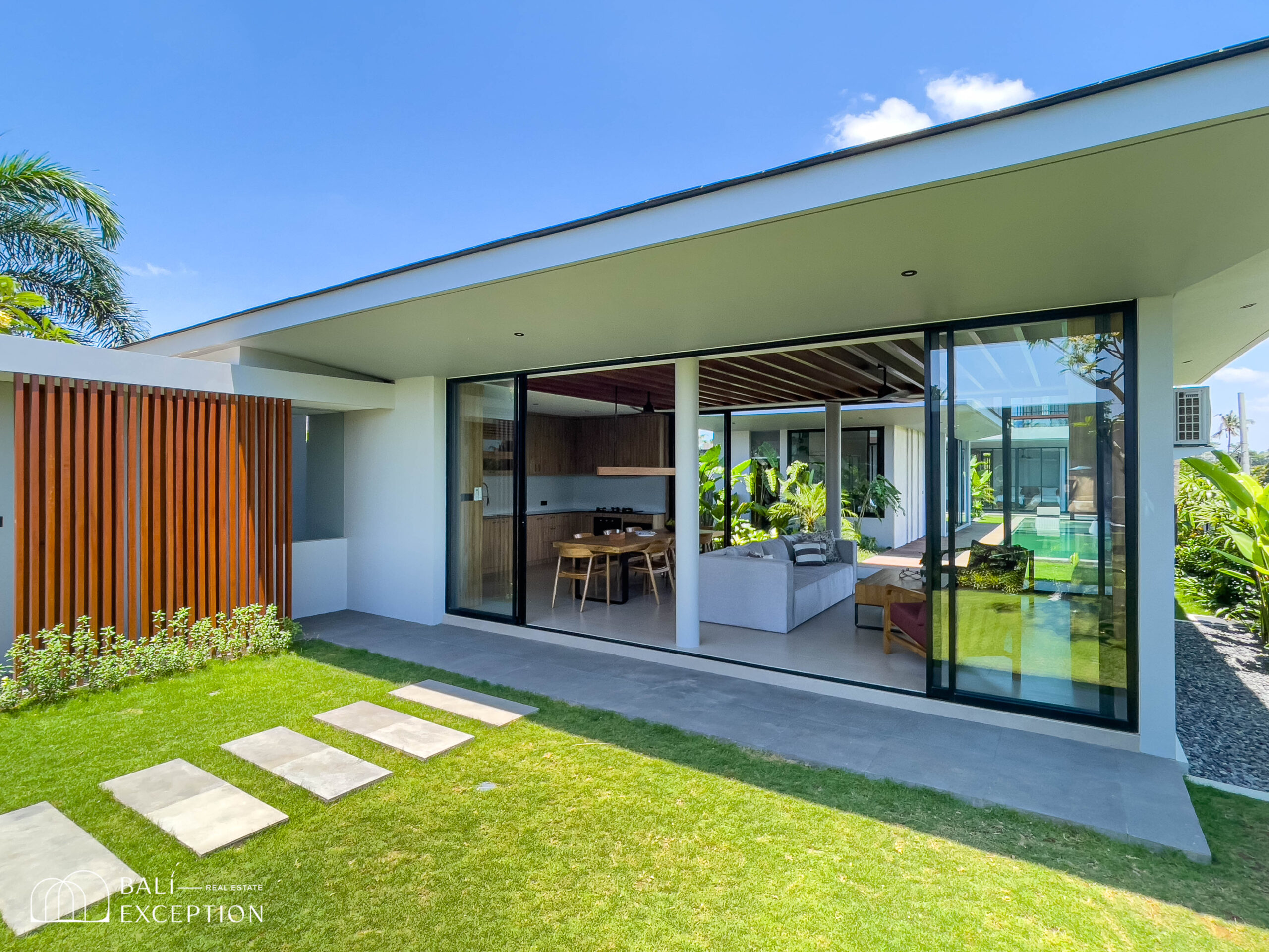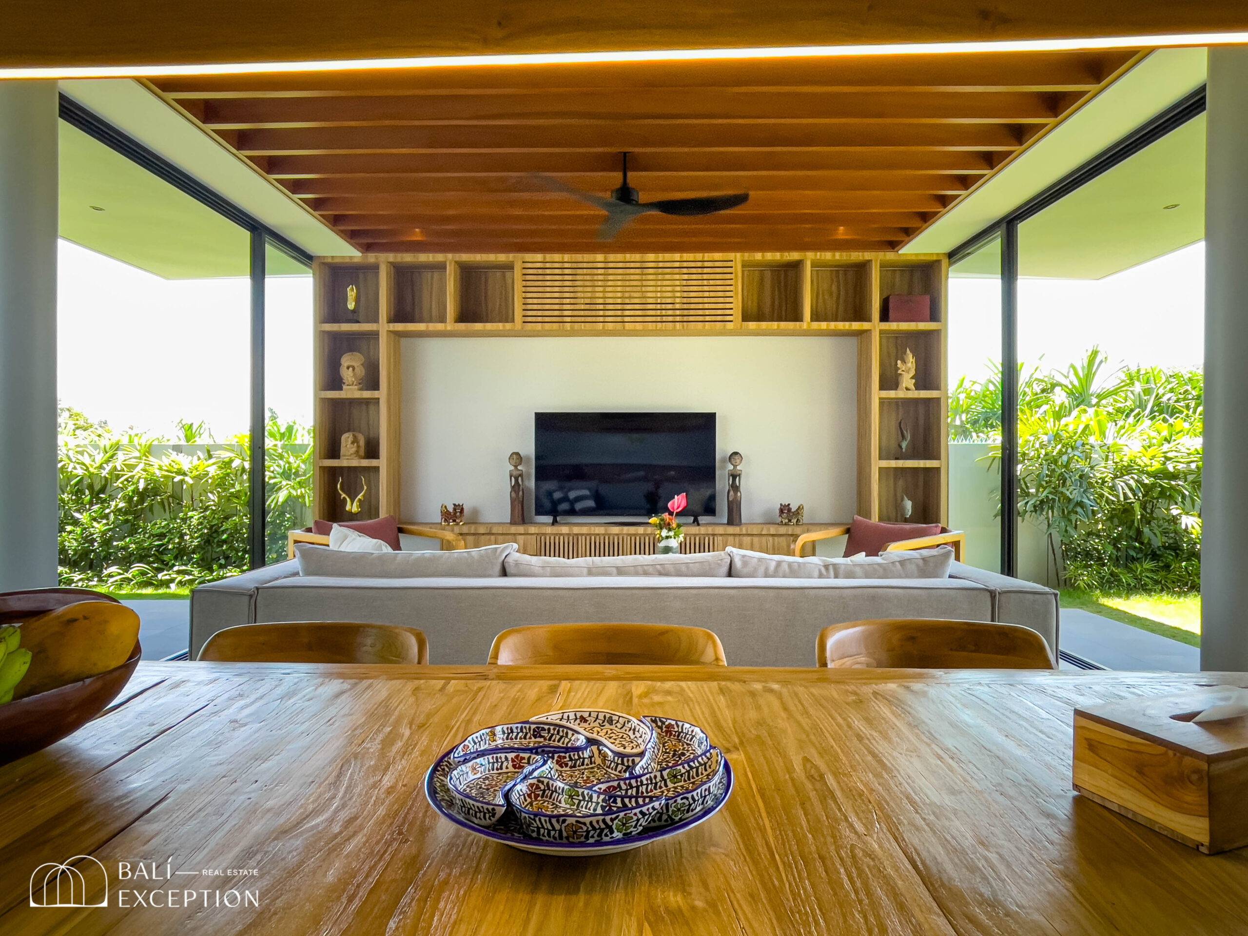 With a modern tropical design, this luxurious villa features 4 spacious bedrooms, 4.5 bathrooms, a 490 sqm land size, and a 428 sqm build size. The living room connects seamlessly to the gourmet kitchen and dining area, making it great for gatherings.