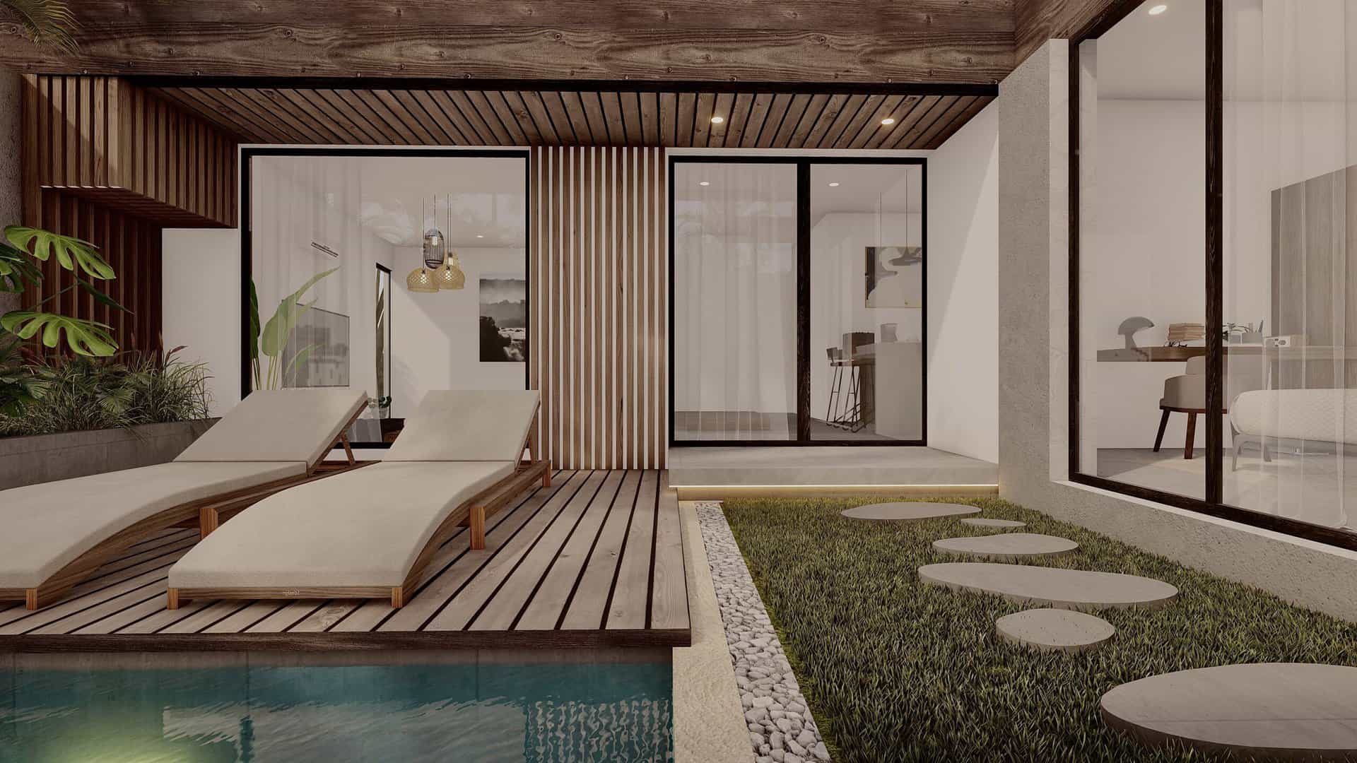 This modern, sleek-designed villa boasts 157 sqm of beautifully crafted living space on a 100 sqm land plot. Inside, you’ll find two spacious bedrooms, two stylish bathrooms, a cozy living room, a fully equipped kitchen, and an elegant dining area.