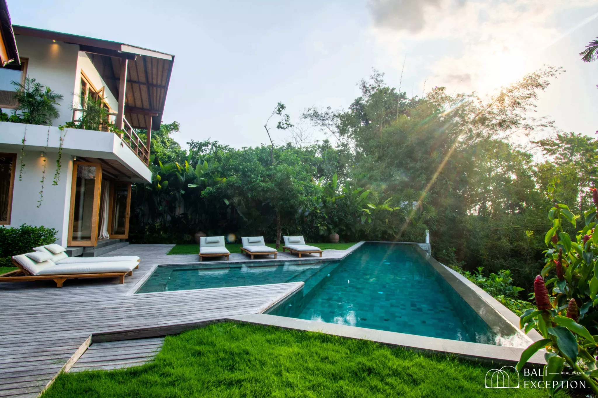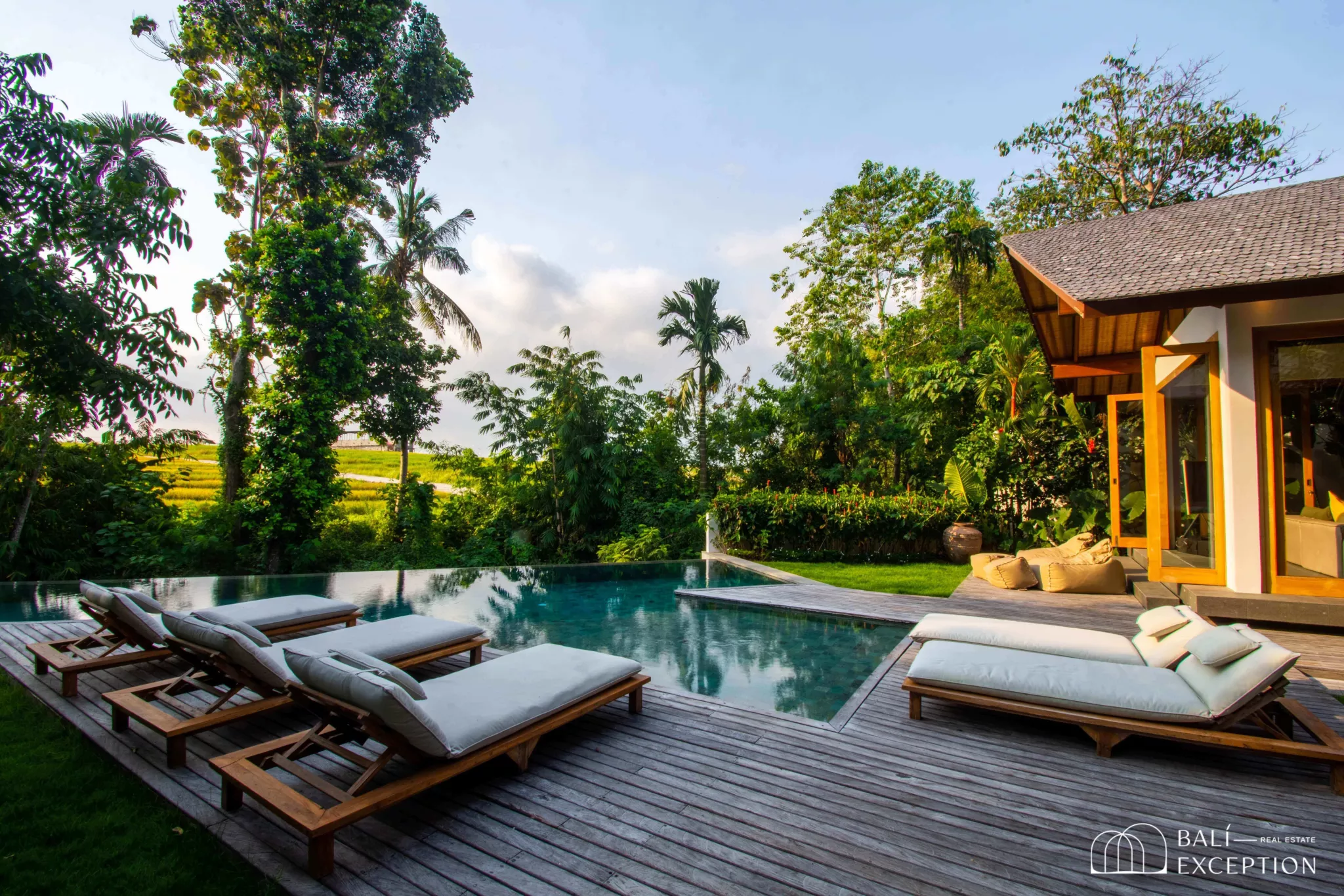 But what truly distinguishes this villa is its main attraction – a captivating swimming pool that offers mesmerizing views of the adjacent rice fields/ river. Additionally, the villa is surrounded by a garden, creating a tranquil oasis that enhances its allure. Don’t miss the opportunity to make this remarkable villa your own, where every day feels like a dream come true.